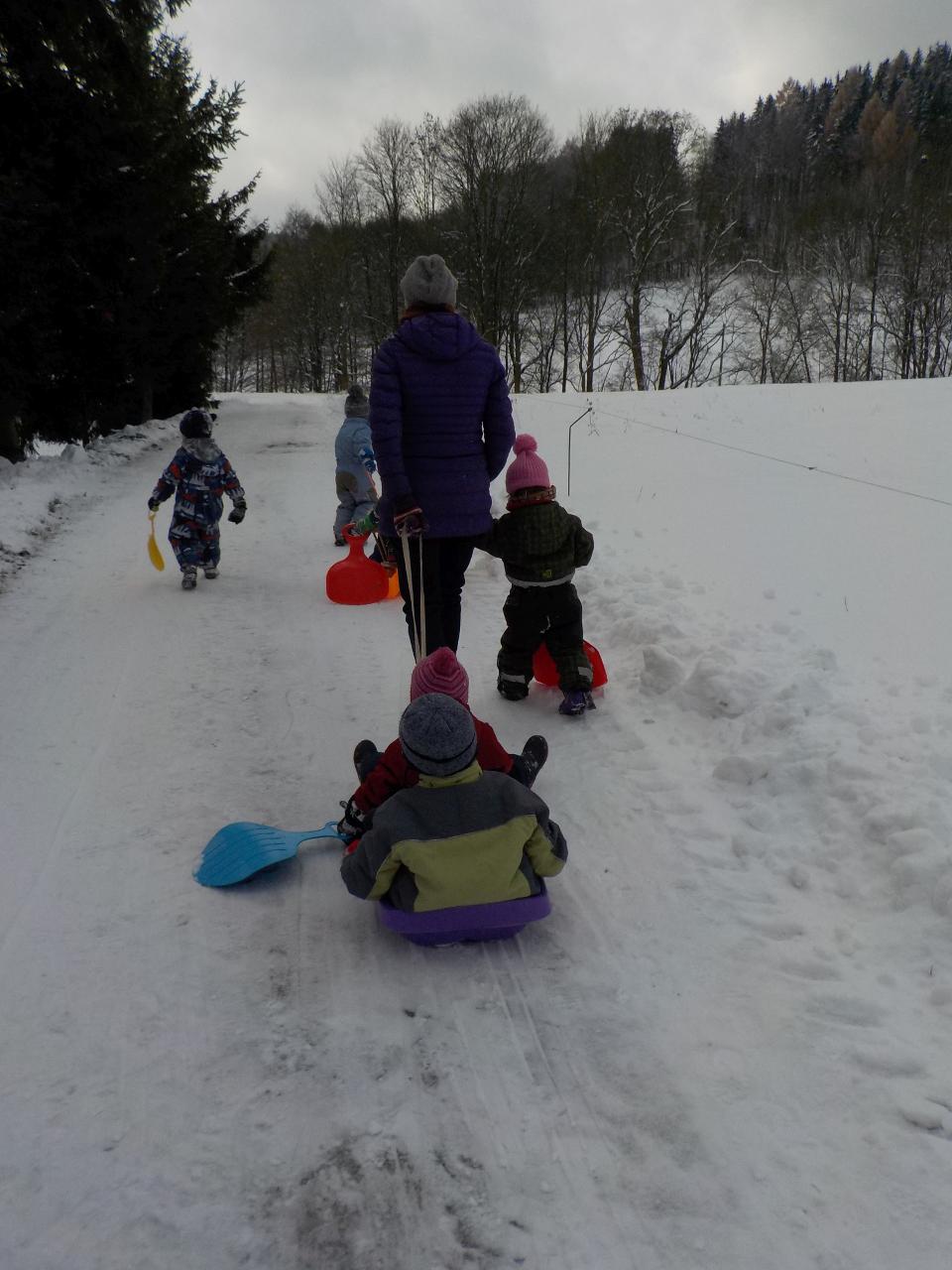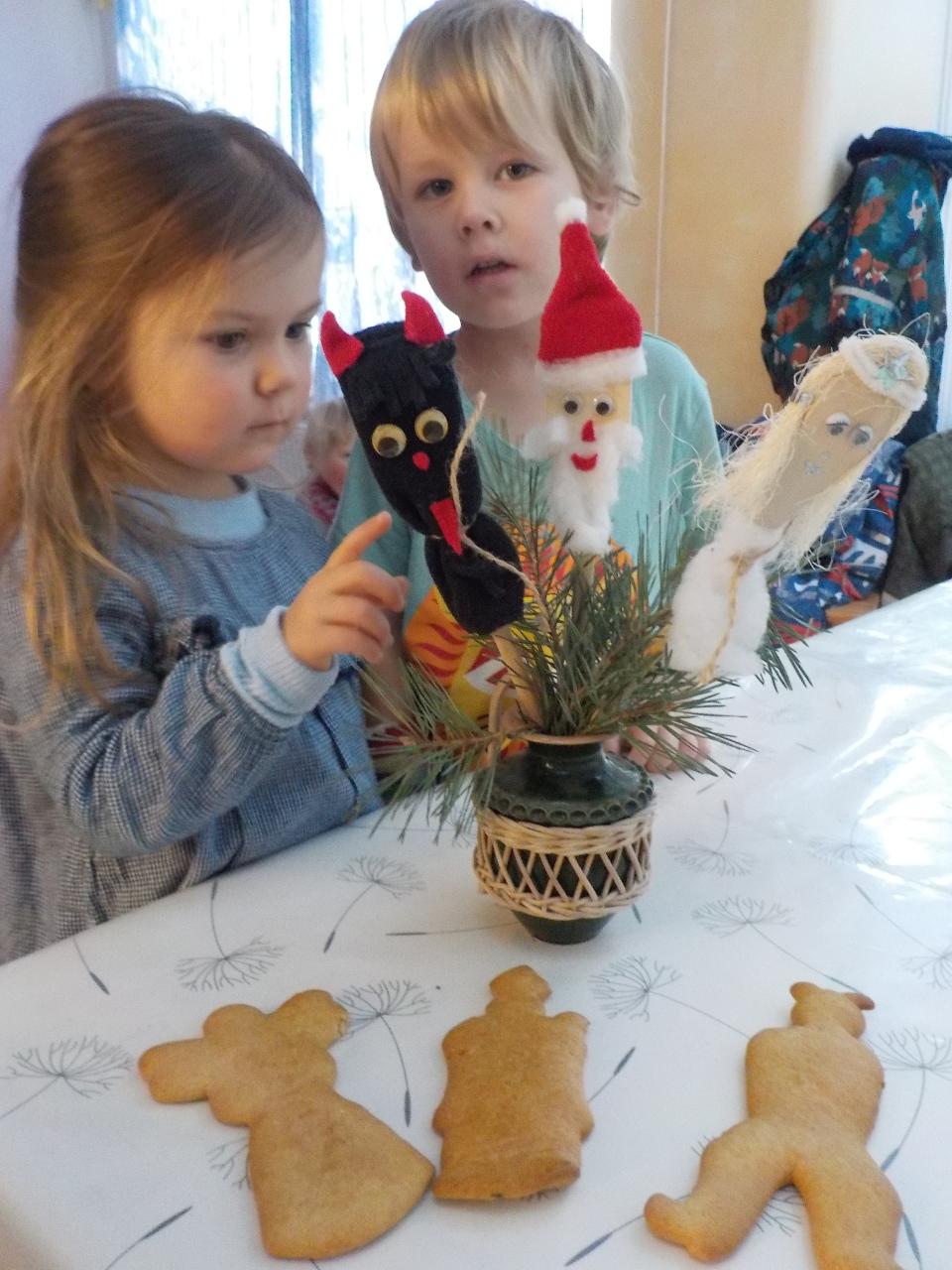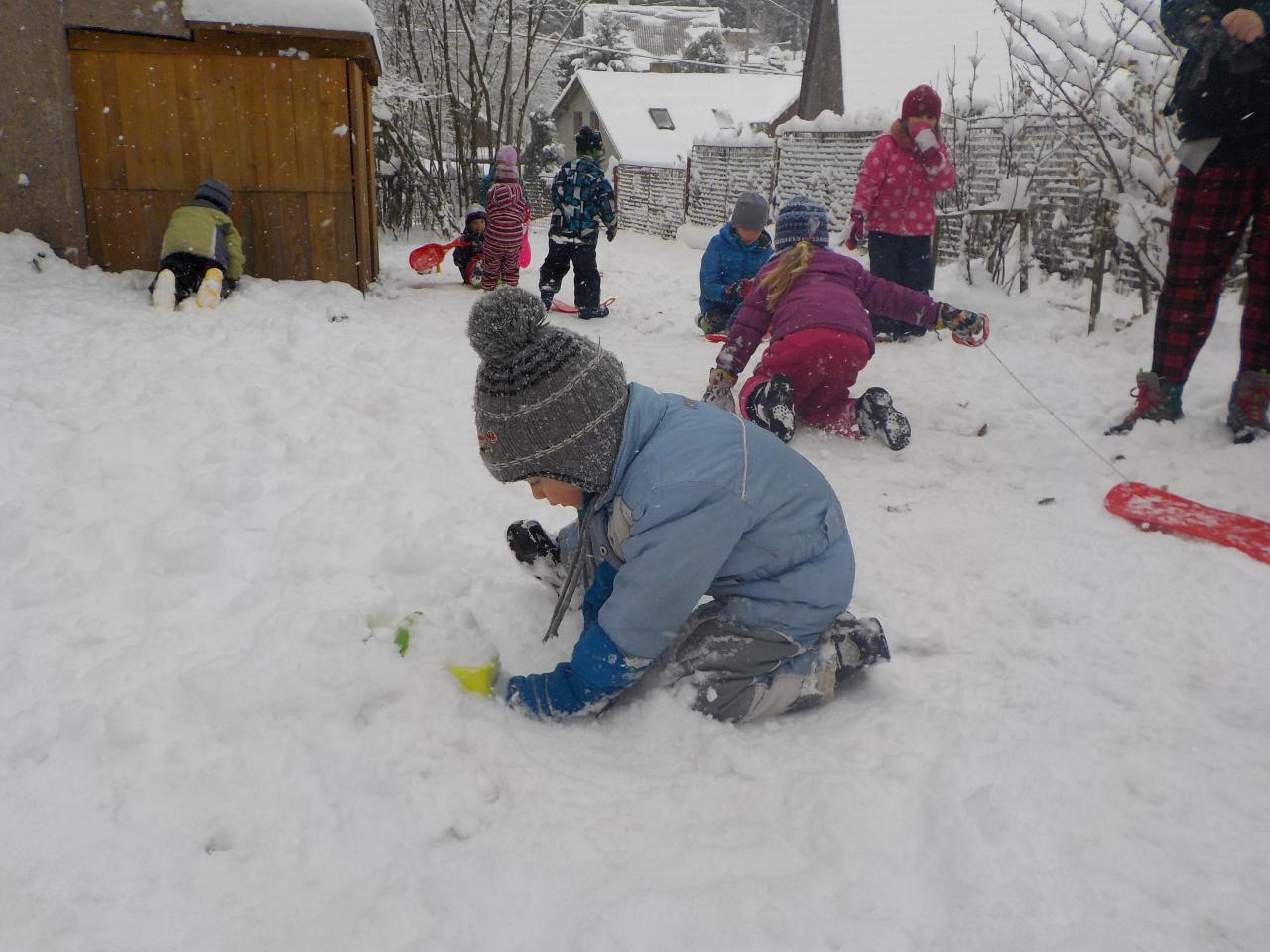 Podzim je nadobro pryč a před námi nový čas, připravujeme se na návštěvu svatého Mikuláše. Ve školce si o něm povídáme, o tom, jak je moudrý a spravedlivý a jaké dva pomocníky vodí s sebou. Z čertíka si děláme trochu legraci a učíme se, jak mrštně umí pohybovat jazýčkem. Andělovi přidělujeme kouzelné zvuky, Mikuláše stříháme z papíru. A pak to překvapení venku - tak bělostný sníh celou atmosféru podtrhává a tolik radosti udělá.