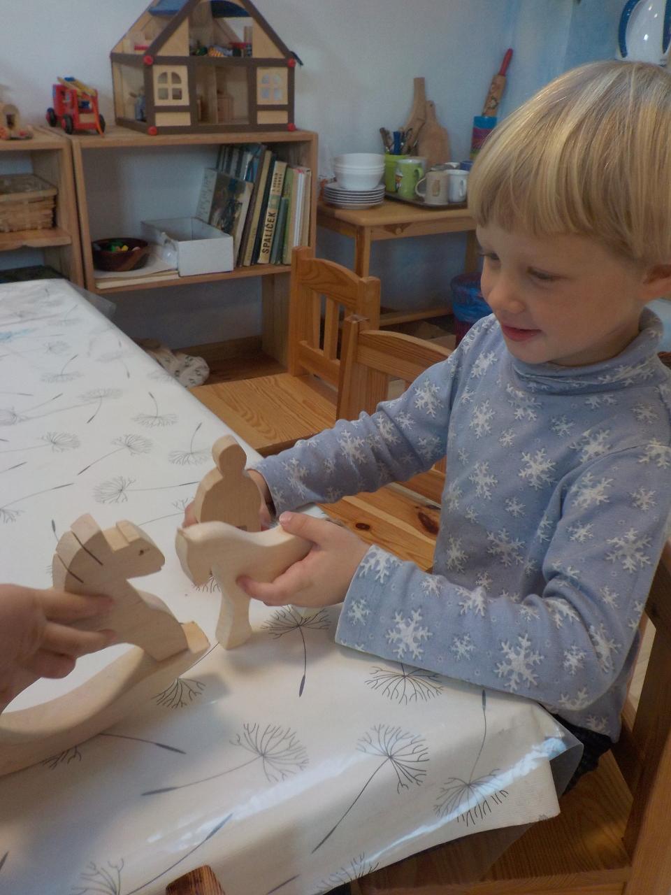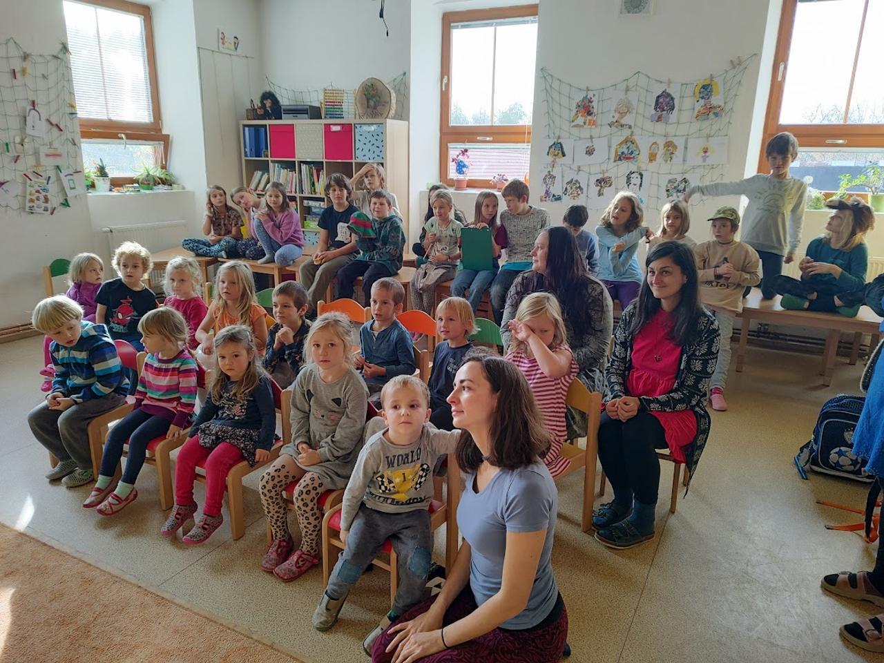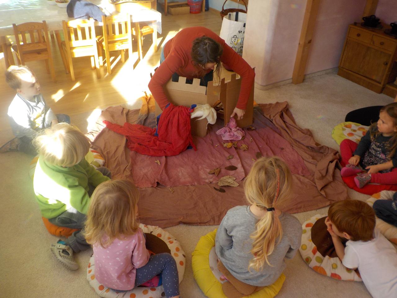 V Mravenečkovi bývá teploučko, už se začínáme rádi tulit k topení, venku se pomalými krůčky vkrádá zima. Ale to je jen chvíle, než přijdou ostatní děti, pak už vypukne velká hra a ta nás prohřívá dokonale - děti mají svá vozítka a hrají si na záchranáře. Jindy vyndáme skluzavku a vozíme se, nebo koulíme kotrmelce na matracích. Tento týden byl plný našeho martinského tématu. Děti si hrály s koníky, stavěly jim stáje, jezdily na koni dřevěném a hrály si na sv. Martina, pláštěm obdarovávaly žebráka. Divadýlko na toto téma nám přišla zahrát Péťa a navštívili jsme i školáky v jejich třídě a vidělil jsme, jak podobnou scénu umí ztvárnit oni. O koních jsme zpívali, hráli na rolničky a zvuk podkov vyluzovaly pomocí kokosových ořechů. Pečení bylo plné máku a martinských rohlíčků - některé jsme snědli ke svačině, jiné zůstaly ve školce na martinskou slavnost. Na tu ještě bylo třeba vyrobit lucerničku, abychom se cestou z kostela v průvodu po tmě za Martinem neztratili. Jsme rádi, že jsme tuto slavnost mohli společně prožít a doufáme, že si obraz z ní ponesou vaše děti v sobě ještě dlouho.
