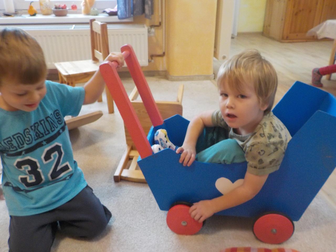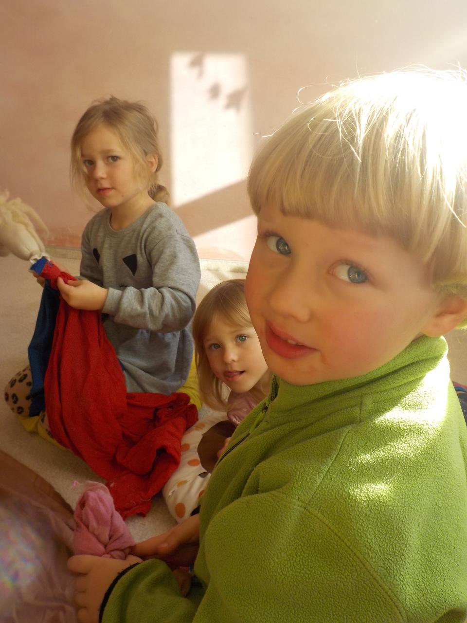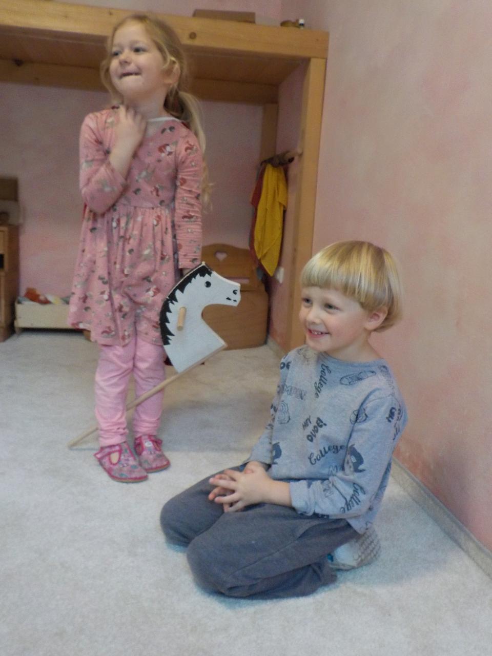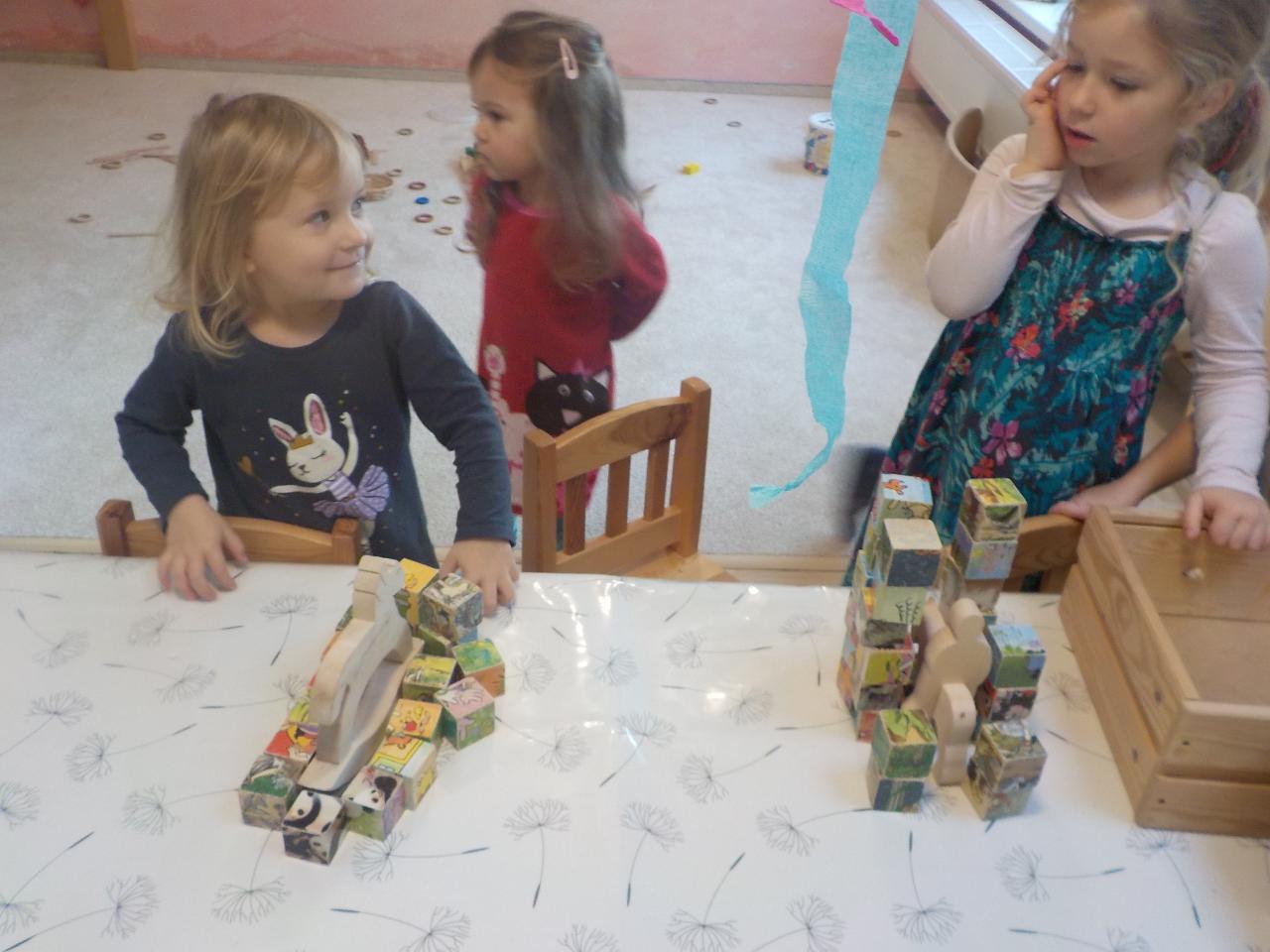 V Mravenečkovi bývá teploučko, už se začínáme rádi tulit k topení, venku se pomalými krůčky vkrádá zima. Ale to je jen chvíle, než přijdou ostatní děti, pak už vypukne velká hra a ta nás prohřívá dokonale - děti mají svá vozítka a hrají si na záchranáře. Jindy vyndáme skluzavku a vozíme se, nebo koulíme kotrmelce na matracích. Tento týden byl plný našeho martinského tématu. Děti si hrály s koníky, stavěly jim stáje, jezdily na koni dřevěném a hrály si na sv. Martina, pláštěm obdarovávaly žebráka. Divadýlko na toto téma nám přišla zahrát Péťa a navštívili jsme i školáky v jejich třídě a vidělil jsme, jak podobnou scénu umí ztvárnit oni. O koních jsme zpívali, hráli na rolničky a zvuk podkov vyluzovaly pomocí kokosových ořechů. Pečení bylo plné máku a martinských rohlíčků - některé jsme snědli ke svačině, jiné zůstaly ve školce na martinskou slavnost. Na tu ještě bylo třeba vyrobit lucerničku, abychom se cestou z kostela v průvodu po tmě za Martinem neztratili. Jsme rádi, že jsme tuto slavnost mohli společně prožít a doufáme, že si obraz z ní ponesou vaše děti v sobě ještě dlouho.