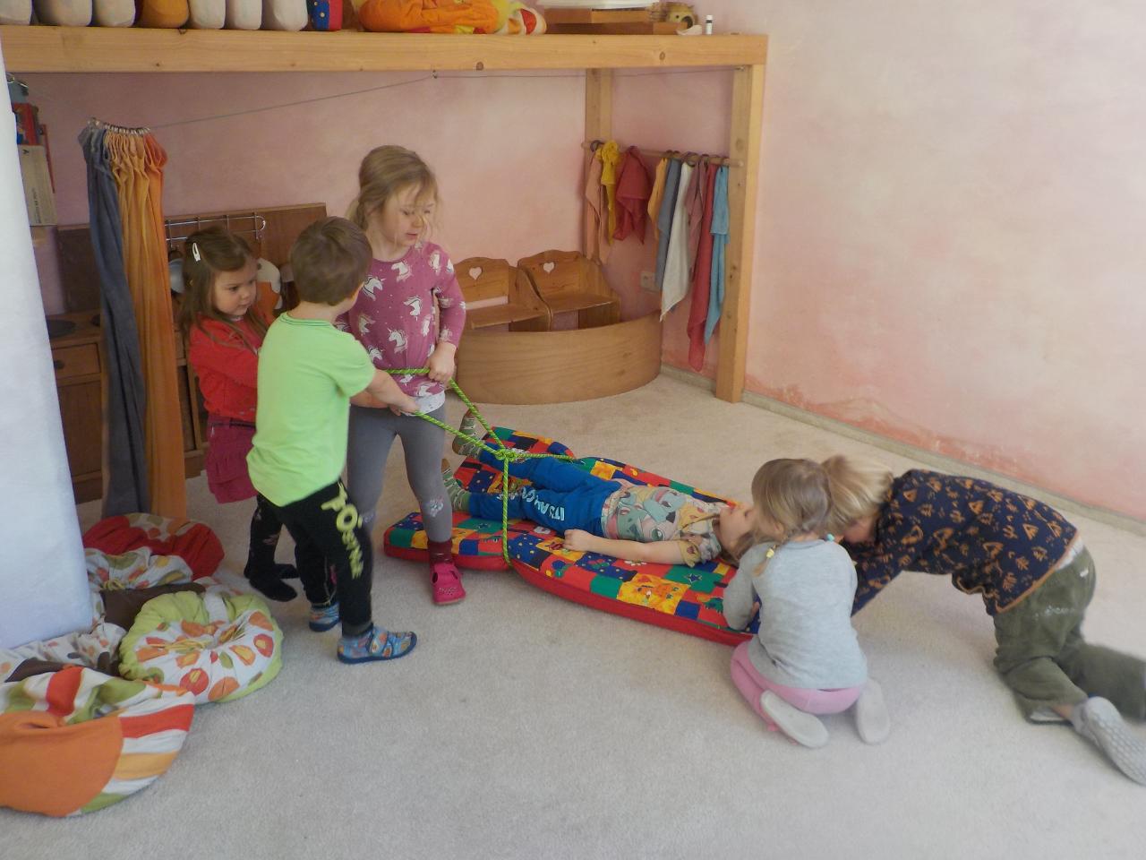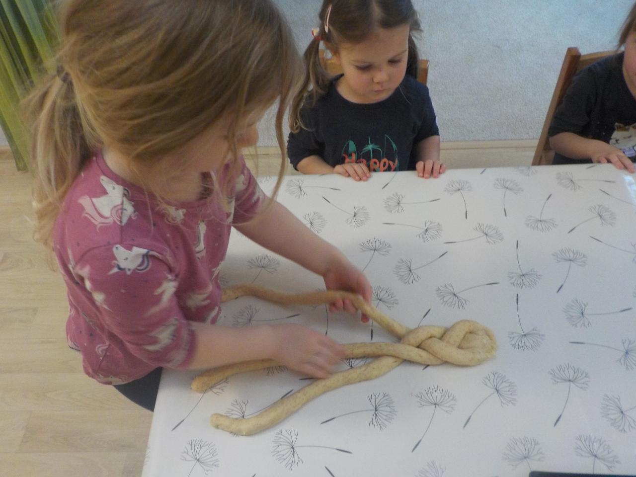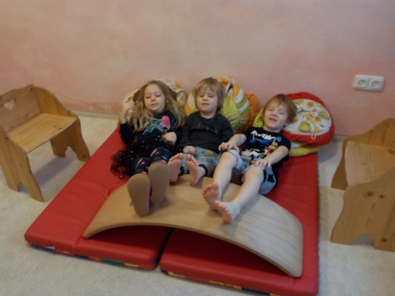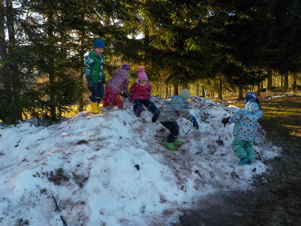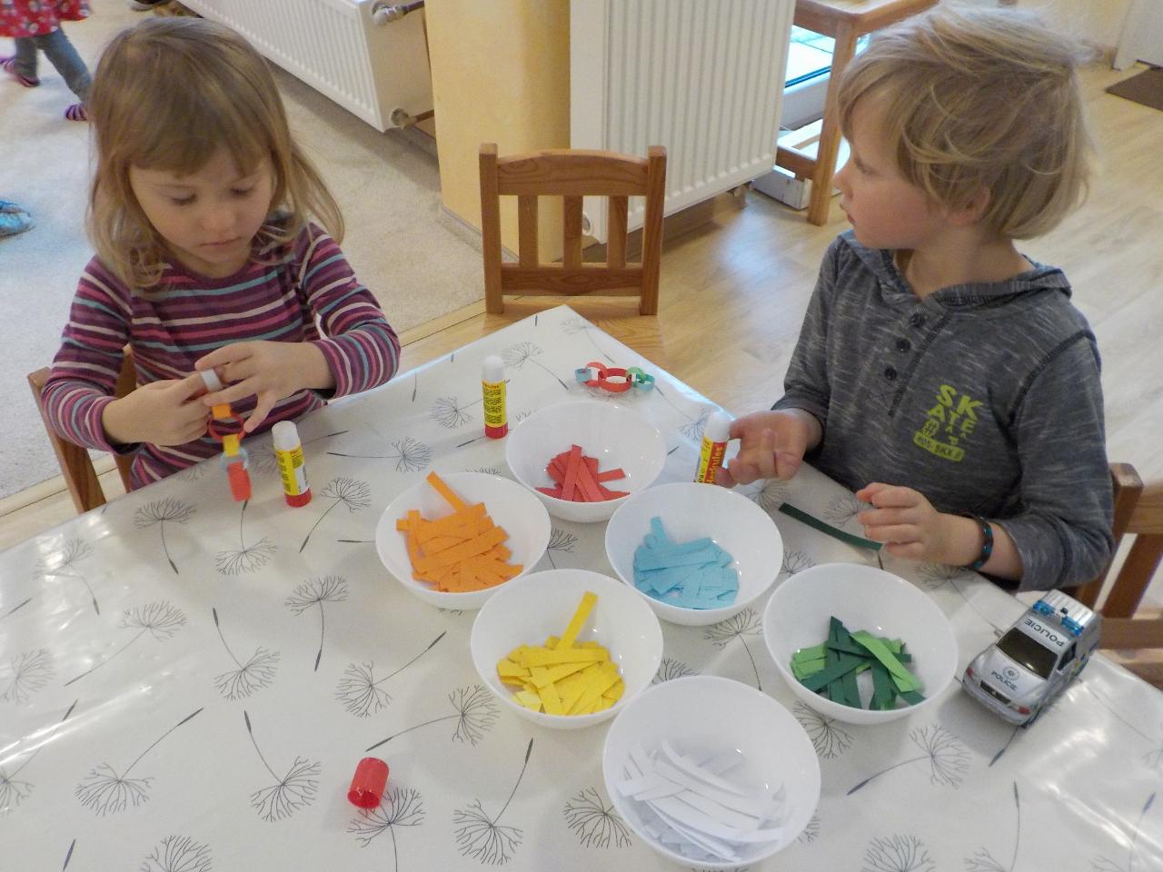 Adventních pytlíčků nám ubývá, s každým dnem je to vždy milé překvapení - co se skrývá uvnitř, ubývá i svíček a zkracuje se cesta na adventní spirále, kterou každý den zapalujeme. Ale her a radostných chvil mezi dětmi přibývá. A očekávání a napětí se stupňuje. Snažíme se ty chvíle plné napětí příjemně a velmi vědomě prožívat, čteme si, vyprávíme o svaté rodině, která je v nějvětším očekávání, každý den v betlémě přibývá nová postava a s ní i nový příběh, hra či písnička. Každý si tento týden domů odnesl malého Ježíška ve skořápce, kus vánočního papírového řetězu a velkou tašku plnou obrázků, které maloval po celý první půlrok. Upekli jsme společnými silami "štědrovku", venku jsme zdolávali poslední zbytky sněhu, těšili se na čerstvém, procházeli obřími kalužemi i na těch zamrzlých se klouzali. A aby té atmosféry nebylo málo, navštívili jsme kostelíček, kde nám školáci zahráli a zazpívali o vánočním příběhu.