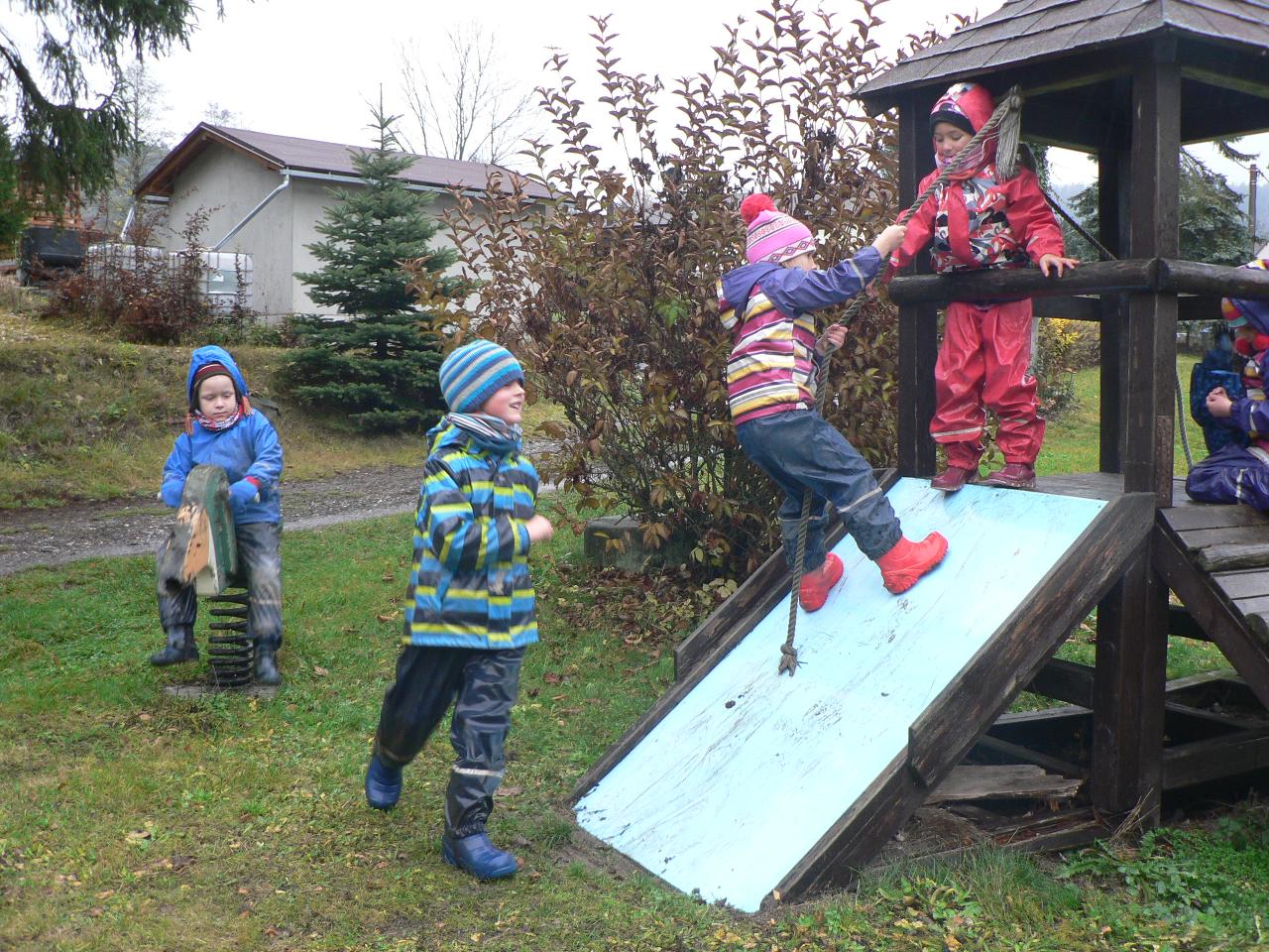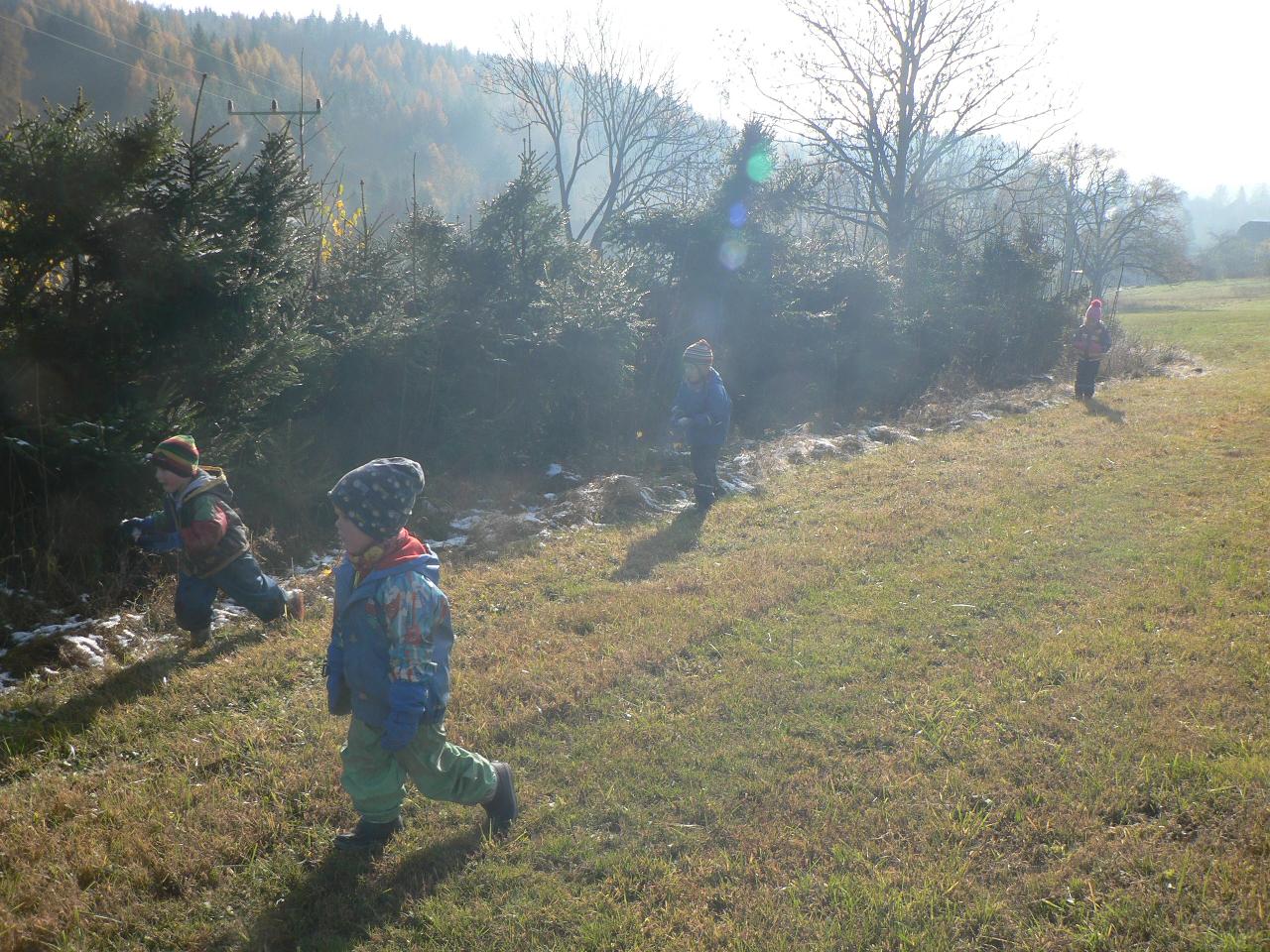 Martinův příběh nás ve školce provázel během celého týdne. Ve čtvrtek si děti samy zahrály divadélko, ve kterém se vystřídaly v roli svatého Martina i žebráka, se kterým se Martin v chladném podzimním dni podělil o svůj vojenský plášť. Zpívali jsme martinské písničky, ale také písničky o koních, a protože nám štěstí přálo, tak opravdu přišel i první sníh a zažili jsme tak první skutečnou koulovačku.
