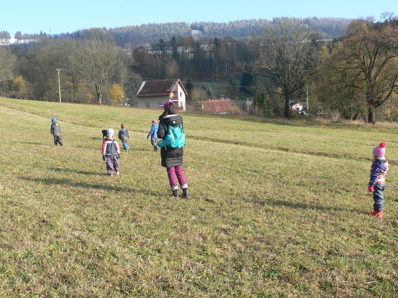 V pondělí jsme zahájili nový týden Svatomartinskou slavností. Během dne jsme společně s dětmi pekli svatomartinské rohlíčky a celým Mraveništěm se tak linula sladká vůně. Některé děti ještě domalovávaly své lucerničky, aby byly připravené na odpolední průvod po vesnici. Kolem čtvrté hodiny jsme se všichni s dětmi a jejich rodiči sešli v jídelně, abychom zhlédli svatomartinské divadélko od Petry Němečkové, poslechli si martinské písně v podání našich školáků a poté se společně vydali průvodem po vesnici obdarovat sousedy napečenými rohlíčky. Ve tmě tak zářily nejen barevné lucerničky, ale i oči obdarovaných. Společně jsme pak došli na louku, kde byla na stromě zavěšená lucerna označující cíl našeho putování. K velké radosti dětí opravdu dorazil Martin na svém koni a děti pak hledaly v trávě podkovy, které po cestě ztratil Martinův kůň. A protože to byly podkovy čokoládové, následovalo spravedlivé dělení, aby na každého vyšel aspoň kousíček sladké odměny.
