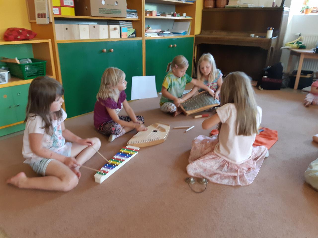 Na tomto týdnu se sešlo 11 dívek ve věku 5-10 let. Užili jsme si spoustu tvoření, malování, vyrábění, výletů i her. Tvořili jsme náramky z korálků, andílky (pardon, vlastně víly) z ovčí vlny, vyráběli jsme lapače snů, malovali roční období a jejich symboly. Svá těla jsme protáhli při jógových cvičeních a zjišťovali, zda se nám lépe a snáz cvičí samostatně nebo ve dvojici. Bubnovali jsme a tančili, zkoumali, jak to máme se strachem a důvěrou. Zkoušeli jsme vyjádřit naše pocity a emoce nejenom slovy, ale třeba právě hraním na různé hudební nástroje. Hodně času jsme také trávili venku a užívali si společných her na loukách a v lesích v okolí Mraveniště. Při společných aktivitách jsme objevovali, jak je důležitá komunikace a spolupráce a že když udělám radost někomu druhému, o to větší může být i moje vlastní. A stejně jako loni nám na výletech a vycházkách dělala společnost zkušená psí průvodkyně Fidorka, která si to s námi určitě moc užila.