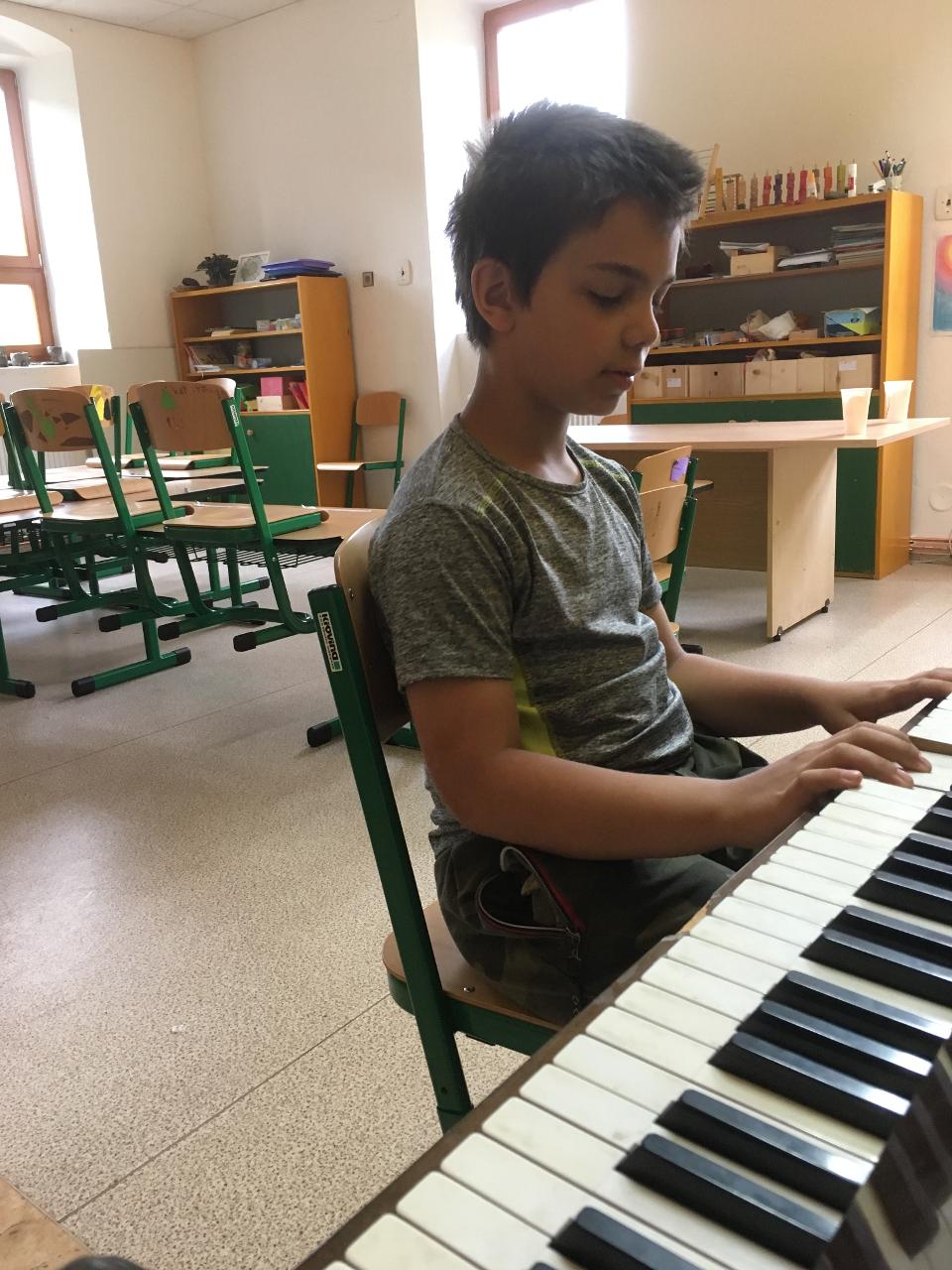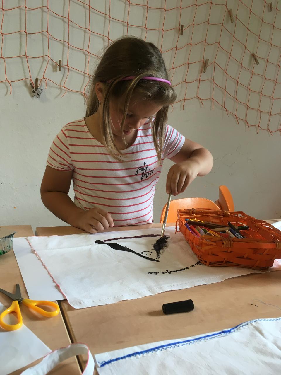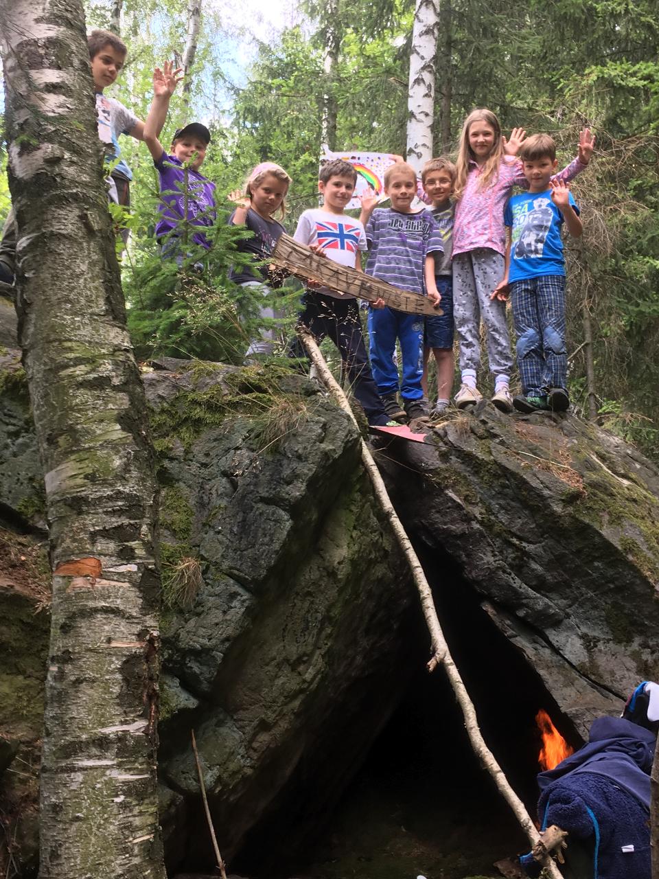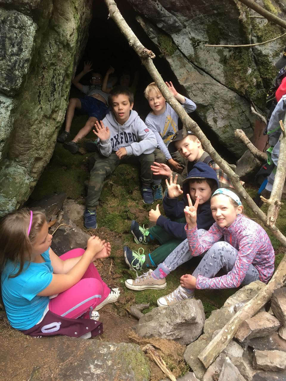 Každý den jsme protahovali svaly a kosti. Nejčastěji v rozmanité přírodě v okolí Mravenčí školy, nejčastěji v podobě budování jeskyně „Dračí tlama“. Dále v novém SVČ Na Nivách v lanovém centru a na horolezecké stěně nebo v bazénu v Trutnově. Děti během 5ti dnů tvořily a pracovaly se dřevem, profesionálními dlátky, se sklem, s látkami,s barvičkami, s vodou, přírodním materiálem, a v neposlední řadě s fantazií J Společné chvíle naší táborové skupinky dále provázela práce se šicím strojem, hra na klavír, deskové i karetní hry, jóga, táborové řádění, nesmírně dobré svačinky od rodičů táborníků a vynikající obědy od Evičky.