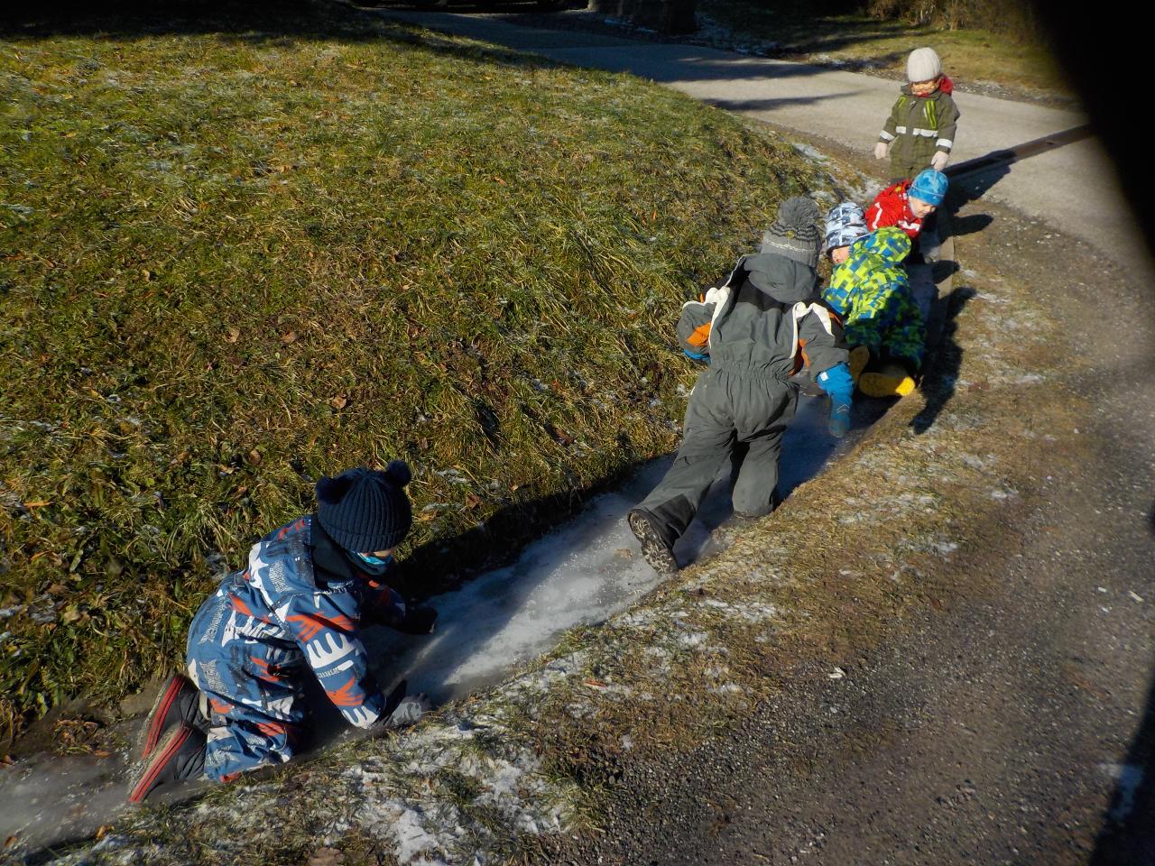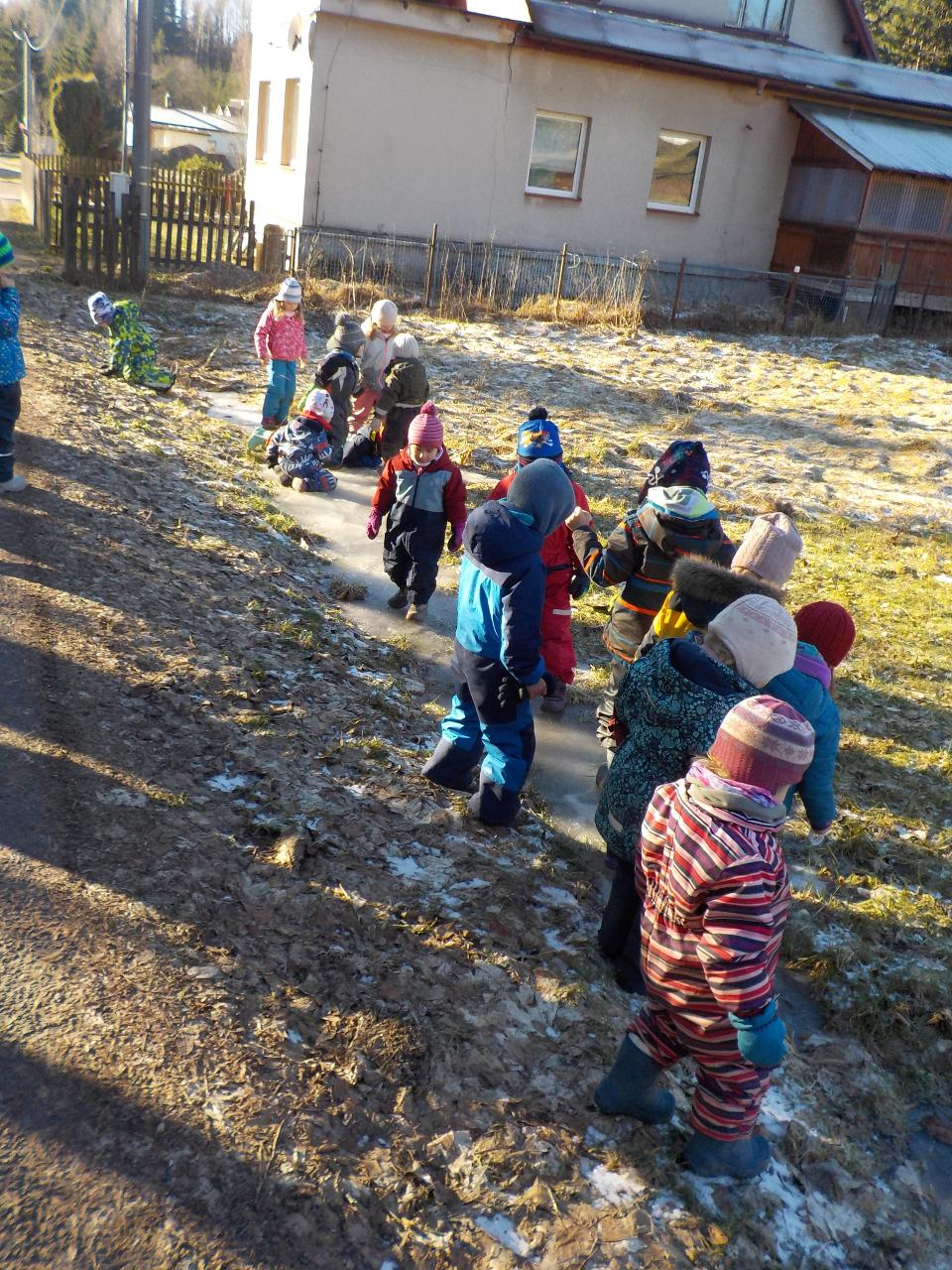 Tak trochu jsme si tento týden zahráli na Marušku, která měla přetěžký úkol, v lednových mrazivých dnech projít krajem a najít nečekané. Mrazivé dny opravdu leden, měsíc, který kraluje, nezapřely. Ledový vichr nás téměř odfoukl a zmrazil vše, co se naskytlo, Ale když pak další dny vyšlo sluníčko a ukázalo tu ledovou krásu, nestačili jsme se divit, co vše je možné vykouzlit a jakou velkou legraci lze na ledě a s ledem prožít. Ve školce jsme si pak vykouzlili z těsta fialky a na papíře jablíčka, abych se Marušce trochu přiblížili.