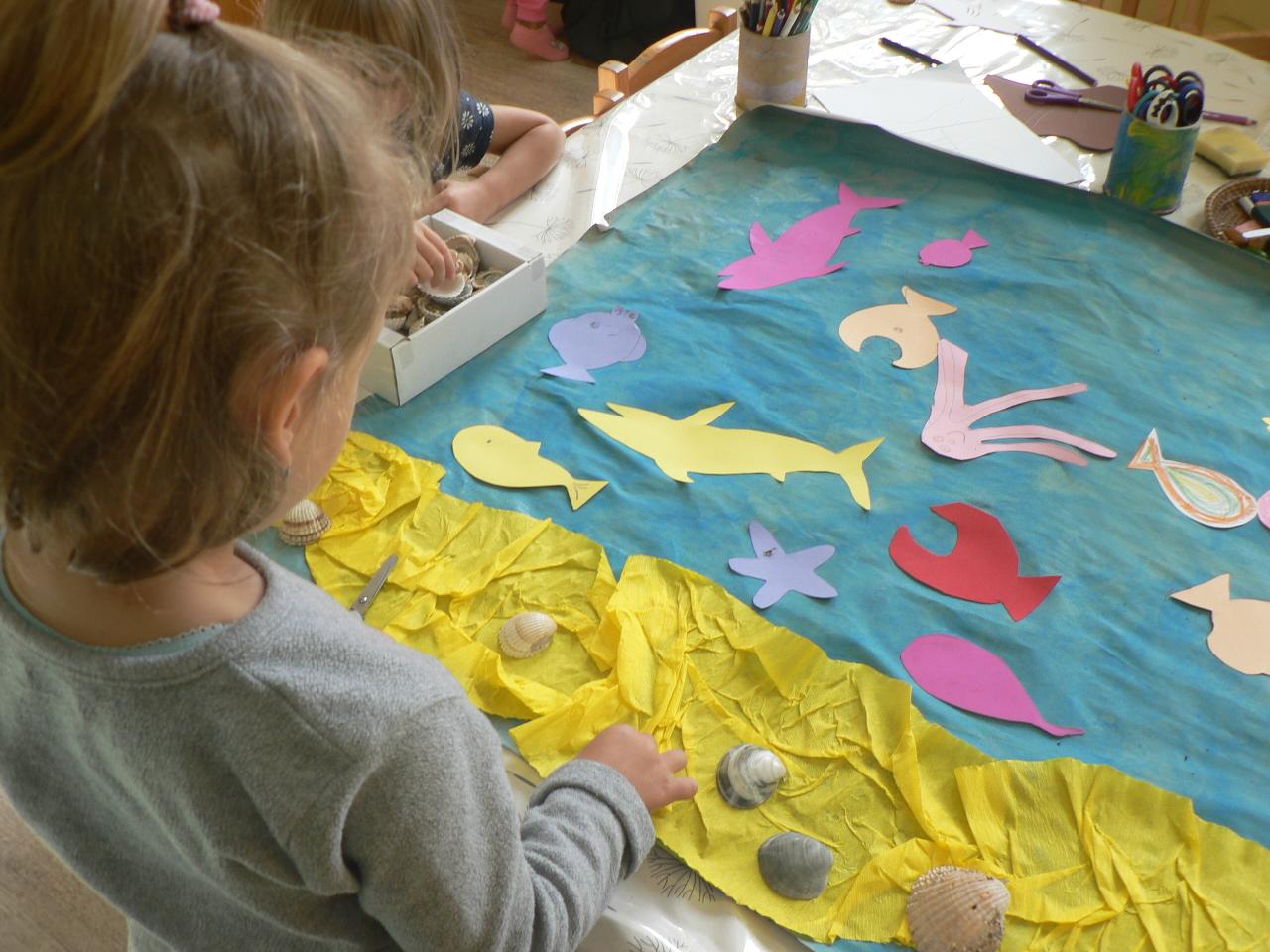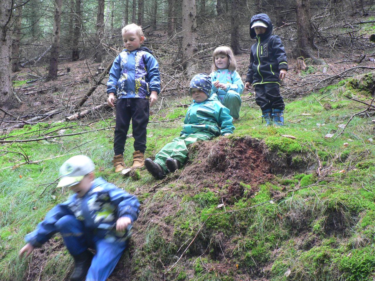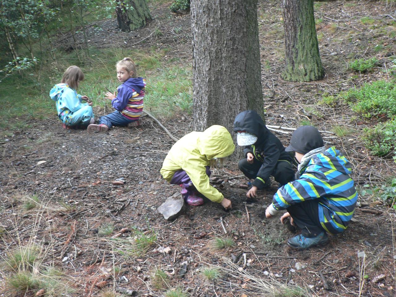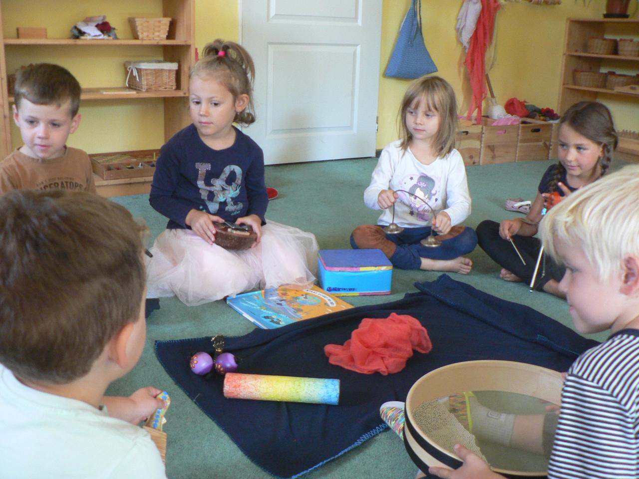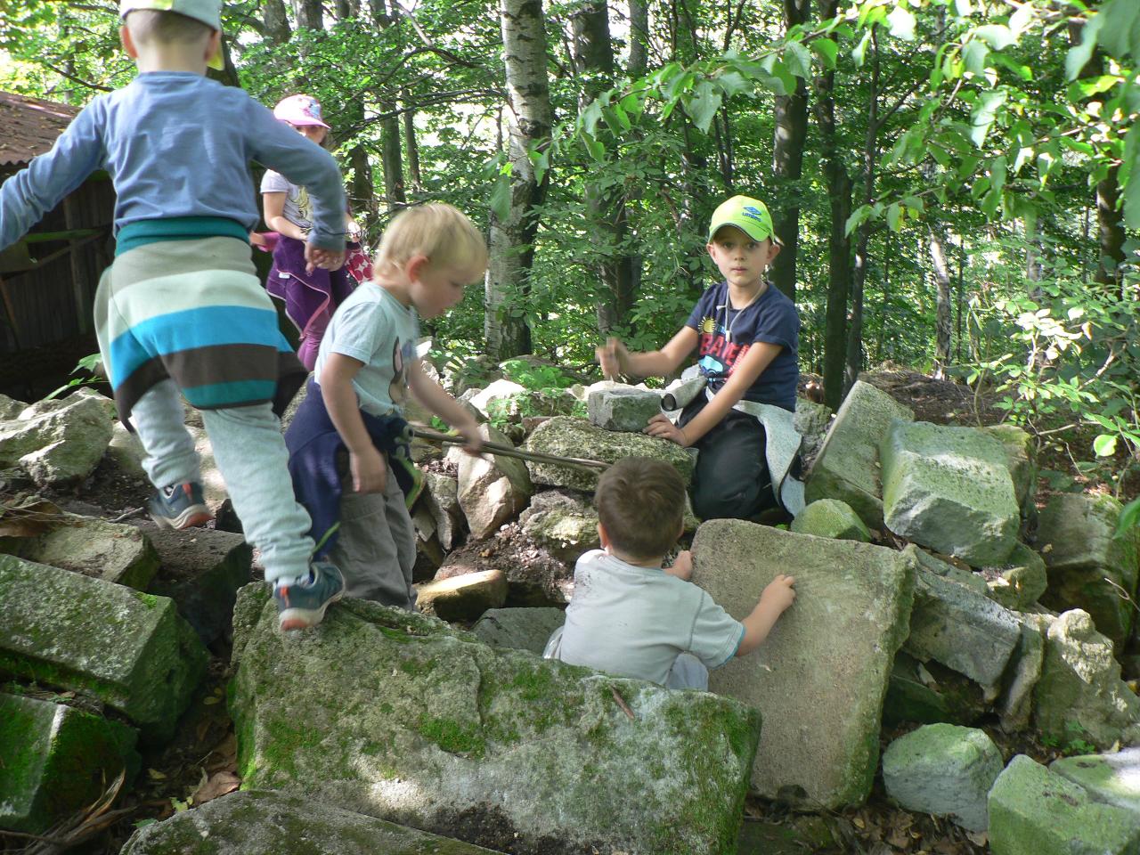 …praví věštba v pohádce Největší poklad, která nás tímto týdnem provázela. Pohádka vypráví o přátelství čarodějky, havrana a velryby, o volbě královny všech čarodějek a také o tom, že ten největší poklad nelze koupit za zlato. Skutečné přátelství je totiž nad všechny poklady světa. Tento týden byl plný legrace a kamarádství. Hráli jsme nové hry, vyráběli velryby s vodotryskem, tvořili společné moře plné nejroztodivnějších ryb a živočichů, malovali jsme třpytivé rybičky a pomocí různých hudebních nástrojů jsme zkoušeli vytvořit zvuky moře. Povídali jsme si také o tom, jak se k sobě chovají opravdoví kamarádi a co máme či nemáme rádi. Ze začátku týdne trochu pršelo, a tak jsme mohli vodní živel poznat a prožít na vlastní kůži. V druhé polovině týdne však už zase svítilo slunce, takže jsme odhodili holinky a nepromokavé oblečení a opět s chutí vyrazili do lesa a na louky, běhali jsme po kopcích nebo si prosekávali cestičky divokými kopřivami.