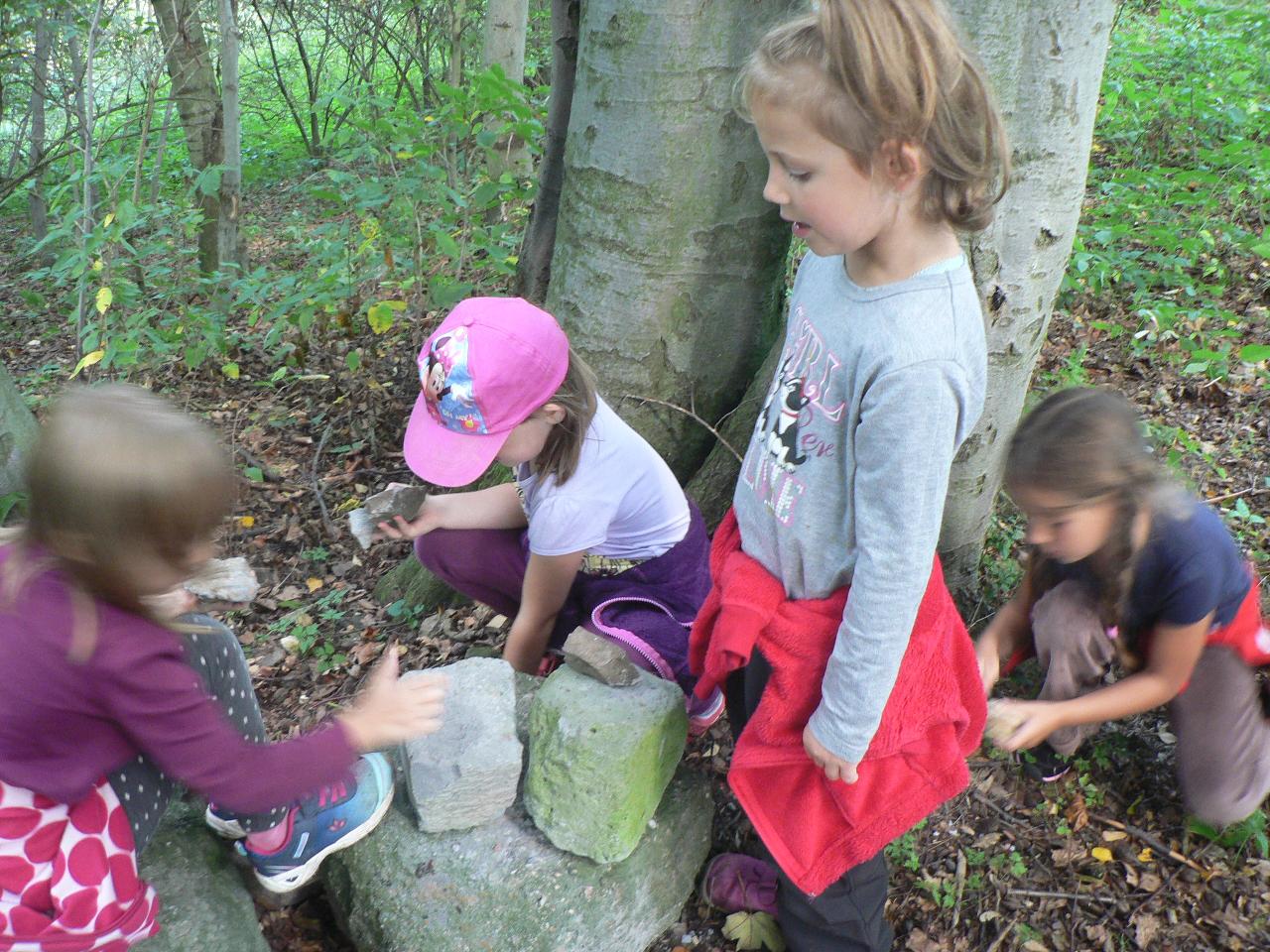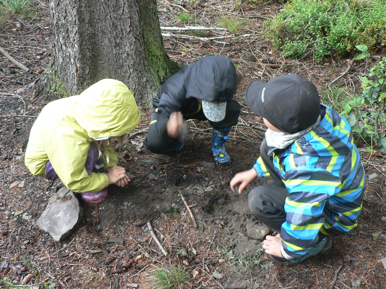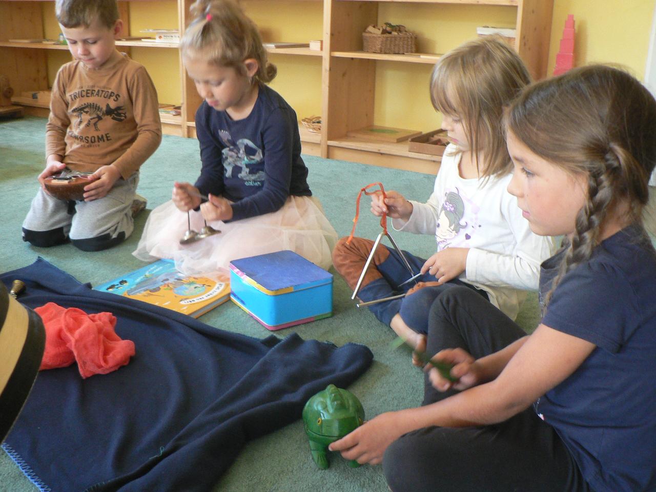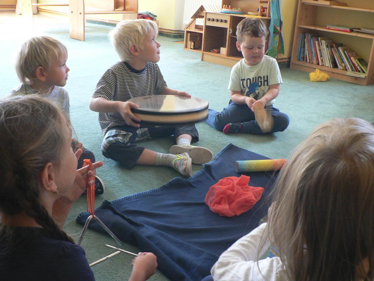 …praví věštba v pohádce Největší poklad, která nás tímto týdnem provázela. Pohádka vypráví o přátelství čarodějky, havrana a velryby, o volbě královny všech čarodějek a také o tom, že ten největší poklad nelze koupit za zlato. Skutečné přátelství je totiž nad všechny poklady světa. Tento týden byl plný legrace a kamarádství. Hráli jsme nové hry, vyráběli velryby s vodotryskem, tvořili společné moře plné nejroztodivnějších ryb a živočichů, malovali jsme třpytivé rybičky a pomocí různých hudebních nástrojů jsme zkoušeli vytvořit zvuky moře. Povídali jsme si také o tom, jak se k sobě chovají opravdoví kamarádi a co máme či nemáme rádi. Ze začátku týdne trochu pršelo, a tak jsme mohli vodní živel poznat a prožít na vlastní kůži. V druhé polovině týdne však už zase svítilo slunce, takže jsme odhodili holinky a nepromokavé oblečení a opět s chutí vyrazili do lesa a na louky, běhali jsme po kopcích nebo si prosekávali cestičky divokými kopřivami.