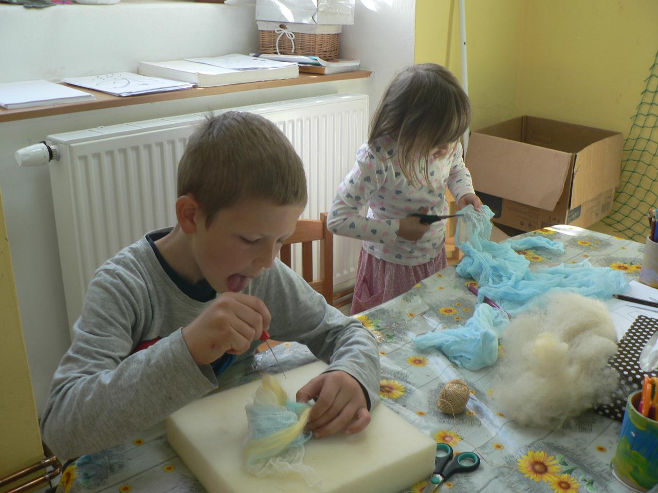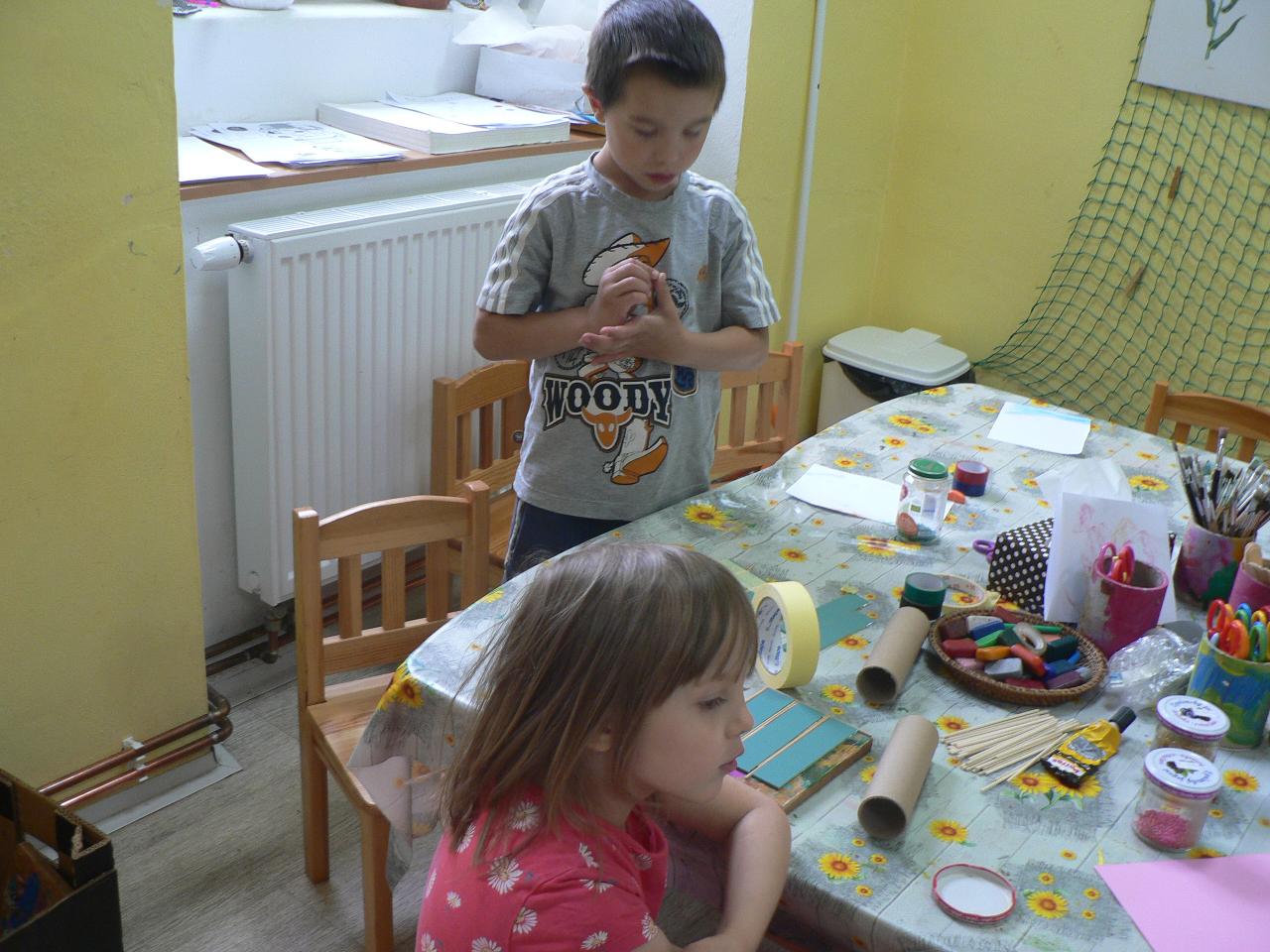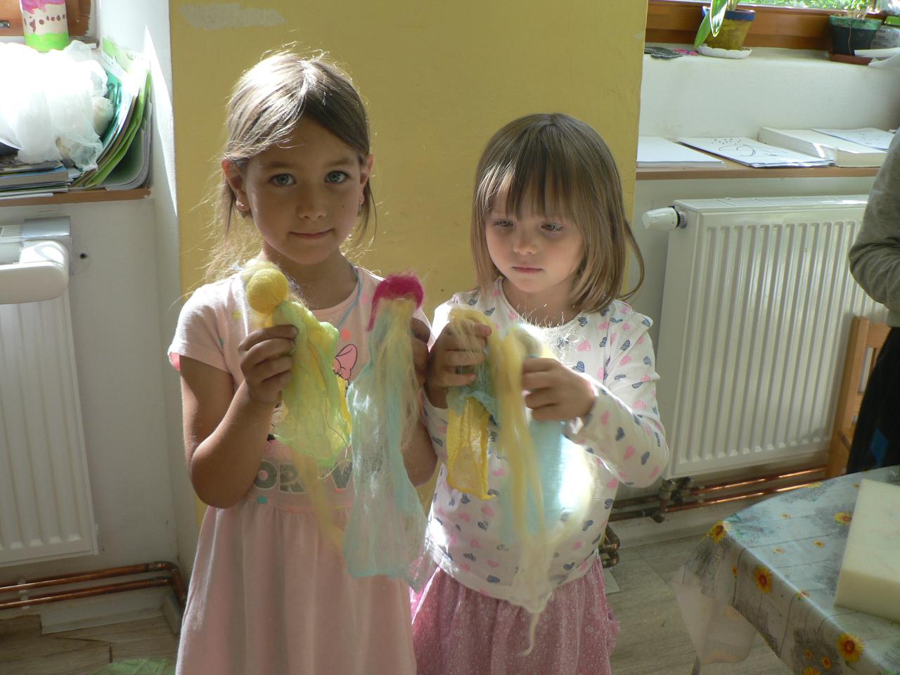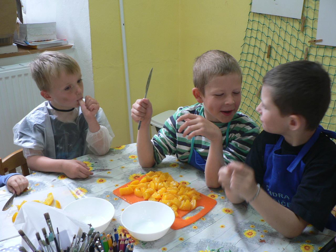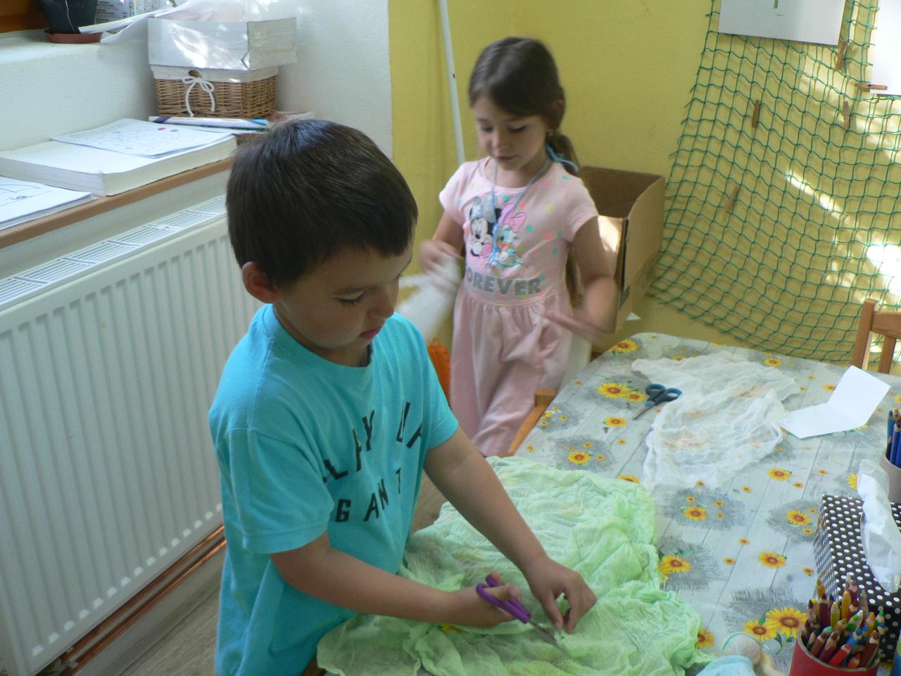 Tímto týdnem nás provázela pohádka o holčičce Mančince a kouzelném paraplíčku, díky kterému získala zpět ztracenou odvahu a sebedůvěru. Nejen Mančinku, ale i nás tento týden pokropil poslední májový deštík, a tak jsme si mohli opět řádně zadovádět ve vodě. Děti tentokrát vystřihovaly a lepily průsvity ve tvaru paraplíček, malovaly, tvořily dešťové víly z jemných barevných látek a ovčího rouna. Tančili jsme kolové tance, zpívali, cvičili a v pátek jsme pak společně s dětmi ve školce prožili dětský den. Vyráběli jsme barevné kaleidoskopy, tvořili vlastní nepečený dort, který jsme pak společně po obědě snědli. A čekalo nás také překvapení v podobě setkání s malým bagříkem. Děti si mohly vyzkoušet, jak se v takovém bagříku sedí, kolik je v něm páček a k čemu slouží, jestli je tam klakson a pedály, a zjistit spoustu dalších zajímavých věcí. Zvlášť u kluků vyvolal bagřík velké nadšení, ale nejen u nich. Májové deštíky odezněly a na dětský den nám krásně svítilo sluníčko.