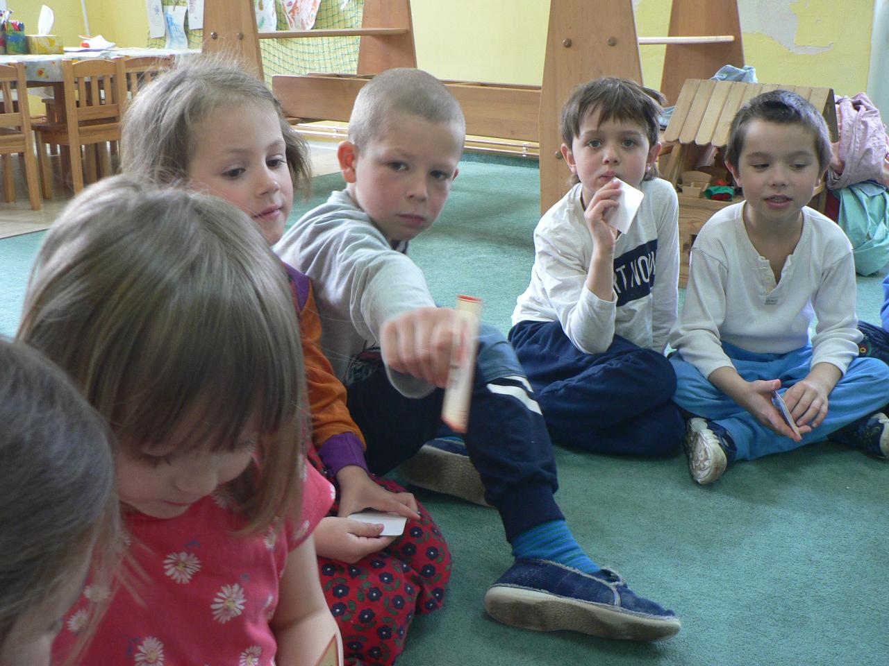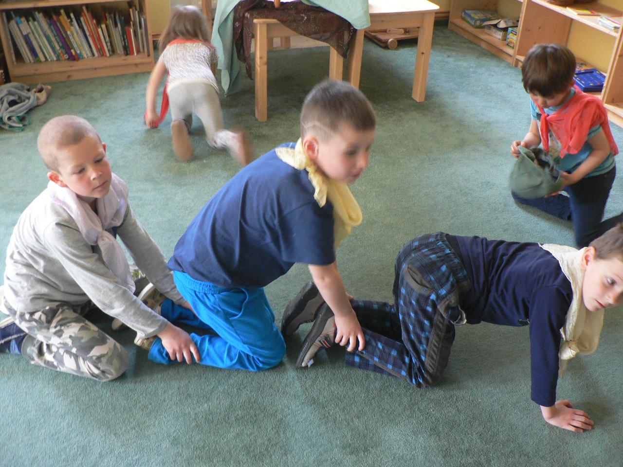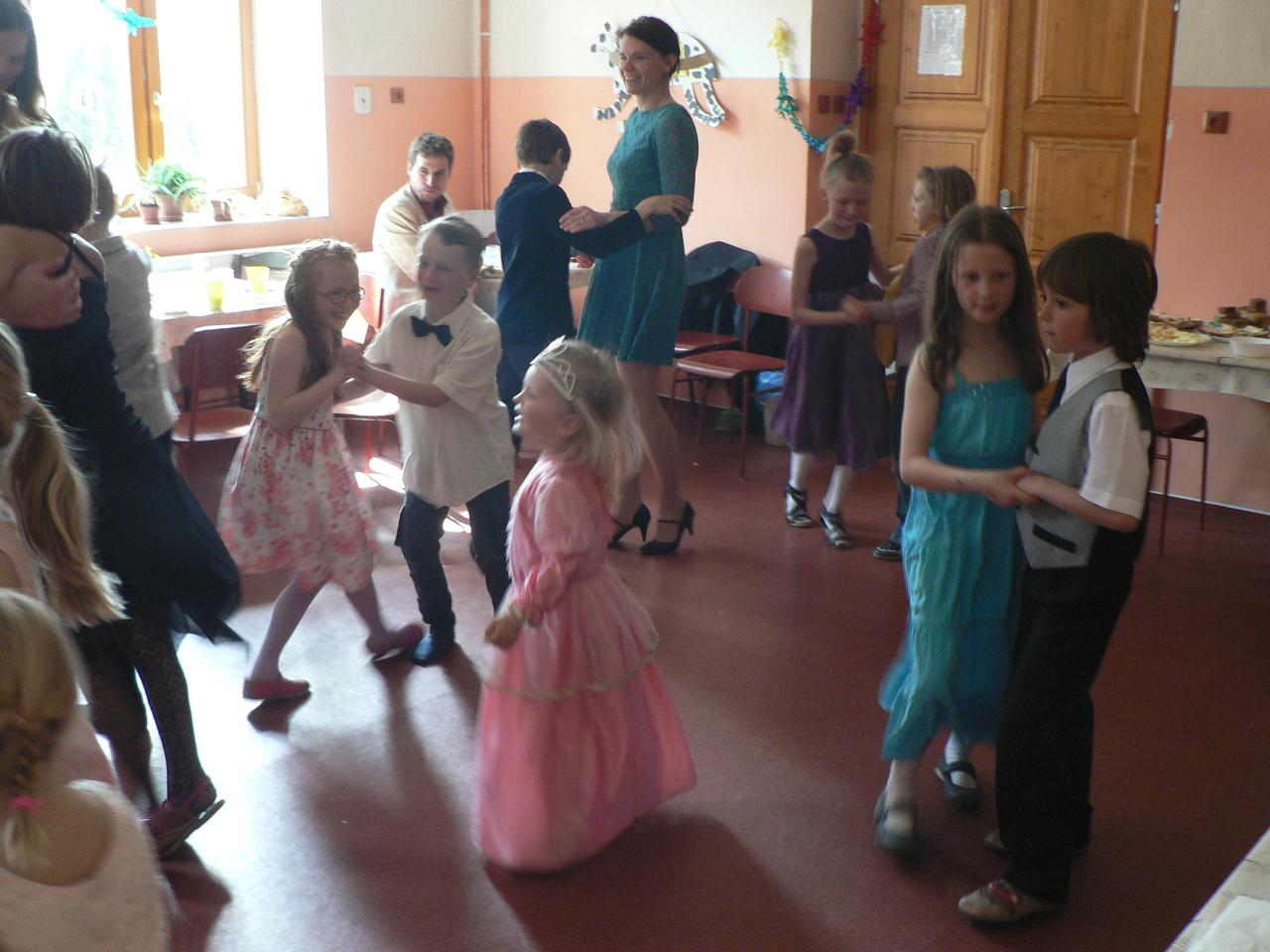 Týden plný událostí a zážitků jsme začali v pondělí společným vynášením Morany a loučením se zimou. Děti si mohly vyrobit každý svou Moranu, kterou jsme poté pouštěli po vodě. Další část týdne nás provázela pohádka o tom Jak se stonožka Slávka naučila tančit, a tak jsme se opět přenesli do říše hmyzu. Zkoumali jsme, kolik má který hmyz nožiček, poznávali jsme nejznámější druhy hmyzu podle obrázků i naživo v přírodě. Také jsme si hráli na stonožky a zkoušeli se pohybovat po herně a nepadat, i když se nás zapojí víc najednou. Stejně jako stonožka v pohádce jsme zkusili i pár tanečních kroků a poskoků. Ve čtvrtek nás pak místo oblíbeného divadélka čekalo překvapení od školáků, kteří nás pozvali na Mravenčí bál. Všechny děti se proto přestrojili do společenského oblečení a vydali jsme se do slavnostně vyzdobené jídelny, kde už hrála hudba, tančilo se a bylo připravené i občerstvení. Viděli jsme ukázku některých společenských tanců, a někteří se pak osmělili a tančili na oblíbené dětské písně. Pro všechny to byl velký zážitek a těšíme se na příští týden, který bude ve znamení probíhajících velikonočních příprav.