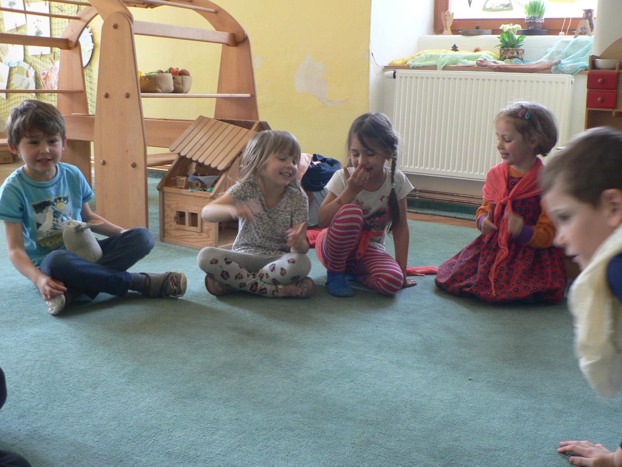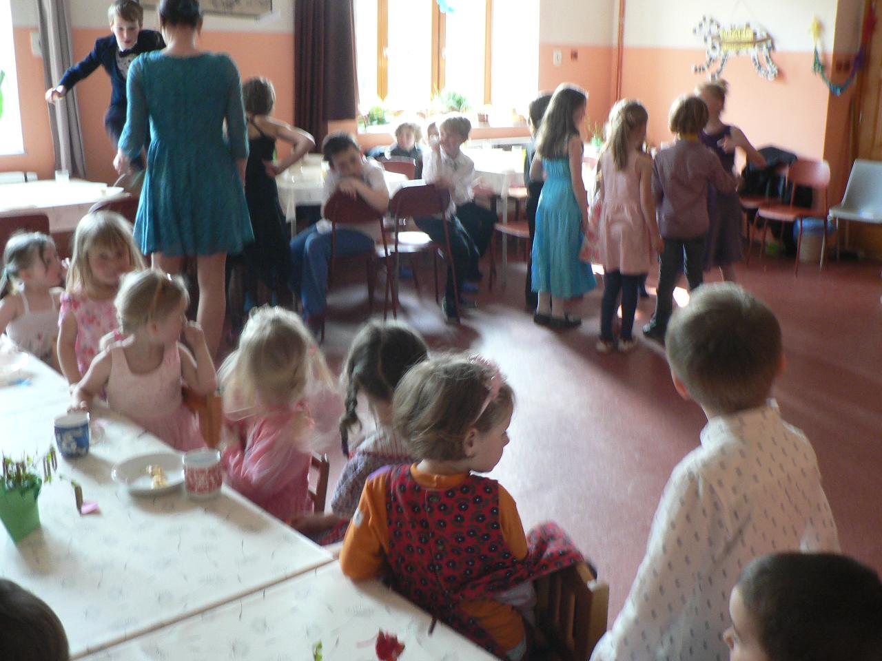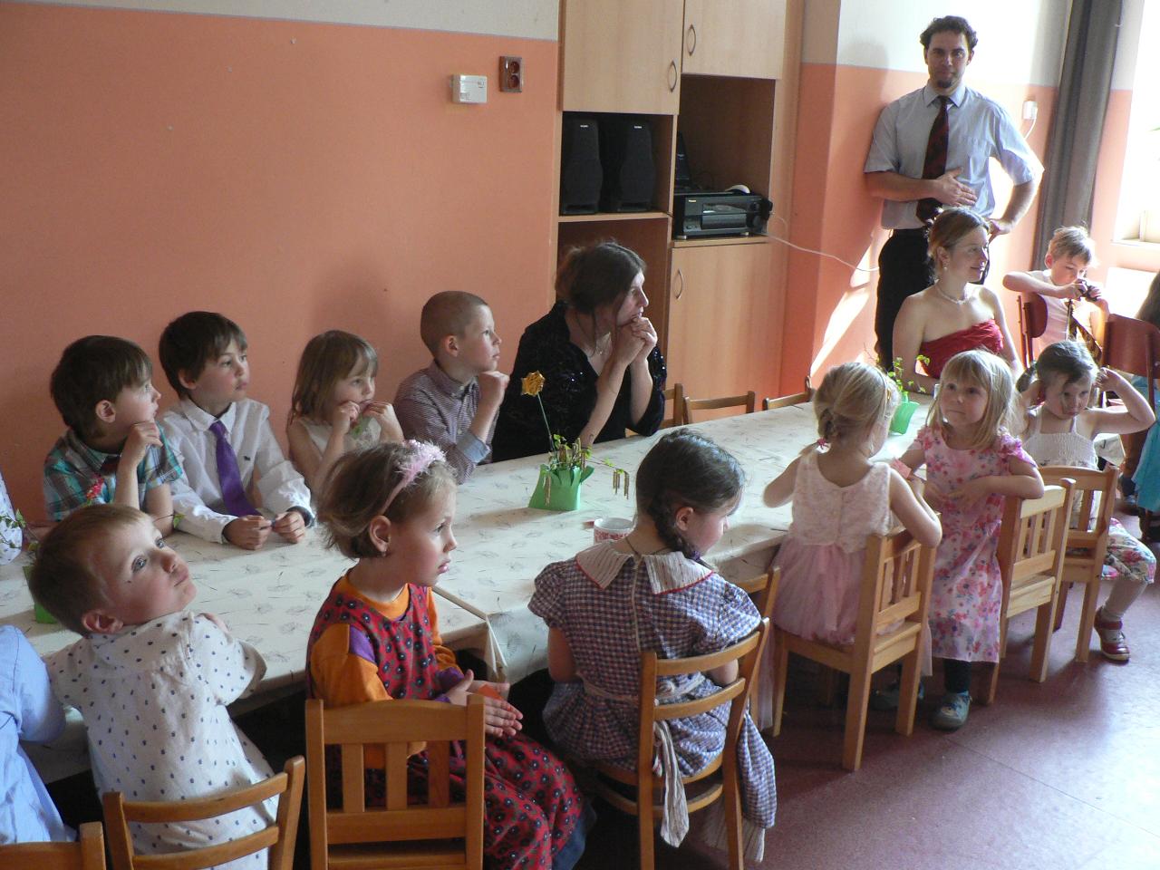 Týden plný událostí a zážitků jsme začali v pondělí společným vynášením Morany a loučením se zimou. Děti si mohly vyrobit každý svou Moranu, kterou jsme poté pouštěli po vodě. Další část týdne nás provázela pohádka o tom Jak se stonožka Slávka naučila tančit, a tak jsme se opět přenesli do říše hmyzu. Zkoumali jsme, kolik má který hmyz nožiček, poznávali jsme nejznámější druhy hmyzu podle obrázků i naživo v přírodě. Také jsme si hráli na stonožky a zkoušeli se pohybovat po herně a nepadat, i když se nás zapojí víc najednou. Stejně jako stonožka v pohádce jsme zkusili i pár tanečních kroků a poskoků. Ve čtvrtek nás pak místo oblíbeného divadélka čekalo překvapení od školáků, kteří nás pozvali na Mravenčí bál. Všechny děti se proto přestrojili do společenského oblečení a vydali jsme se do slavnostně vyzdobené jídelny, kde už hrála hudba, tančilo se a bylo připravené i občerstvení. Viděli jsme ukázku některých společenských tanců, a někteří se pak osmělili a tančili na oblíbené dětské písně. Pro všechny to byl velký zážitek a těšíme se na příští týden, který bude ve znamení probíhajících velikonočních příprav.