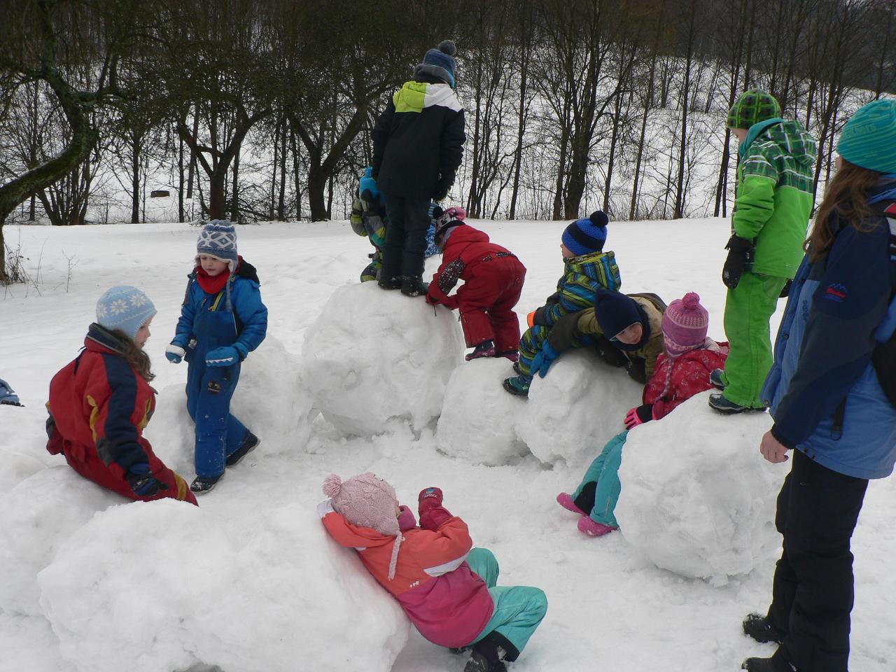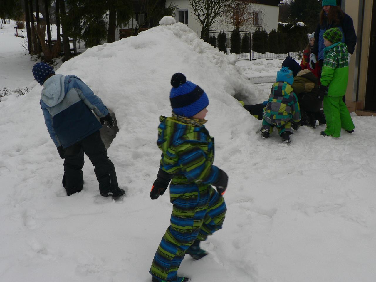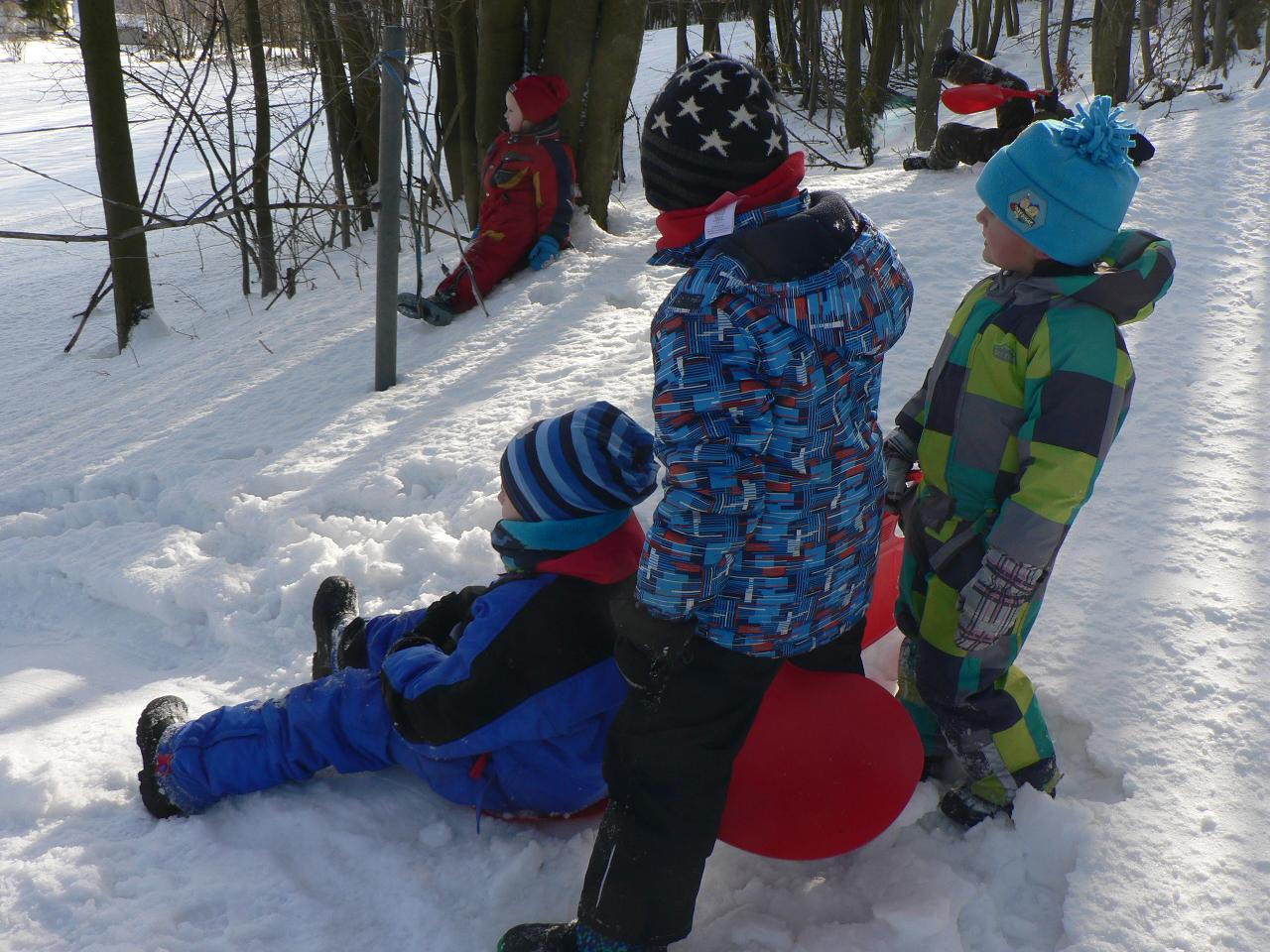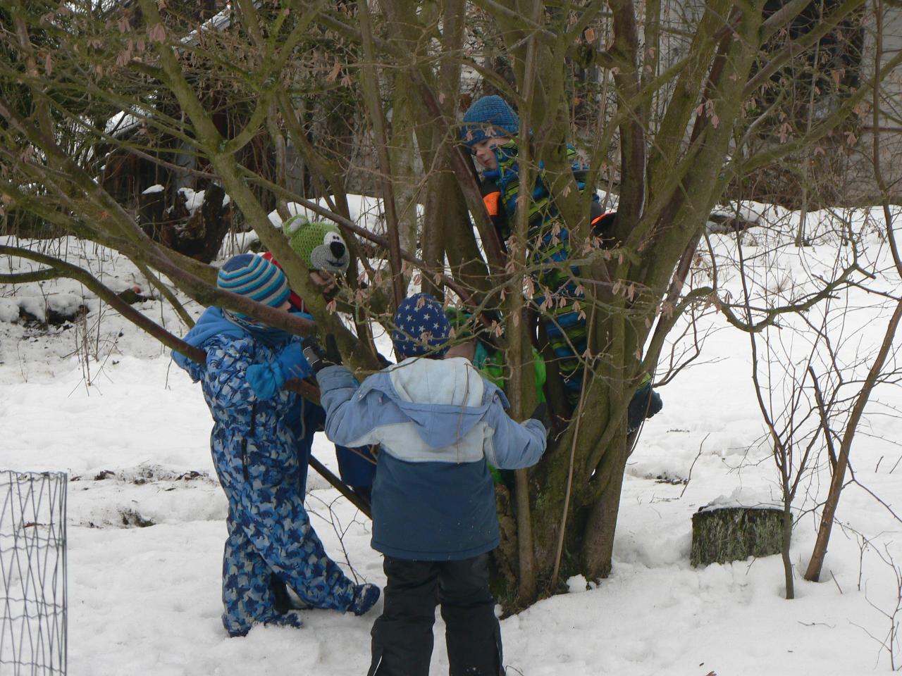 zpívá v jedné ze svých písní kapela Hradišťan. I my jsme s dětmi tento týden poznávali kvality různých ročních období a zkoumali, jaké měsíce do jednotlivých období patří. Kdy kvetou fialky, dozrávají jahody nebo jablíčka? Kdy se můžeme koupat v rybníku a kdy pouštíme draky? Kdy jezdíme na saních a kdy se začínají zelenat stromy? Celým týdnem nás provázela pohádka O dvanácti měsíčkách a na ni také navazovaly další společné aktivity. Poznávali jsme názvy jednotlivých měsíců v roce, přemýšleli, na jaké písmeno který měsíc začíná nebo z kolika slabik se jeho jméno skládá a co je pro něj charakteristické. V rámci hry jsme si také zkoušeli, jak těžké je najít někoho jen po hlase. Jak asi hledala matka Holenu ve sněhové vánici? Také jsme při cestě lesem zjistili, jak se asi šlo Marušce ke dvanácti měsíčkům, když se musela brodit závějemi a sníh a vítr ji šlehal do tváří. Naučili jsme se i novou píseň, ve které je všech 12 měsíců zastoupeno. Děti opět měly šanci v závěru týdne vyzkoušet jednotlivé role a na chvíli se prostřednictvím divadélka přenést na horu, na které plane oheň, kolem kterého sedí dvanáct moudrých mužů. Vyzkoušely, jaké to je stát se na chvíli hodnou a pracovitou Maruškou, zlou macechou, sobeckou a závistivou Holenou nebo moudrým a spravedlivým Lednem. A mezitím jsme opět tvořili, vyráběli, malovali, dováděli na sněhu, sledovali zvířecí stopy v lese nebo zkoumali pevnost ledu.