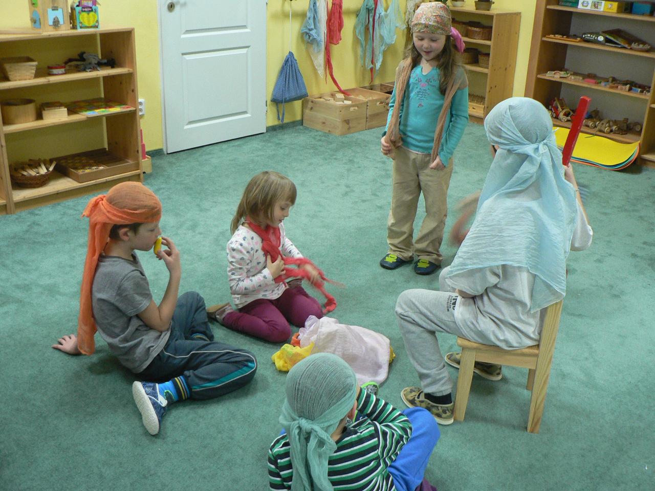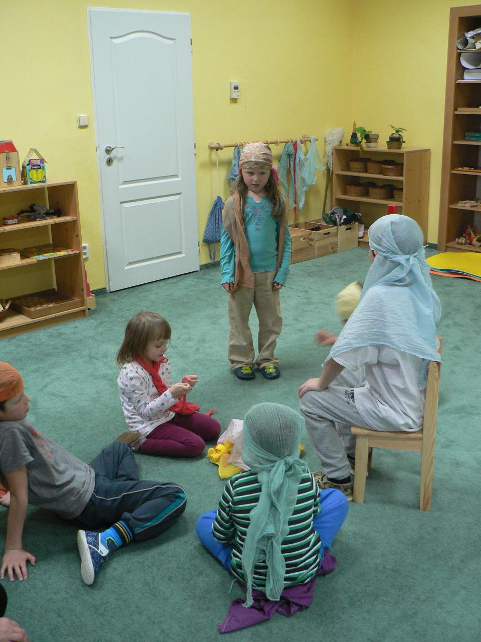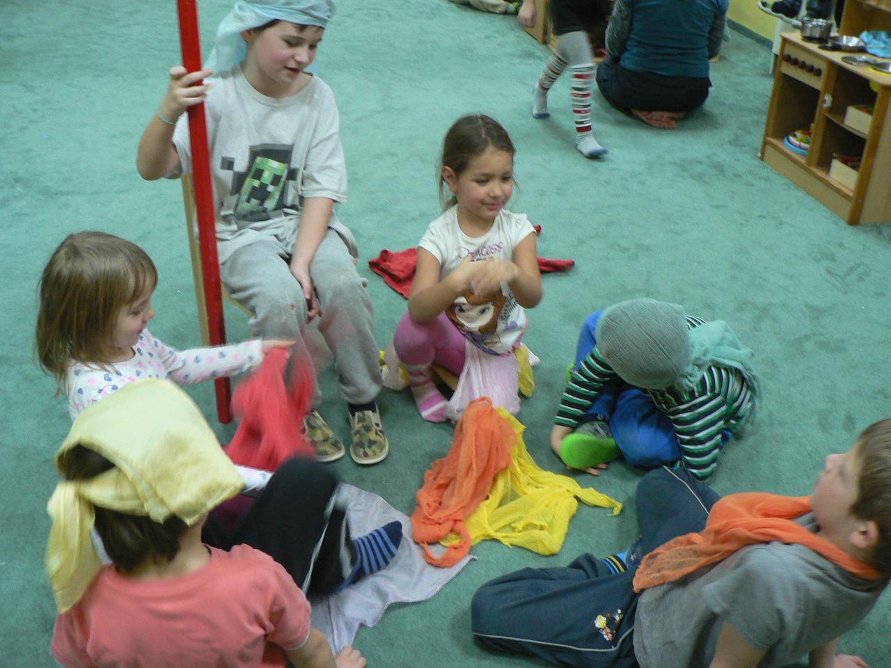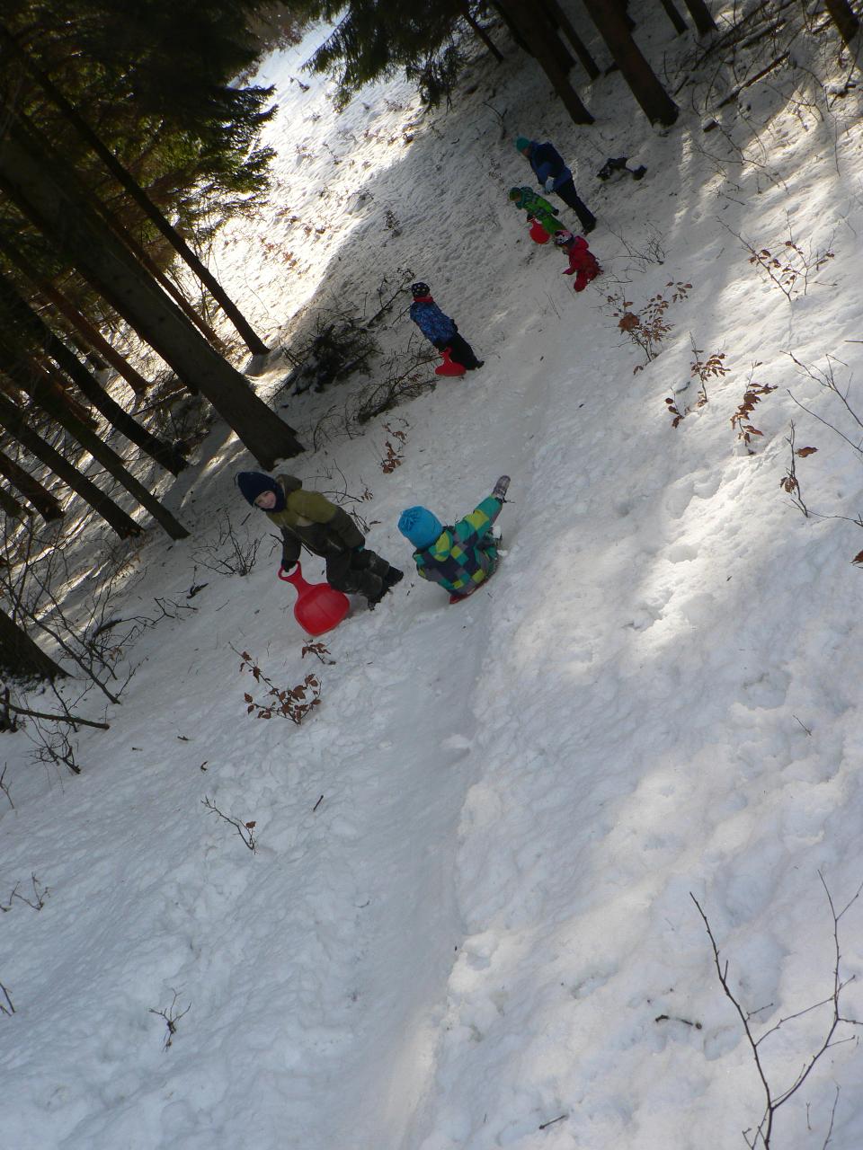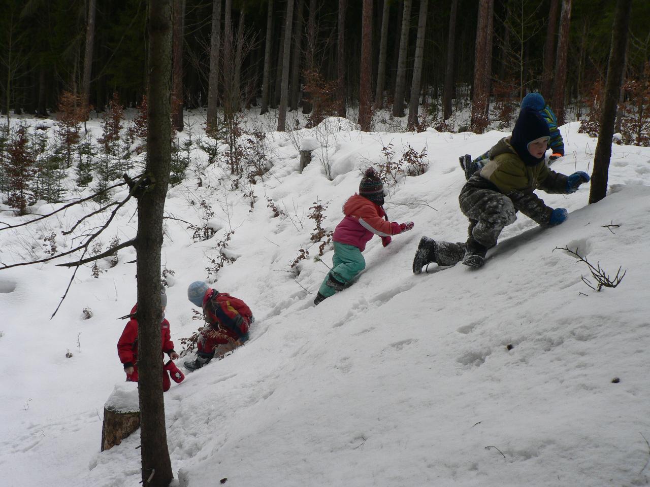zpívá v jedné ze svých písní kapela Hradišťan. I my jsme s dětmi tento týden poznávali kvality různých ročních období a zkoumali, jaké měsíce do jednotlivých období patří. Kdy kvetou fialky, dozrávají jahody nebo jablíčka? Kdy se můžeme koupat v rybníku a kdy pouštíme draky? Kdy jezdíme na saních a kdy se začínají zelenat stromy? Celým týdnem nás provázela pohádka O dvanácti měsíčkách a na ni také navazovaly další společné aktivity. Poznávali jsme názvy jednotlivých měsíců v roce, přemýšleli, na jaké písmeno který měsíc začíná nebo z kolika slabik se jeho jméno skládá a co je pro něj charakteristické. V rámci hry jsme si také zkoušeli, jak těžké je najít někoho jen po hlase. Jak asi hledala matka Holenu ve sněhové vánici? Také jsme při cestě lesem zjistili, jak se asi šlo Marušce ke dvanácti měsíčkům, když se musela brodit závějemi a sníh a vítr ji šlehal do tváří. Naučili jsme se i novou píseň, ve které je všech 12 měsíců zastoupeno. Děti opět měly šanci v závěru týdne vyzkoušet jednotlivé role a na chvíli se prostřednictvím divadélka přenést na horu, na které plane oheň, kolem kterého sedí dvanáct moudrých mužů. Vyzkoušely, jaké to je stát se na chvíli hodnou a pracovitou Maruškou, zlou macechou, sobeckou a závistivou Holenou nebo moudrým a spravedlivým Lednem. A mezitím jsme opět tvořili, vyráběli, malovali, dováděli na sněhu, sledovali zvířecí stopy v lese nebo zkoumali pevnost ledu.