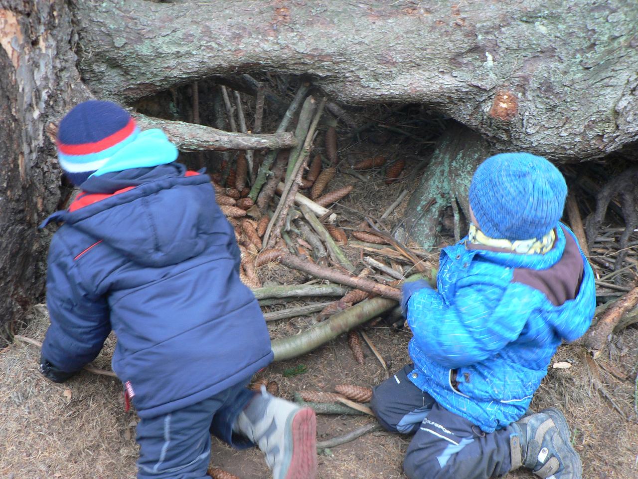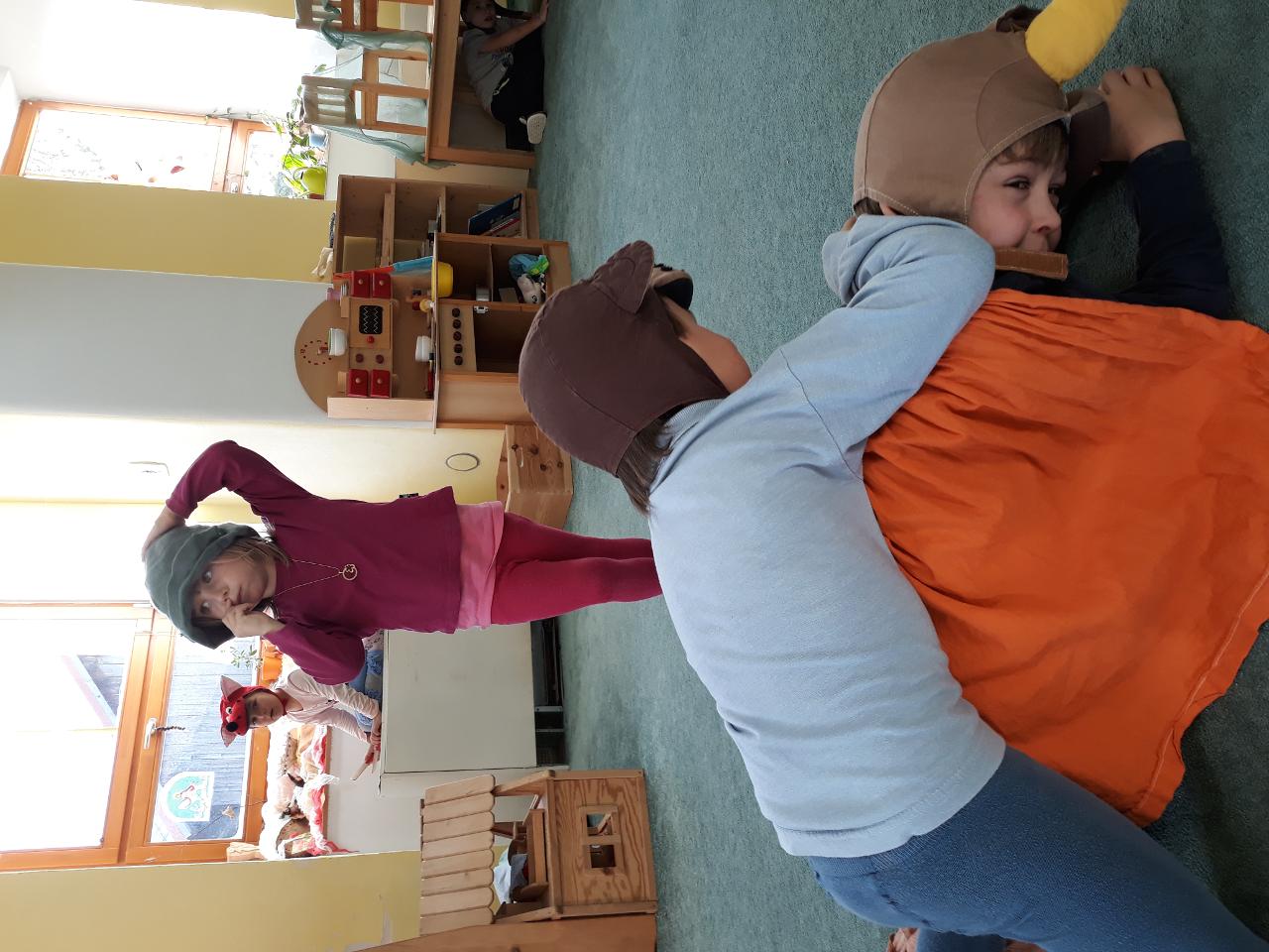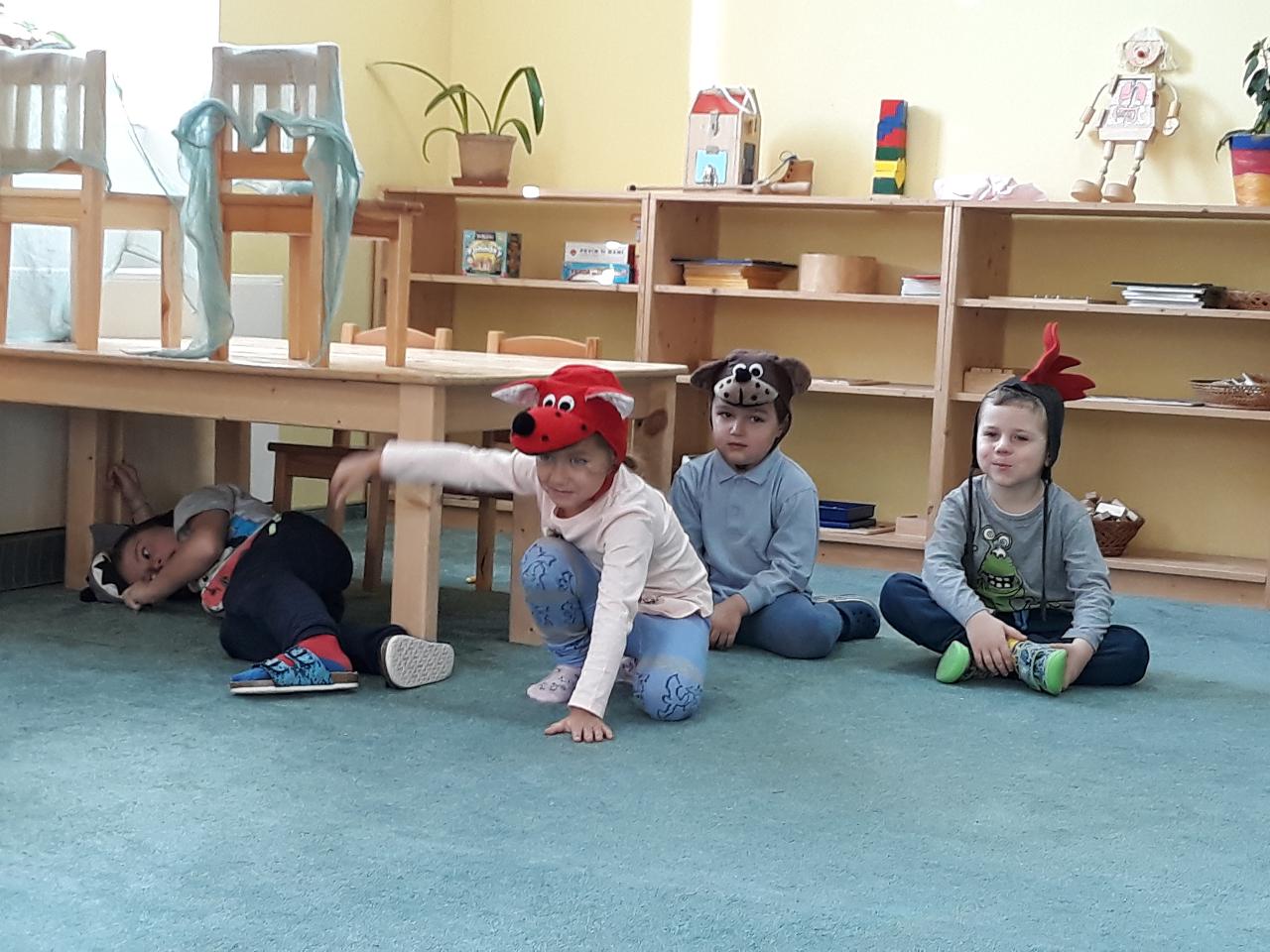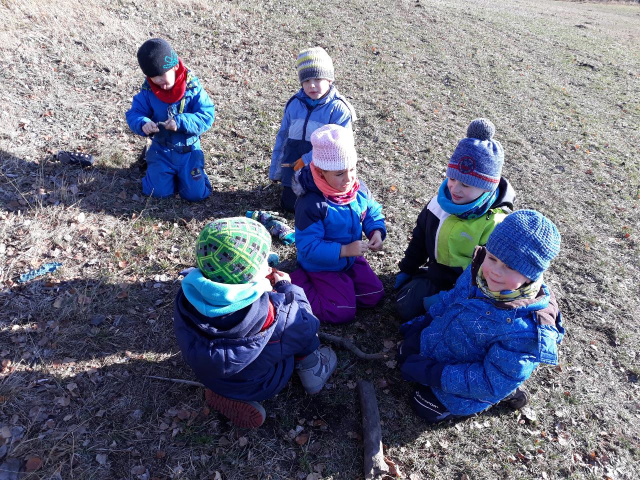Tento týden nás provázela pohádka Medvěd a slaměný býček, pohádka o chytrosti a důvtipu, ve které slaměný býček ulovil nejdříve lišku, poté vlka a nakonec i medvěda a zajistil stařečkovi a stařence dobré živobytí. S dětmi jsme malovali medvědy na trička, hráli na vlky i na lišky a ve čtvrtek jsme si pohádku opět i divadelně ztvárnili. Byl to také týden ve znamení příprav na blížící se advent. S dětmi jsme připravovali větve a chvojí na adventní tvoření a vyráběli adventní věnec do školky. Dvakrát jsme se také potkali se školáky, kteří nám v úterý přišli do školky zahrát divadlo O koblížkovi a také přinesli ukázat hry, které hrají ve škole a v družině. Na oplátku jim děti ukázaly, s čím si nejraději hrají ve školce. V pátek nás pak školáci pozvali na školní „den se zvířátky“, kdy si mohli do školy přinést své mazlíčky a ve třídě díky tomu vznikla malá minizoo. A mezitím jsme opět objevovali a obdivovali krásy přírody, počasí bylo spíše mrazivé, a tak nás čekaly další pokusy s ledem a jiné radovánky.