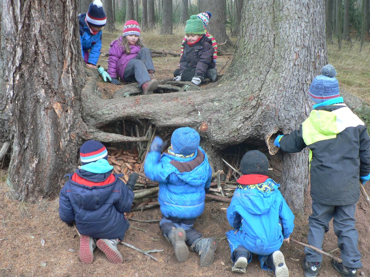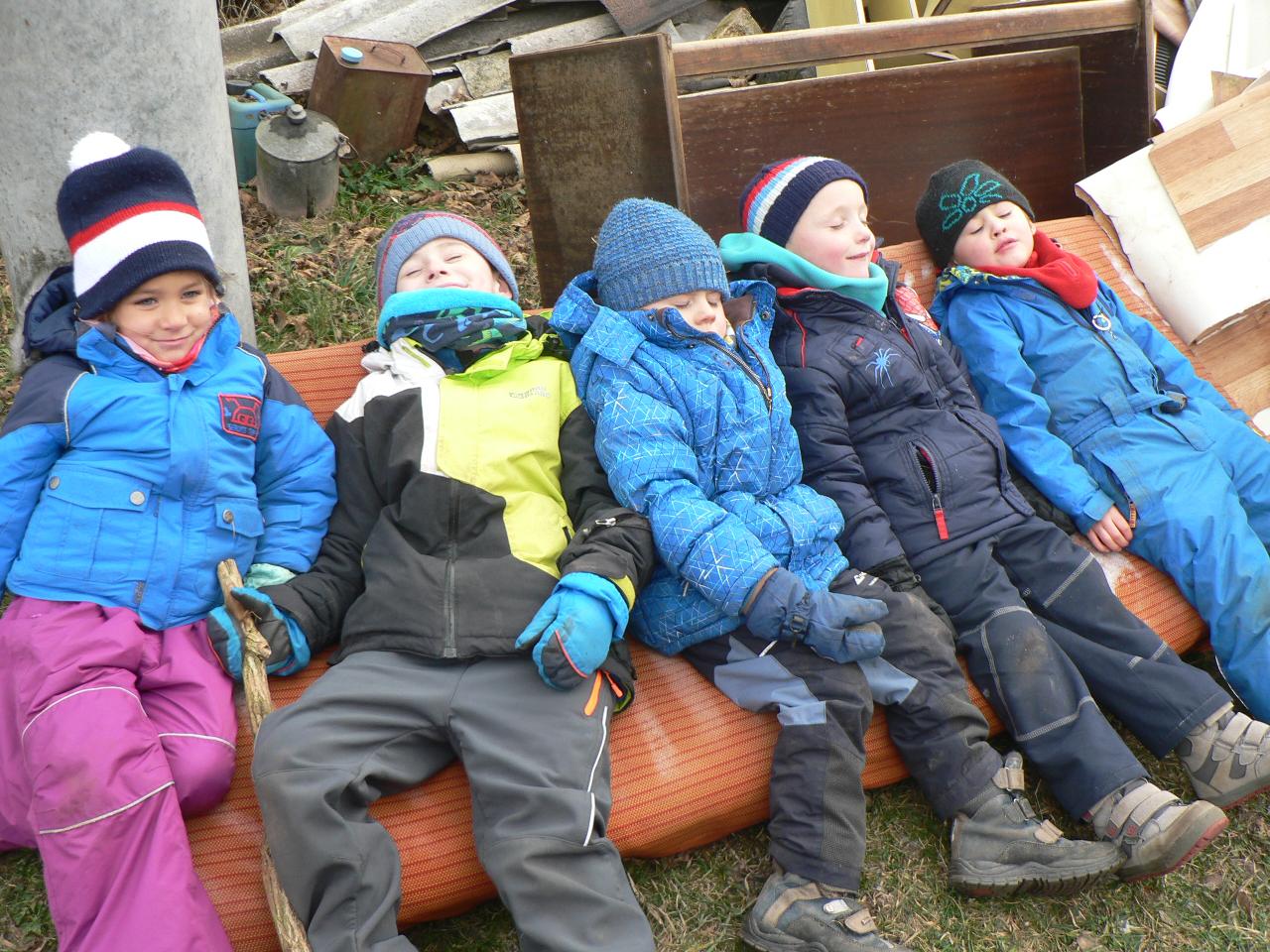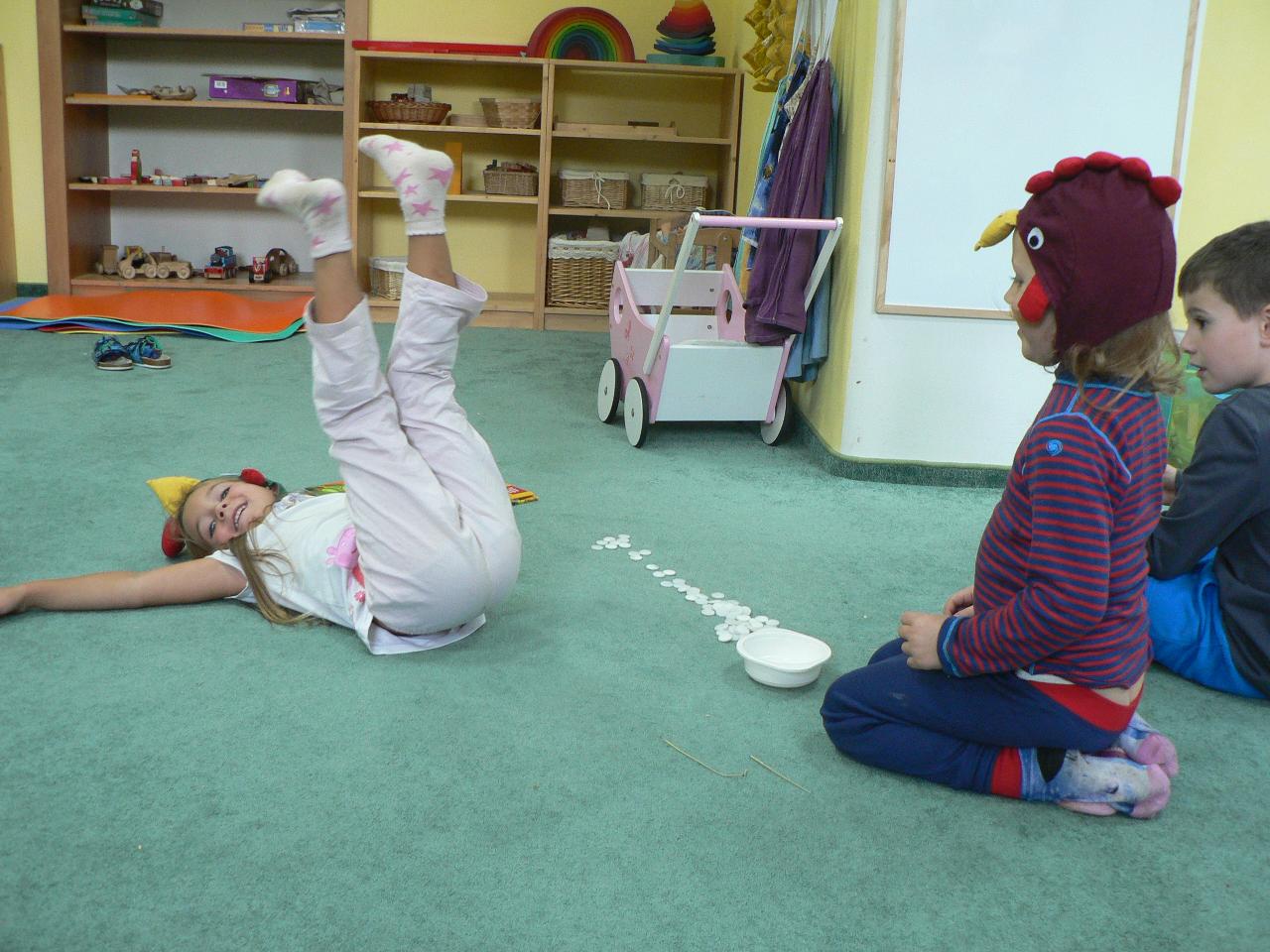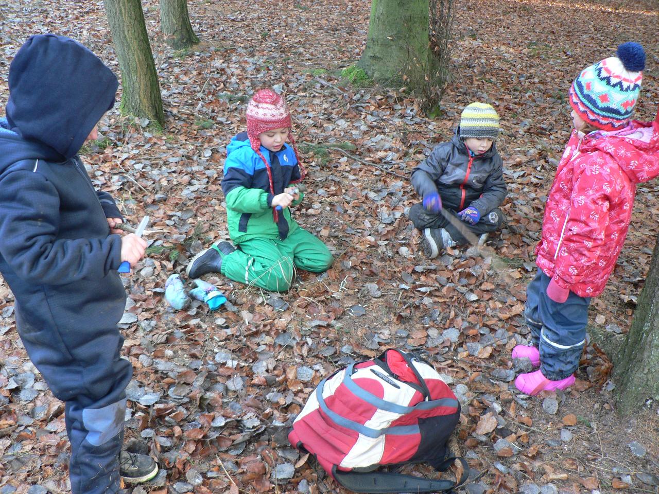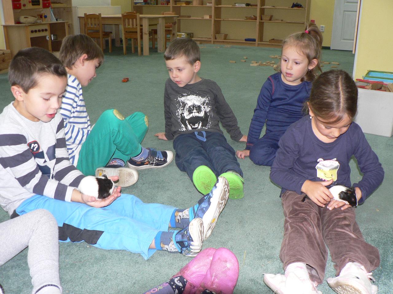 Tento týden nás provázela pohádka Medvěd a slaměný býček, pohádka o chytrosti a důvtipu, ve které slaměný býček ulovil nejdříve lišku, poté vlka a nakonec i medvěda a zajistil stařečkovi a stařence dobré živobytí. S dětmi jsme malovali medvědy na trička, hráli na vlky i na lišky a ve čtvrtek jsme si pohádku opět i divadelně ztvárnili. Byl to také týden ve znamení příprav na blížící se advent. S dětmi jsme připravovali větve a chvojí na adventní tvoření a vyráběli adventní věnec do školky. Dvakrát jsme se také potkali se školáky, kteří nám v úterý přišli do školky zahrát divadlo O koblížkovi a také přinesli ukázat hry, které hrají ve škole a v družině. Na oplátku jim děti ukázaly, s čím si nejraději hrají ve školce. V pátek nás pak školáci pozvali na školní „den se zvířátky“, kdy si mohli do školy přinést své mazlíčky a ve třídě díky tomu vznikla malá minizoo. A mezitím jsme opět objevovali a obdivovali krásy přírody, počasí bylo spíše mrazivé, a tak nás čekaly další pokusy s ledem a jiné radovánky.