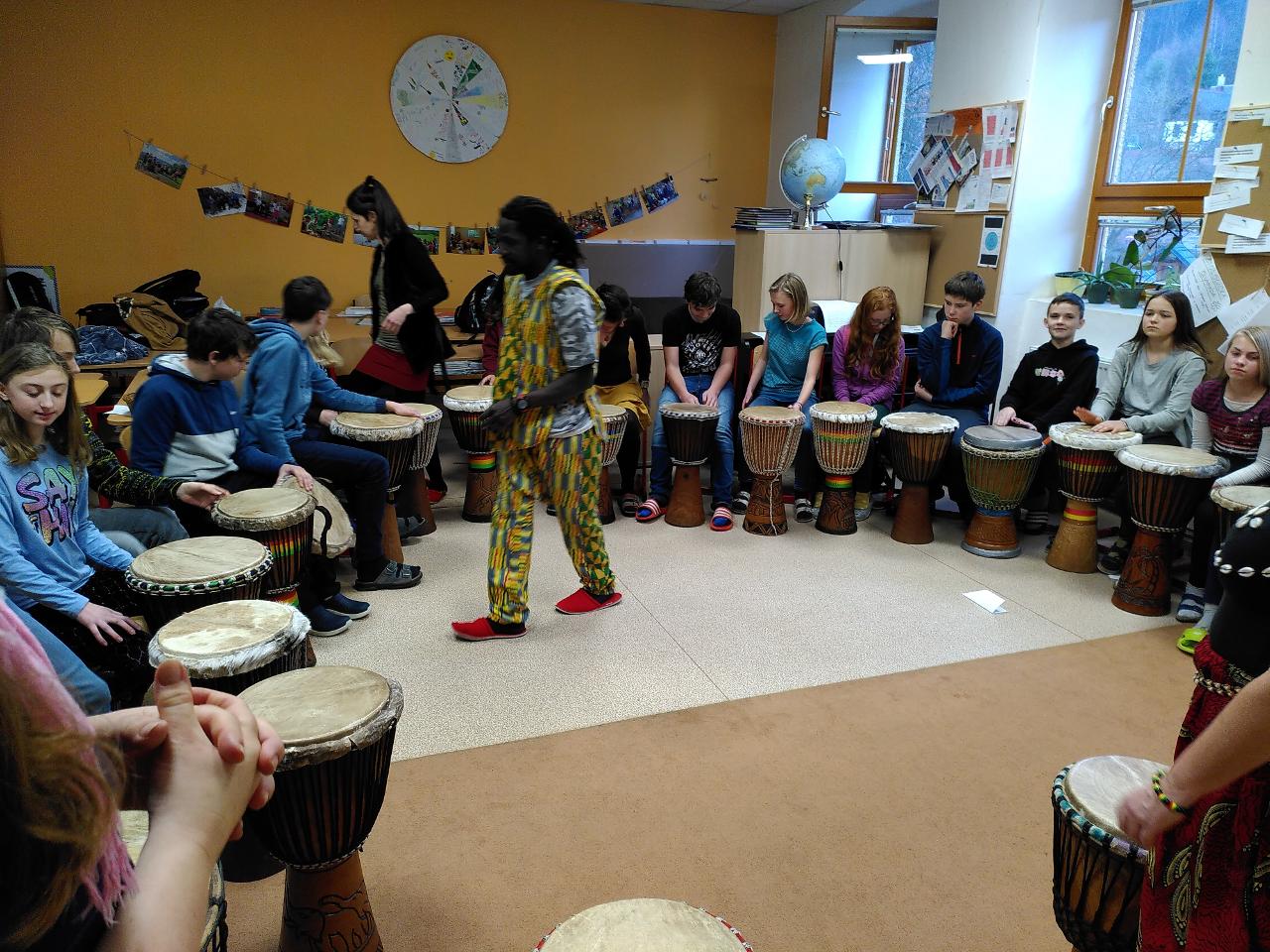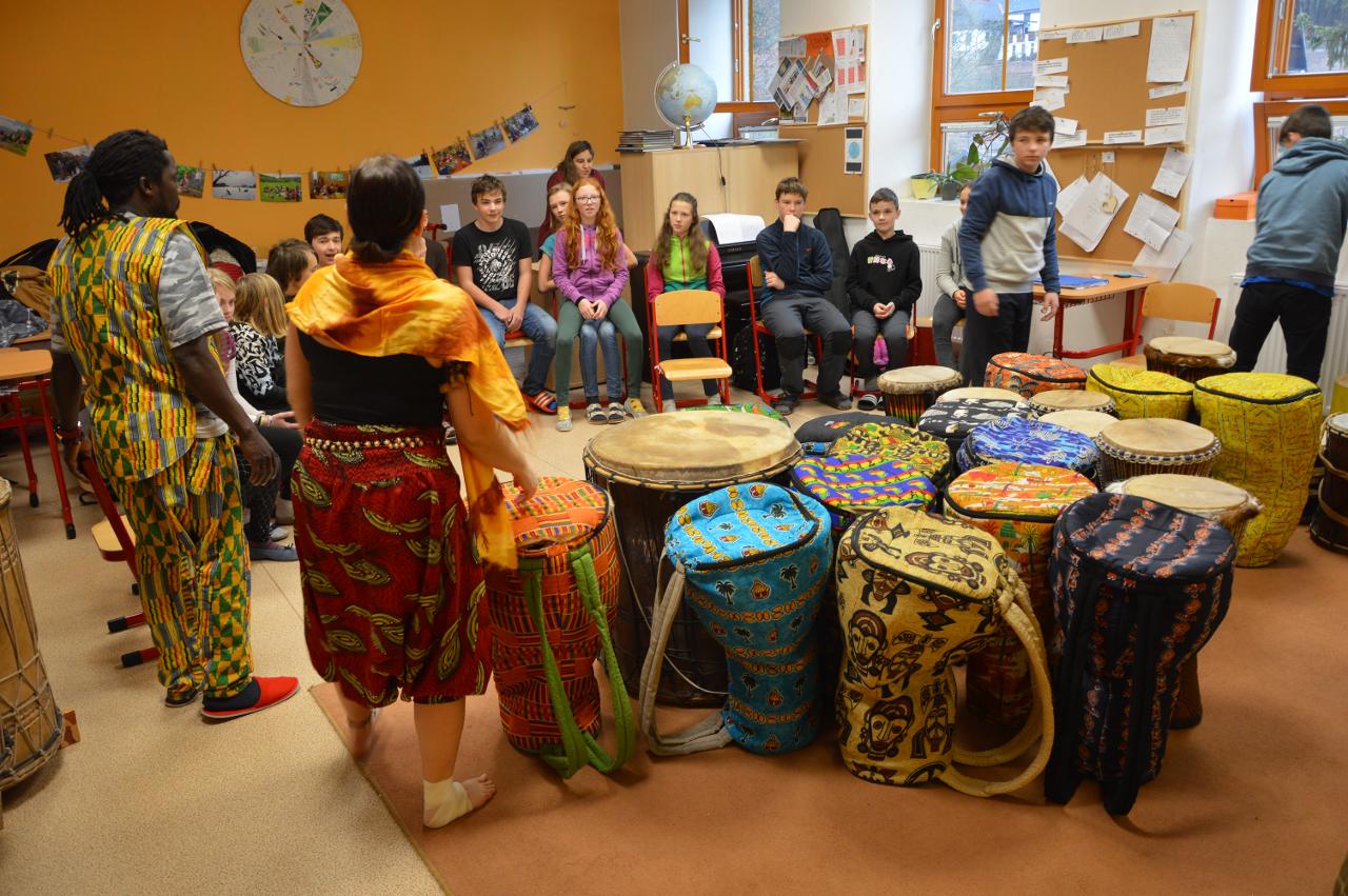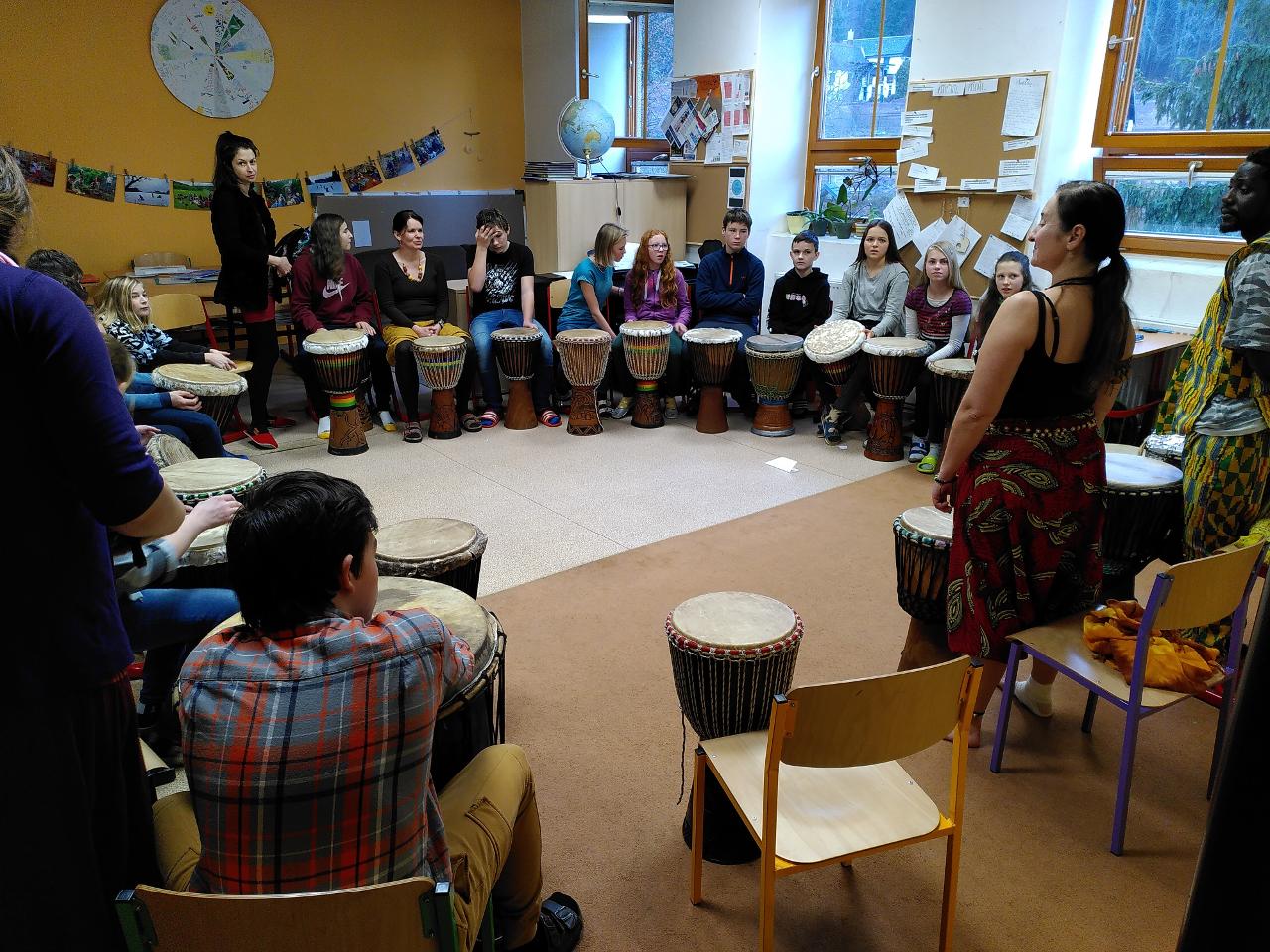 V pátek k nám zavítali afričtí bubeníci a mohli jsme si tak vyzkoušet bubnování na africký buben a také se pohybovat v rytmu bubnování.