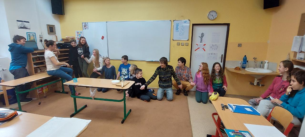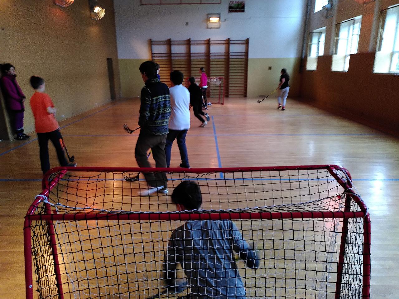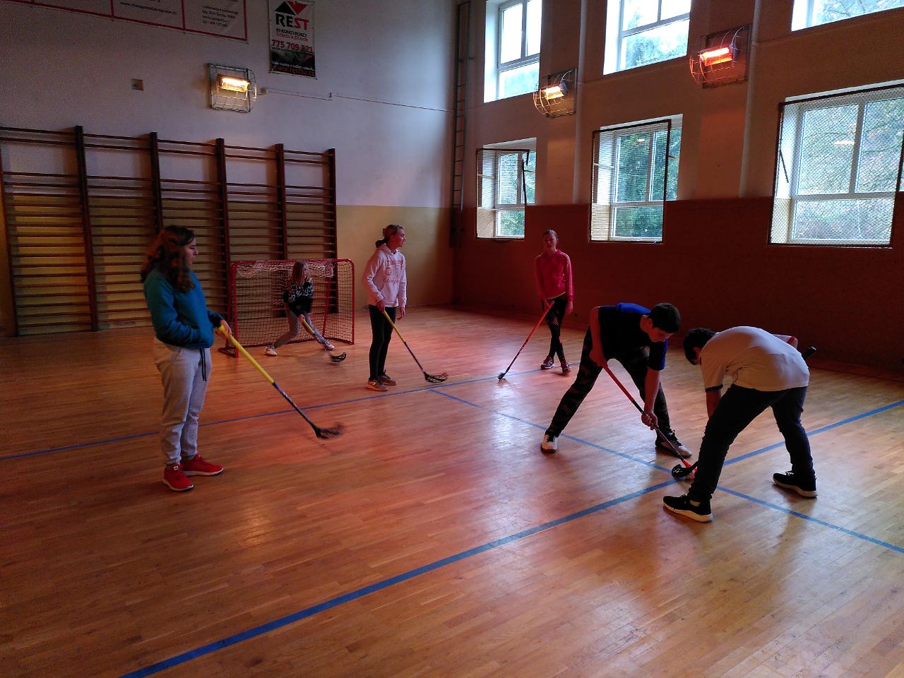 Na tělocviku jsme si společně zahráli florbal.
