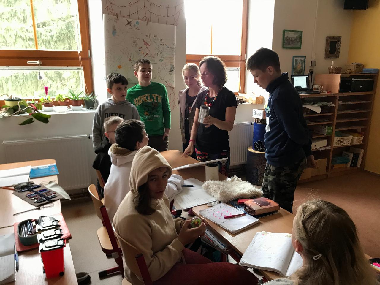 Objevujeme tři pohybové zákony Isaca Newtona. Putujeme po Asii a skládáme vlastní melodii. POkračujeme v zakládání záhonu u školy.