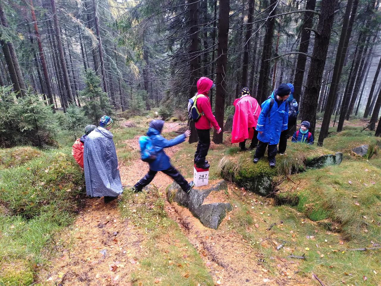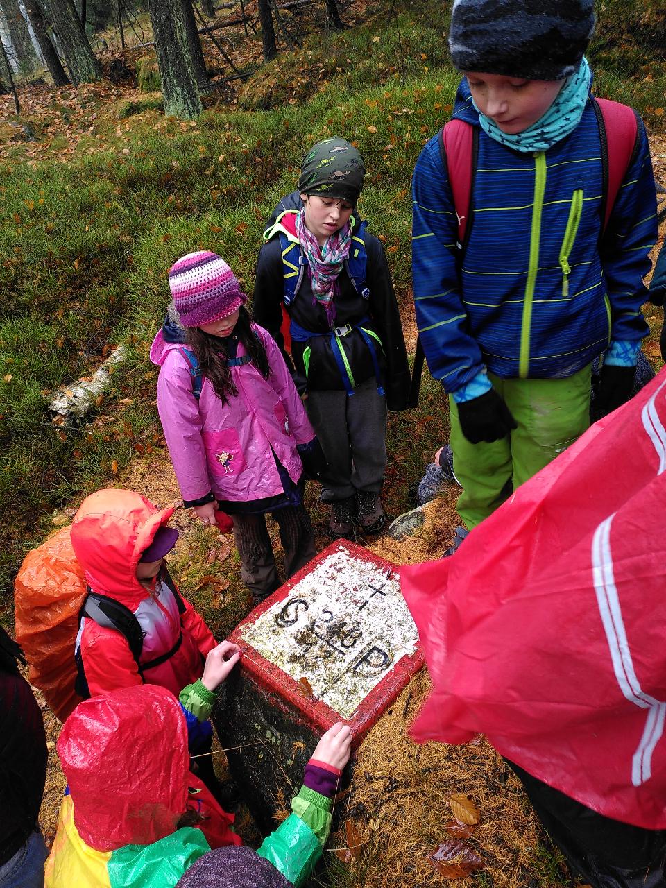 Začátkem listopadu školáci třídy II. pokročili v poznávání Česka. A to nejen ve třídě prostřednictvím map a knih, ale zejména vlastní zkušeností z putování po státní hranici. Venkovní den jsme prožili na česko-polském pomezí. Ve velmi náročných podmínky, kdy fičelo a pršelo jsme v okolí Chvalče putovali od patníku k patníku. Poznali jsme nejen význam nápisů a čar na hraničních kamenech, ale hledali jsme co je na jedné straně hranice jinak než na té druhé, zkoušeli jsme mluvit polsky a povídali jsme si o různých státních hranicích a (ne)možnosti jejich překročení. A jsme rádi, že se můžeme jedním krokem (s občankou) dostat za hranici...