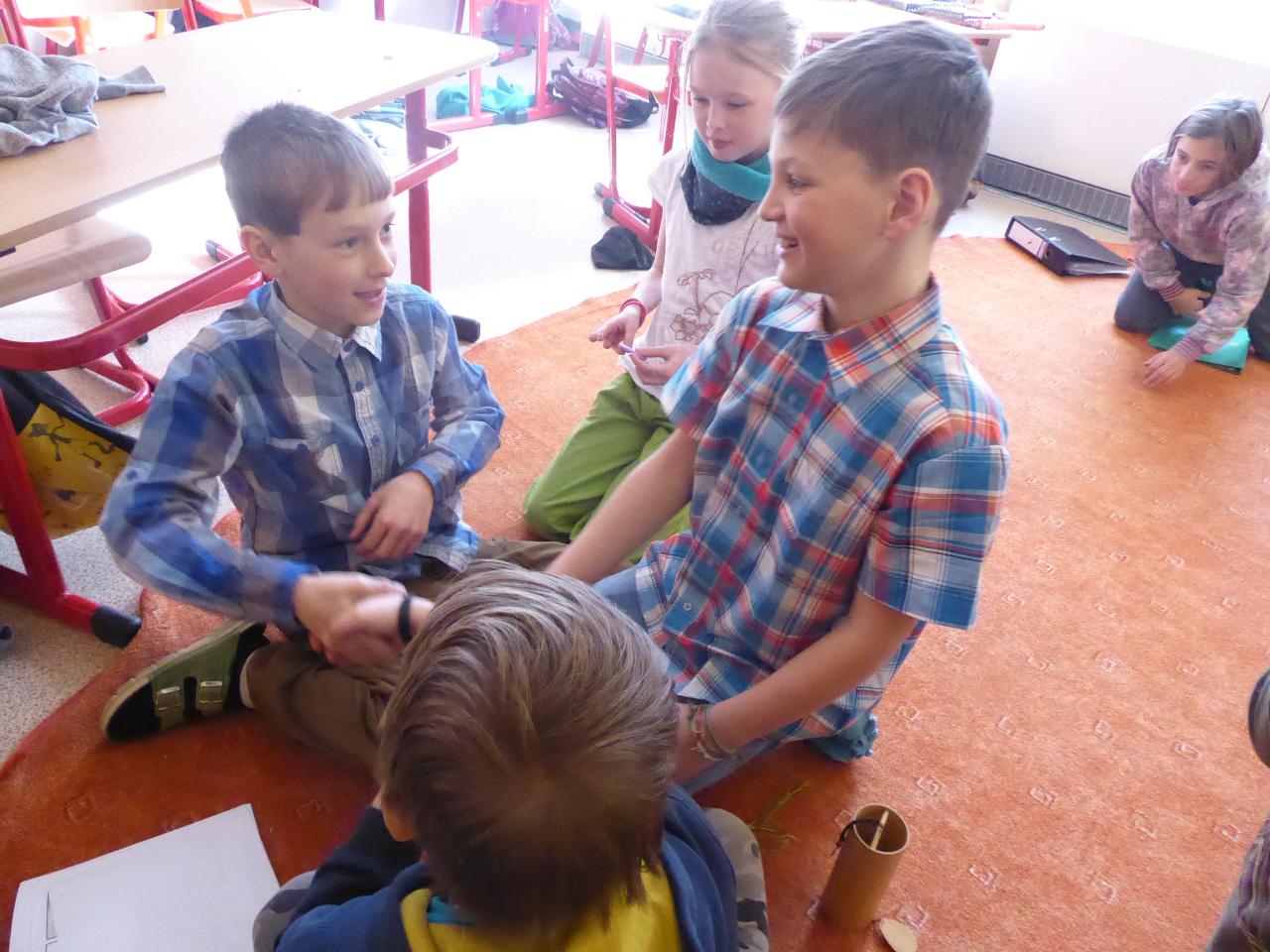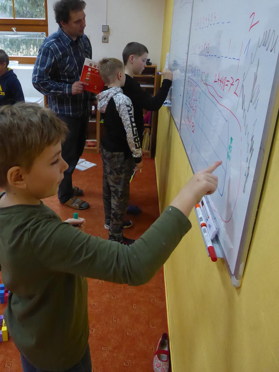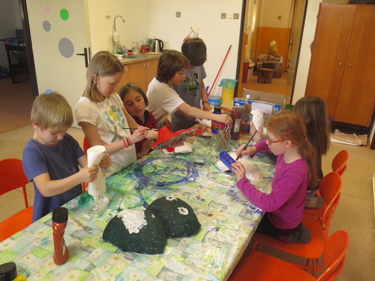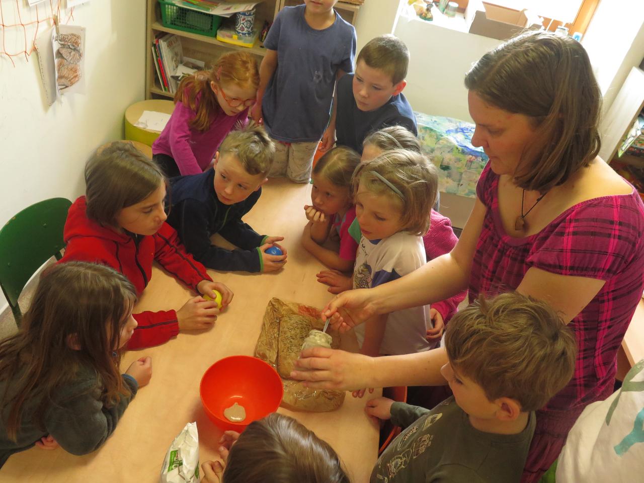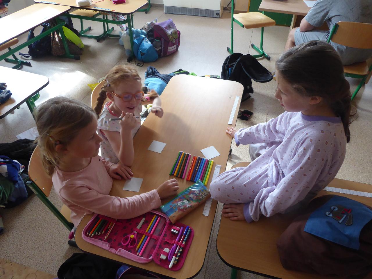 Začátkem března, v úterý 5.3. nás čekala masopustní veselice, na kterou jsme se i ve škole v pondělí a v úterý ještě připravovali. Školáci si dobarvovali masky, společně jsme pak pekli kváskový chléb, plnili maximravenci usmažené koblihy a připravovali taneční a hudební doprovod. V úterý odpoledne pak masopustní radost vypukla. Od mraveniště se vydal průvod vesnicí a jeho součástí byly postavy známé i neznámé.. medvěd, liška, bandita, kobyla, včelky a také radost nebo lesní tvorové. Po setkání s částí místních obyvatel jsme roztančili školní jídelnu a dali si k tomu spoustu dobrot - a pak přišel PŮST. Další část týdne jsme se již začali věnovat zimním sportům. V pátek se školákům plnilo další přání z nápadníčku a tak jsme mohli všichni společně zažít pyžamový den. Hned ráno jsme se převlékli do pyžama a celý den jsme se učili v tomto pro školu velmi netypickém oblečení :-) V rámci příprav na zimní výjezd jsme četli pohádku o Raškovi, kreslili jsme, jaké zimní sporty známe a poznávali jsme ty, které neznáme. Pouštěli jsme si ukázky sportů olympijských i jsme si četli svou oblíbenou knížku. Také pokračovalo nahrávání Markoušovického (mravenčího) rozhlasu moderátory Máťou a Šímou, kteří si odnesli velmi silnou motivaci k tvorbě přímo z hradeckého rozhlasu.