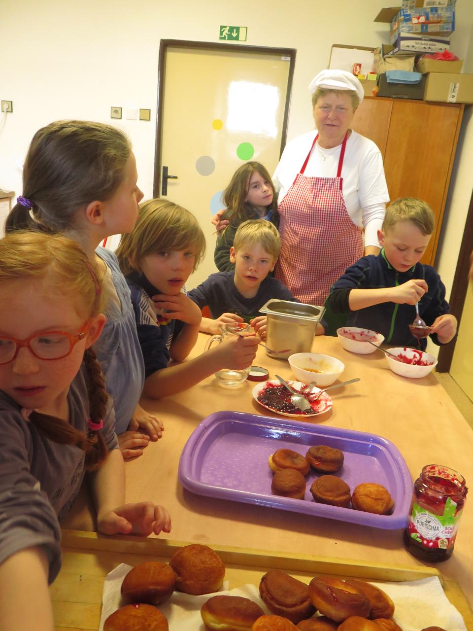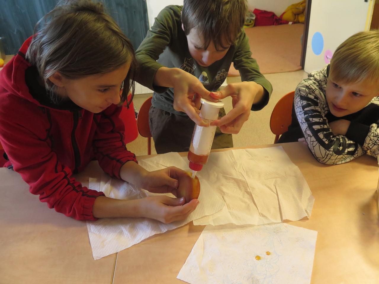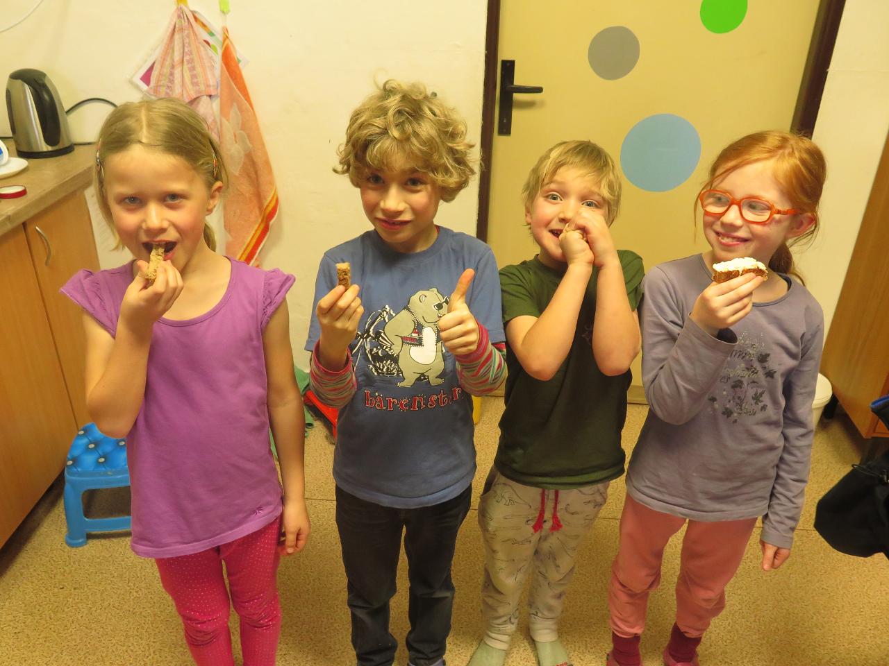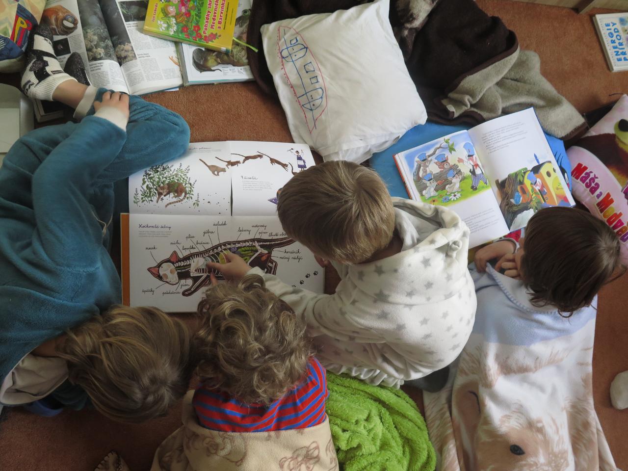 Začátkem března, v úterý 5.3. nás čekala masopustní veselice, na kterou jsme se i ve škole v pondělí a v úterý ještě připravovali. Školáci si dobarvovali masky, společně jsme pak pekli kváskový chléb, plnili maximravenci usmažené koblihy a připravovali taneční a hudební doprovod. V úterý odpoledne pak masopustní radost vypukla. Od mraveniště se vydal průvod vesnicí a jeho součástí byly postavy známé i neznámé.. medvěd, liška, bandita, kobyla, včelky a také radost nebo lesní tvorové. Po setkání s částí místních obyvatel jsme roztančili školní jídelnu a dali si k tomu spoustu dobrot - a pak přišel PŮST. Další část týdne jsme se již začali věnovat zimním sportům. V pátek se školákům plnilo další přání z nápadníčku a tak jsme mohli všichni společně zažít pyžamový den. Hned ráno jsme se převlékli do pyžama a celý den jsme se učili v tomto pro školu velmi netypickém oblečení :-) V rámci příprav na zimní výjezd jsme četli pohádku o Raškovi, kreslili jsme, jaké zimní sporty známe a poznávali jsme ty, které neznáme. Pouštěli jsme si ukázky sportů olympijských i jsme si četli svou oblíbenou knížku. Také pokračovalo nahrávání Markoušovického (mravenčího) rozhlasu moderátory Máťou a Šímou, kteří si odnesli velmi silnou motivaci k tvorbě přímo z hradeckého rozhlasu.