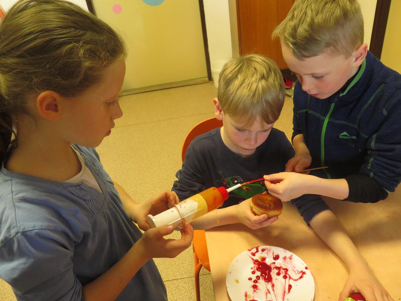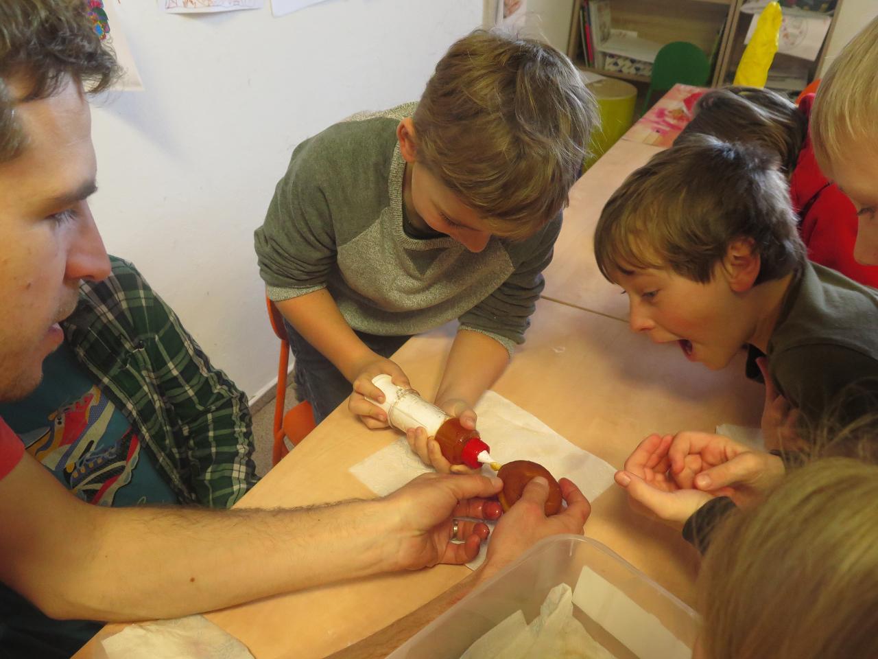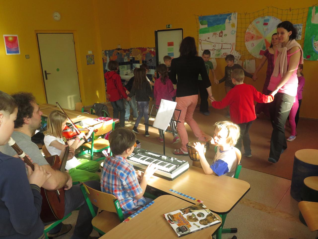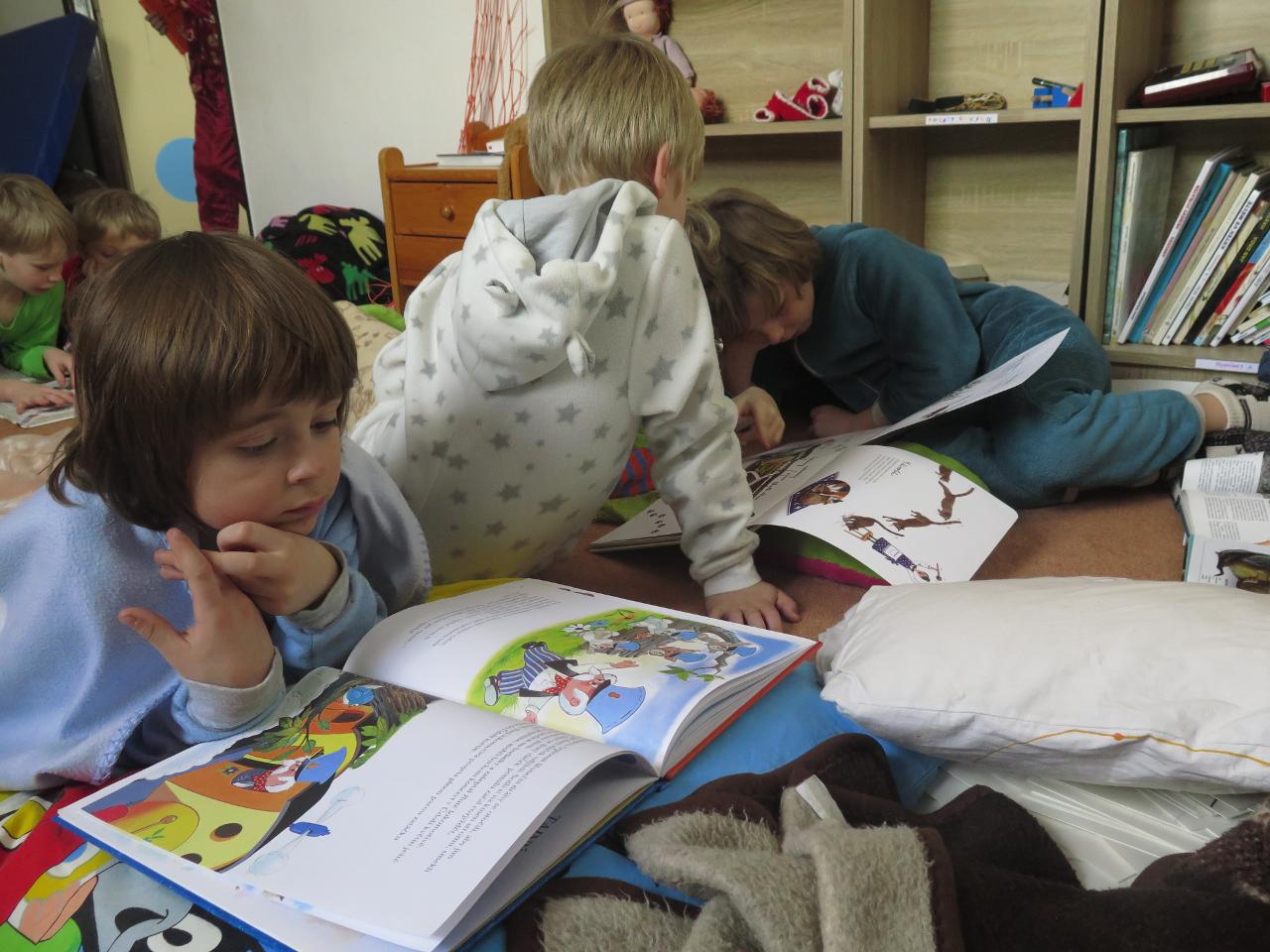 Začátkem března, v úterý 5.3. nás čekala masopustní veselice, na kterou jsme se i ve škole v pondělí a v úterý ještě připravovali. Školáci si dobarvovali masky, společně jsme pak pekli kváskový chléb, plnili maximravenci usmažené koblihy a připravovali taneční a hudební doprovod. V úterý odpoledne pak masopustní radost vypukla. Od mraveniště se vydal průvod vesnicí a jeho součástí byly postavy známé i neznámé.. medvěd, liška, bandita, kobyla, včelky a také radost nebo lesní tvorové. Po setkání s částí místních obyvatel jsme roztančili školní jídelnu a dali si k tomu spoustu dobrot - a pak přišel PŮST. Další část týdne jsme se již začali věnovat zimním sportům. V pátek se školákům plnilo další přání z nápadníčku a tak jsme mohli všichni společně zažít pyžamový den. Hned ráno jsme se převlékli do pyžama a celý den jsme se učili v tomto pro školu velmi netypickém oblečení :-) V rámci příprav na zimní výjezd jsme četli pohádku o Raškovi, kreslili jsme, jaké zimní sporty známe a poznávali jsme ty, které neznáme. Pouštěli jsme si ukázky sportů olympijských i jsme si četli svou oblíbenou knížku. Také pokračovalo nahrávání Markoušovického (mravenčího) rozhlasu moderátory Máťou a Šímou, kteří si odnesli velmi silnou motivaci k tvorbě přímo z hradeckého rozhlasu.