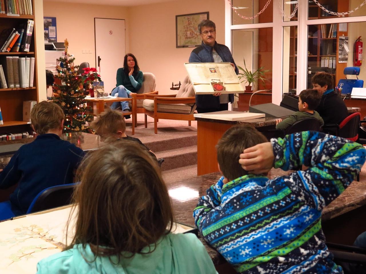 Vánoce se nám blíží, ve škole jsme společně zapálili druhou adventní svíci a čas během týdne jsme mimo jiné věnovali přípravě společného mravenčího divadla Mariin oslík a výrobkům na sobotní rozsvícení vánočního stromu na návsi v Markoušovicích. Díky Kláře jsme si každý vyrobili vlastní linoryt od vyřezání obrazce do lina až po otištění barvy. V angličtině jsme tvořili otázky a v češtině jsme posilovali znalost vyjmenovaných slov. Páteční ráno jsme se vypravili bádat do Státního okresního archivu v Trutnově, kde jsme díky panu řediteli Reilovi a jeho kolegyni poznali, co to archiv je, co se v něm nachází, mohli jsme do rukou vzít typář, zkusit si přečíst kurent nebo rozluštit letopočet ukrytý v nápisu na božích mukách římskými číslicemi. Týden nám zakončilo plavání a následně i sobotní rozsvícení stromu, kde školáci účinkovali i při hudebním vystoupení v kostele, tak i prodávali vlastní výrobky u stánku na návsi. Matematika se hodila neb počty byly vysoké...