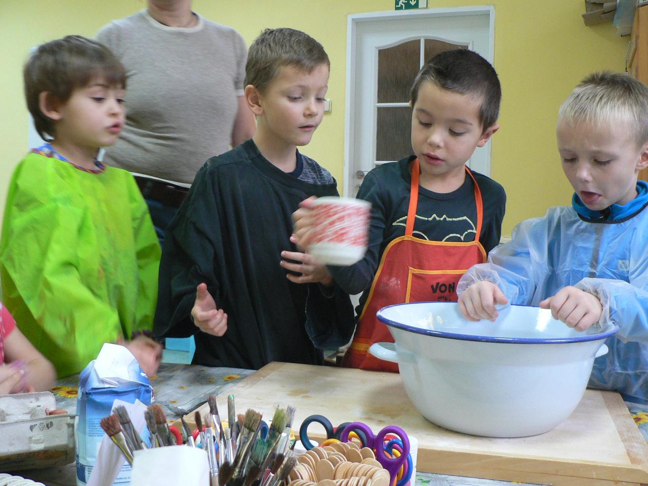 Tento týden jsme zahájili adventní spirálou, společným rituálem, který vede děti na cestu za vnitřním světlem. Celé pondělí bylo ve znamení příprav na nadcházející odpolední slavnost. Děti si pak vpodvečer mohly společně s rodiči prožít tajemnou atmosféru ticha, světla a očekávání jen za světel svíček a zpěvu adventních písní. V doprovodu anděla pak procházely spirálou z chvojí pro své vlastní světélko. Dalšími dny už nás pak provázela legenda o svatém Mikuláši a dobrých skutcích, které ve svém životě vykonal. Připomněli jsme si tak jeho štědrost, dobrotu a laskavost. A protože Mikuláše na jeho cestách provází i čertíci a andělé, dostali se nám i oni do školky v různých podobách. Vyráběli jsme z papíru, malovali, omalovávali, vystřihovali a dokonce i pekli. Figurky Mikuláše, čerta nebo anděla z perníkového těsta si pak děti odnášely domů. I když pravda, někteří je rovnou jedli a domů možná ani nedovezli :-) Mezitím jsme si také užívali spoustu venkovní zábavy s vodou i ledem.