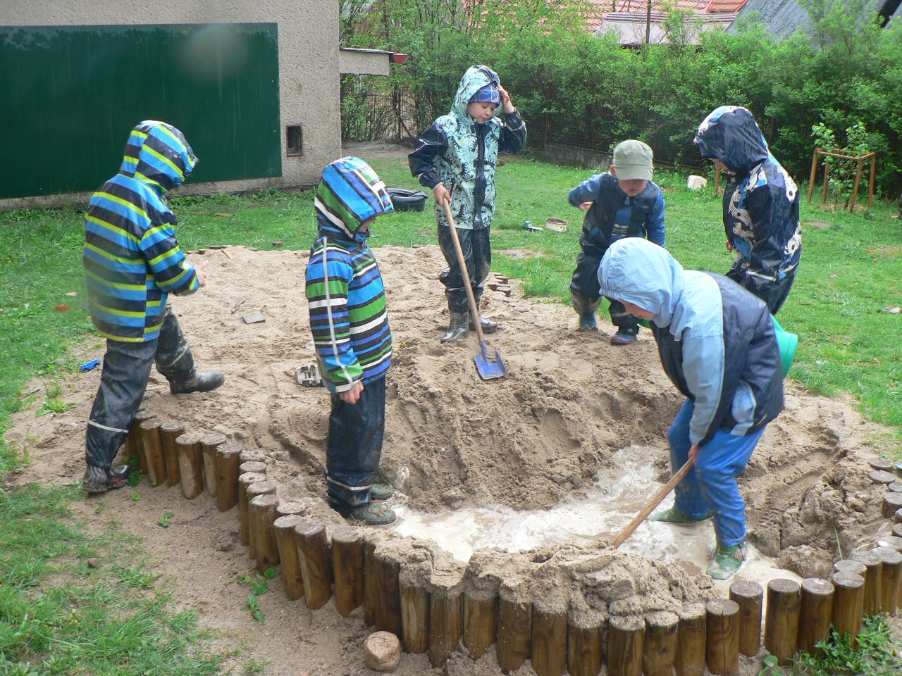 Nastává období, kdy začíná „světlá“ polovina roku, příroda je probuzená a vitální, přichází čas lásky a radostného života. Aby se mohlo zrodit nové, je však třeba nejdříve zničit staré. S dětmi jsme si povídali o tom, proč se o filipojakubské noci pálí ohně a jaké zvyky a tradice se pojí s prvním májem. Vyprávěli jsme si pohádku O čarodějnici Bimbule, u které zvítězilo její dobré srdce. Děti si vyráběli své vlastní čarodějnice, které pak mohly spálit v ohni. Podobně jako Bimbula v pohádce jsme i my při našich toulkách jarní přírodou nacházeli, poznávali a někdy i ochutnávali různé druhy bylinek. Naučili jsme se nové říkanky a písničky a zahráli si oblíbené hry. Počasí bylo hodně deštivé, což u dětí budilo velké nadšení, a tak s ohromnou chutí skákaly v kalužích, na pískovišti tvořily hrady a vodní příkopy a vodou řádně prolévaly celou zahradu a někdy i sebe samotné :)