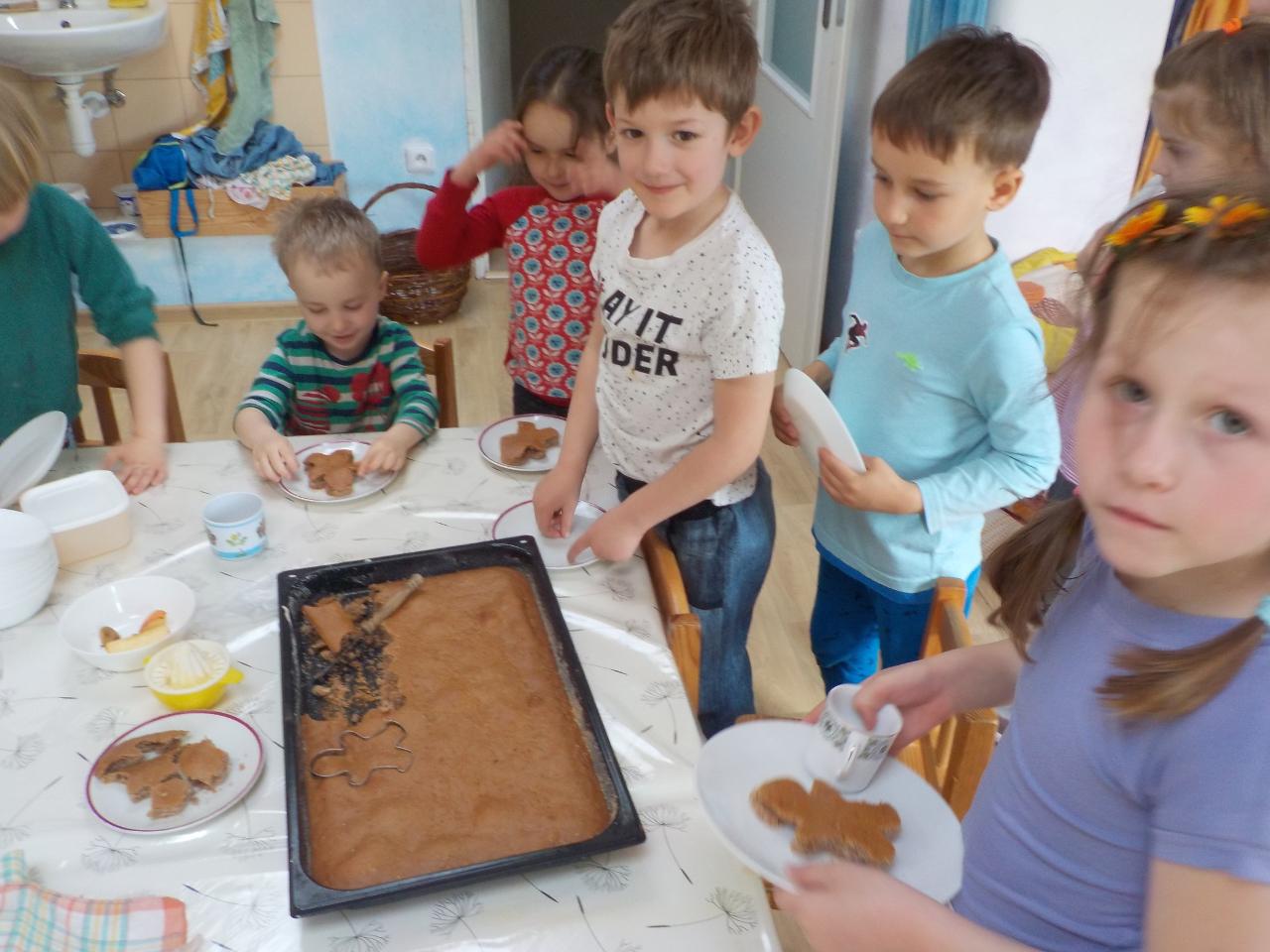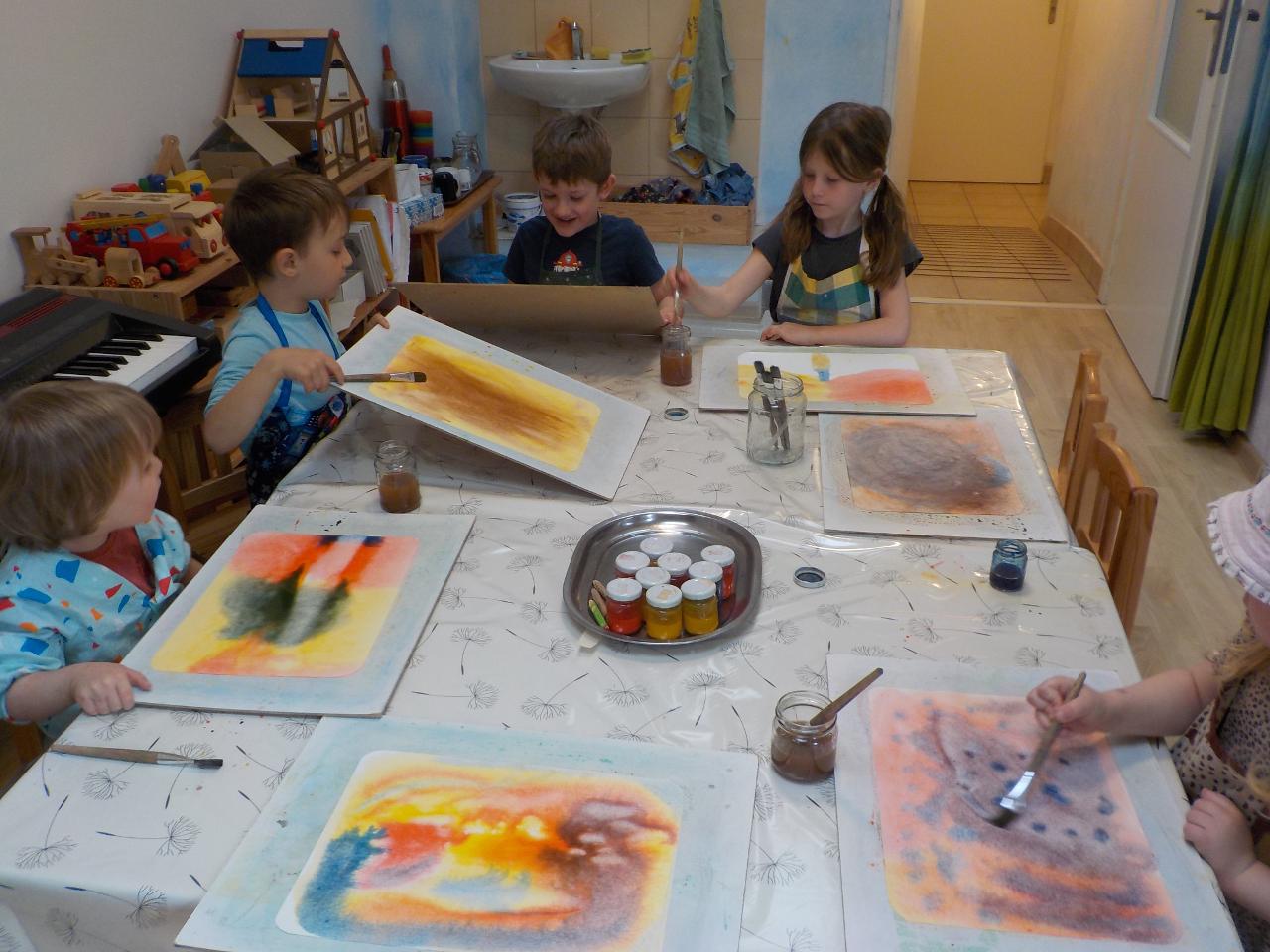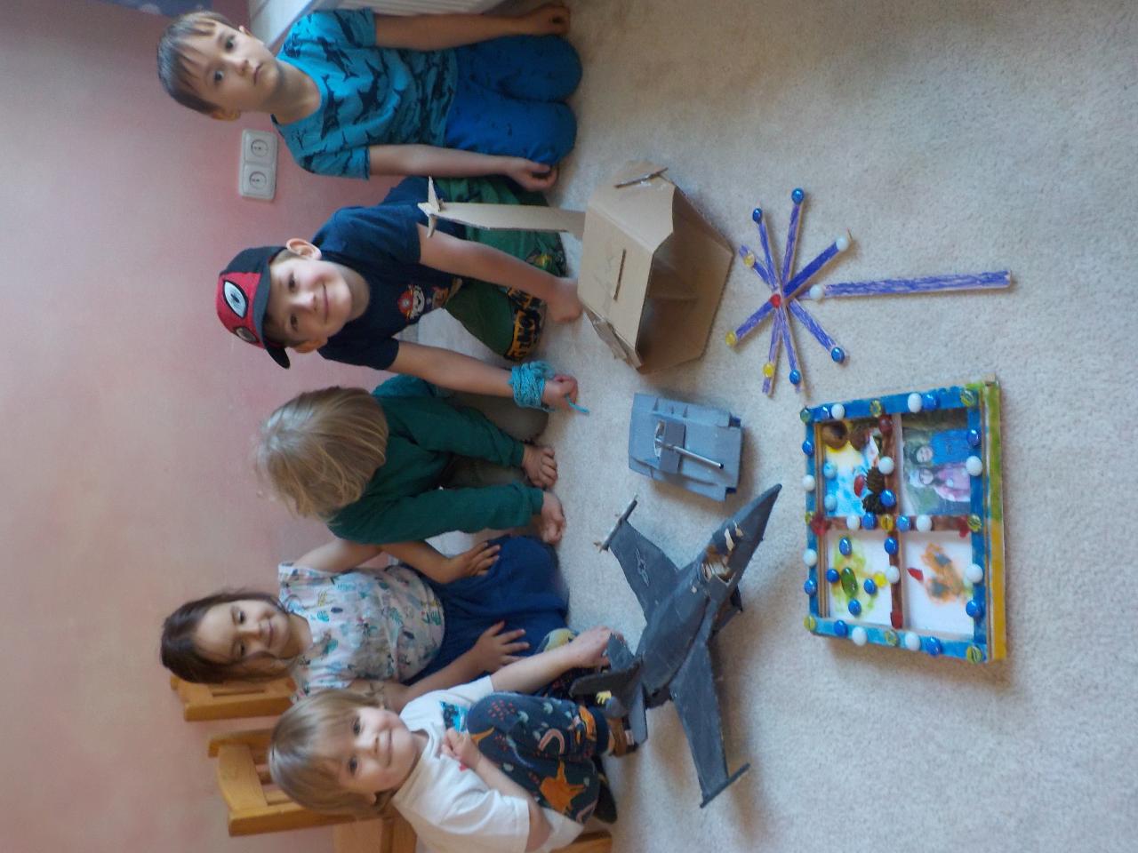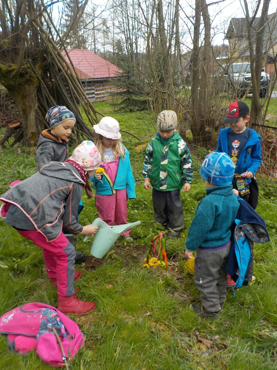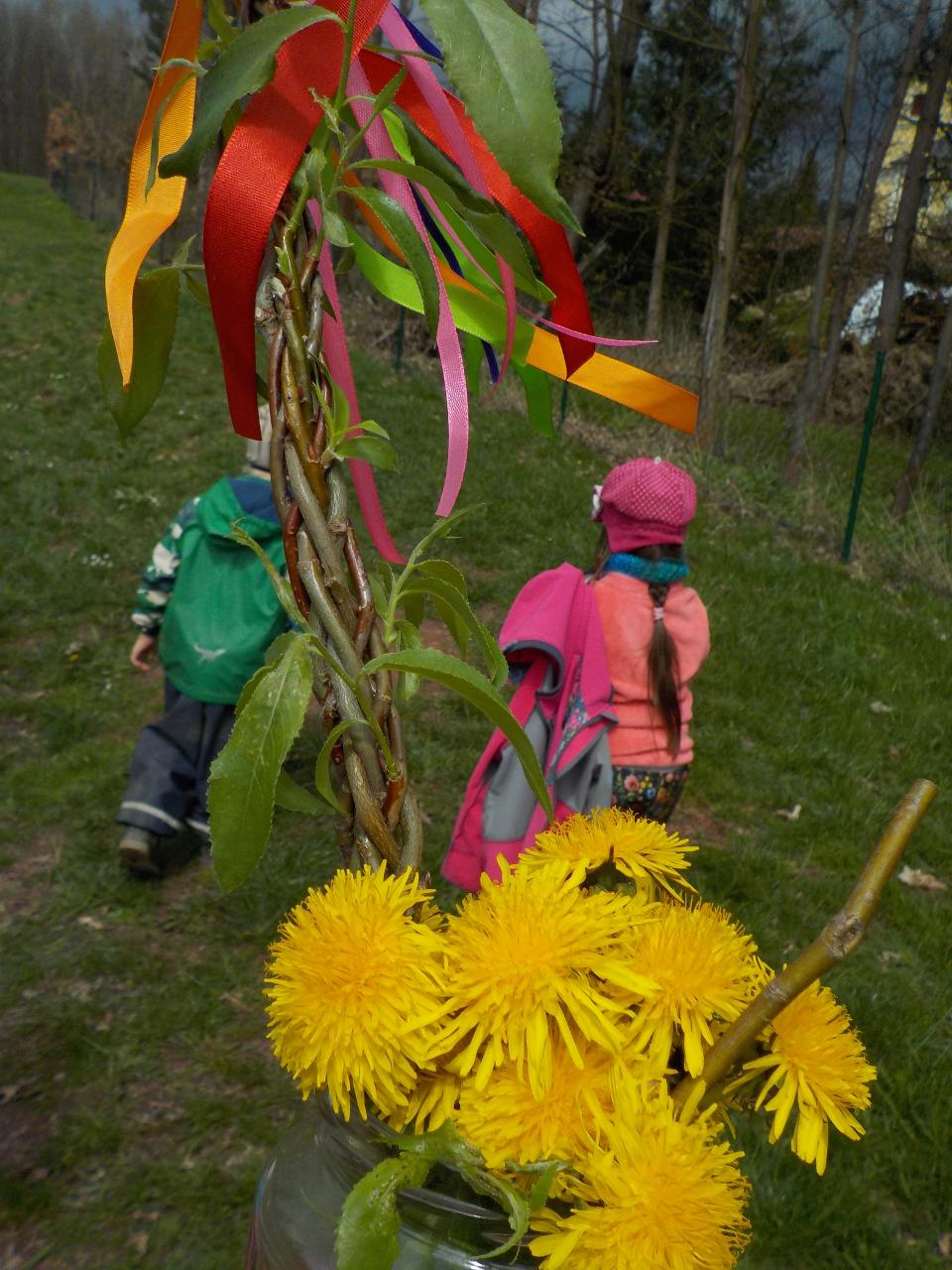 S každým dnem jsou tu naše pravidelné činnosti - malování a kouzlení s barvami - tentokrát jsme hledali hnědou. Při modelování i pečení se nám stala předlohou perníková chaloupka. Ve školce se stále častěji objevují zdatní modeláři - uspořádali jsme si výstavu pro inspiraci. Téma čarodějnic bylo všude kolem, a tak nešlo než si také něco dalšího vykouzlit - vyráběli jsme lektvary z léčivých bylin, proplétali jsme se pavučinami a na stole nám úžasně vybublalo cosi tajemného! A co teprve ten čarovný čas venku - jen vysvitlo slunko, první pampelišky a sedmikrásky ukázaly své hlavičky a děvčata neodolala a už trhala a zdobila se. Kluci se kochali velkými stroji. Společně jsme pak do země vsadili naši velikonoční pomlázku, která měla kořínků pro další život dost a dost - přejeme ji, ať se jí v zemi také líbí.