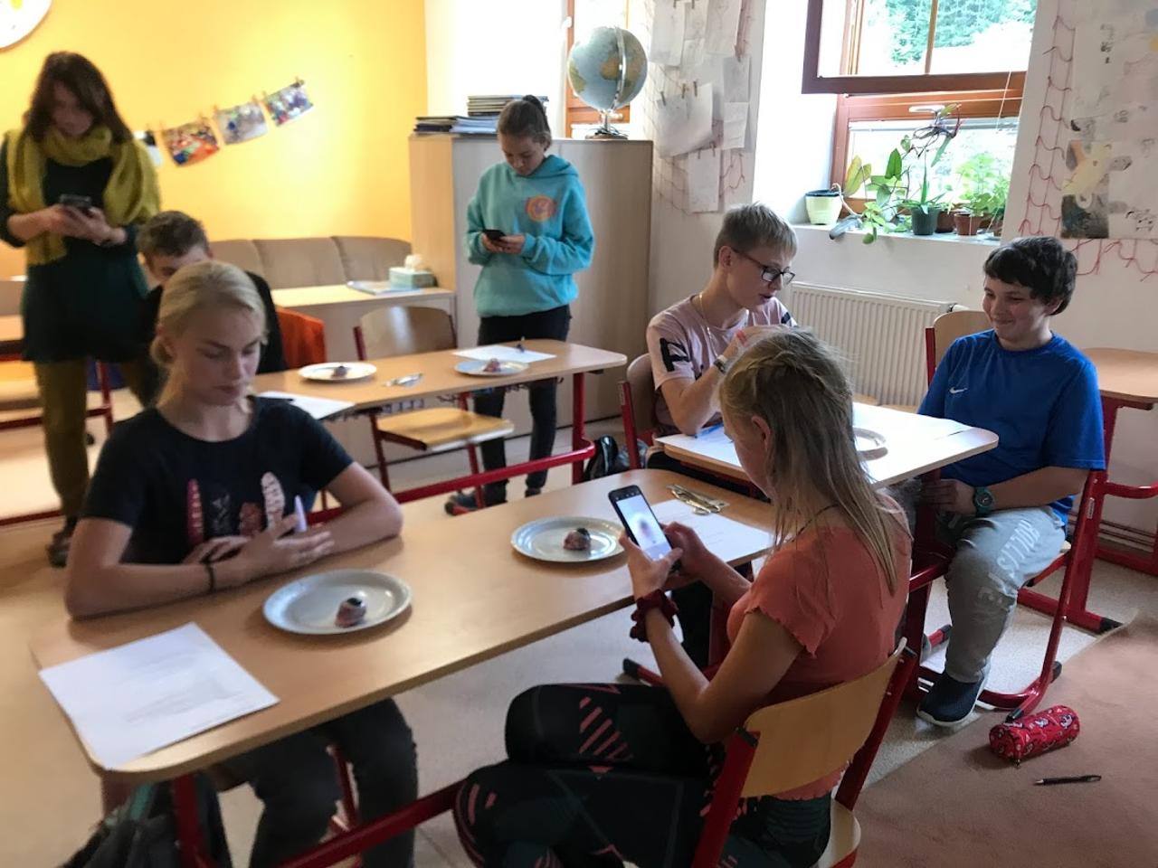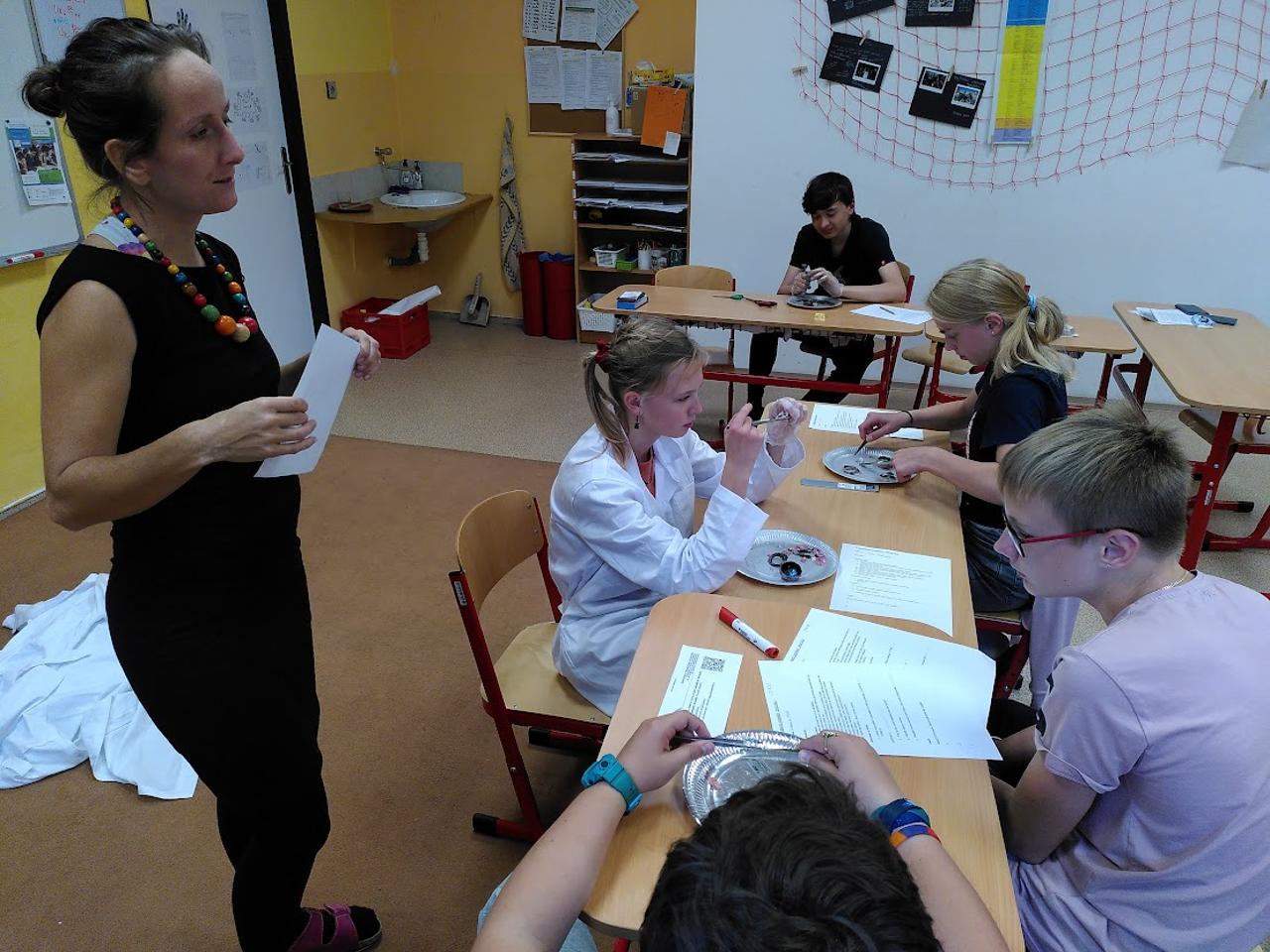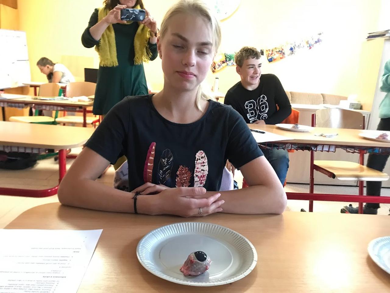 V přírodopise třída VII. a VIII. určovala a oddělovala jednotlivé části kravského oka a tvořila ve skupině papírový model.