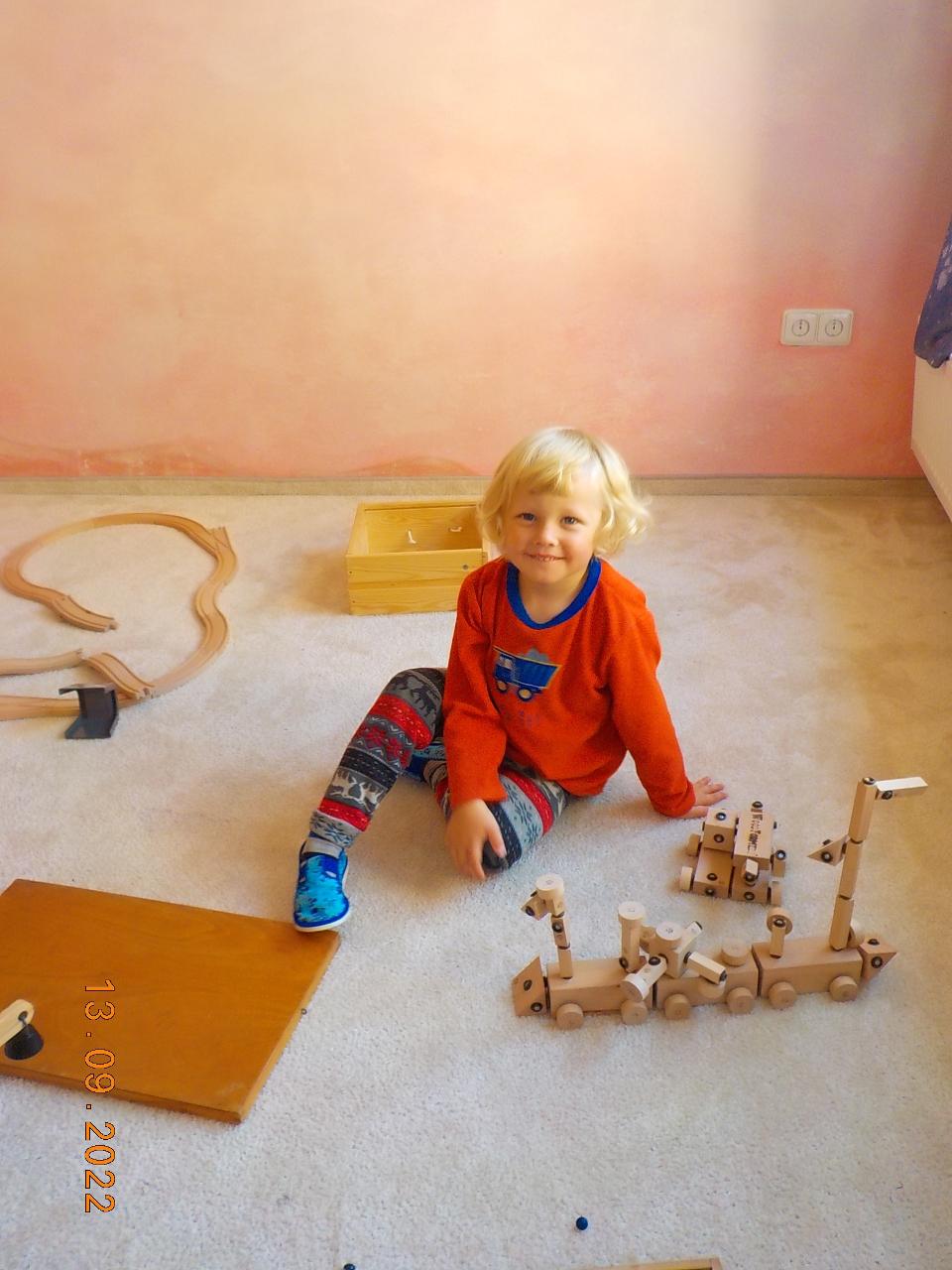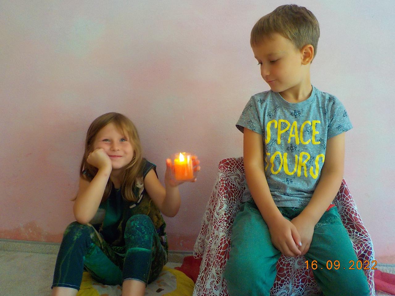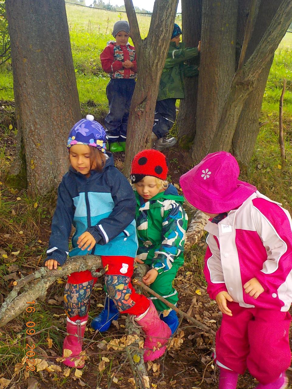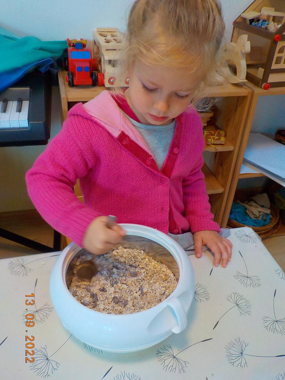 Posledních pár nevymlácených klásků obilí jsme tento týden spracovali. Prožili jsme společně celý proces - od setí obilí až po jeho zpracování (zpívali jsme, tančili, hráli si na sedláčka, mlátili obilí, mleli na mlínku mouku, zadělávali těsto a pochutnávali si na chlebíčku). Za dobře vykonanou práci přišlo chlebíčkové divadýlko - jaké bylo překvapení, když uvnitř bochníku byl domeček pro chlebíčkové dětičky. A krom toho všecho jsme každý den ať svítilo slunko či pršelo běhali po loukách a lesích - hráli jsme si na Šípkovou Růženku, které pomůže jen polibek, nasedali na větve jako na houpačky či koně. Předškoláci trénovali šikovnost svých rukou. A na závěr týdne jsme si společně užili oslavu prvních narozenin. Nebylo tomu jinak - skřítek opět přinesl pro oslavence malý dáreček.