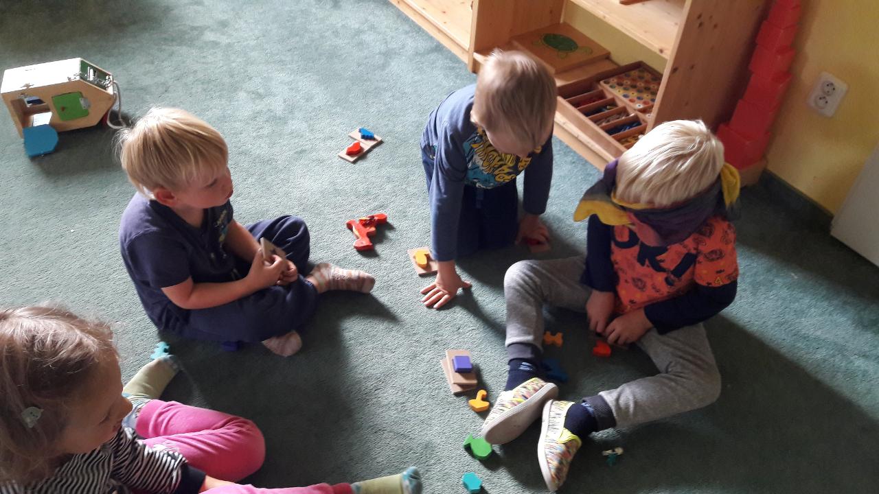 A pod šípkovým keřem to žije. Vyprávíme si pohádku „Jak zajíc vyhrál“. Pohádku o tom, jak je fajn mít kamaráda, který nás podpoří a pomůže, když je potřeba. A také o tom, že každý z nás má nějaký talent a že společně toho můžeme dokázat mnohem víc, než každý zvlášť. Pokračujeme s tématem kamarádství a vzájemné podpory a povídáme si o podzimu. Které plody na podzim dozrávají? Jak poznáme, že je tady podzim a co je to babí léto? Kteří ptáci odlétají a kteří u nás zůstávají? Společně tvoříme, malujeme, modelujeme i stavíme. Tímto týdnem nás také provázely traktory, které jsme potkávali na každém kroku a děti tak měly stále co pozorovat. Sbírali jsme šípky, pouštěli draky, pozorovali pomalu žloutnoucí listí a měnící se přírodu kolem nás. Naučili jsme se také nové říkanky a připomněli si oblíbené písničky.