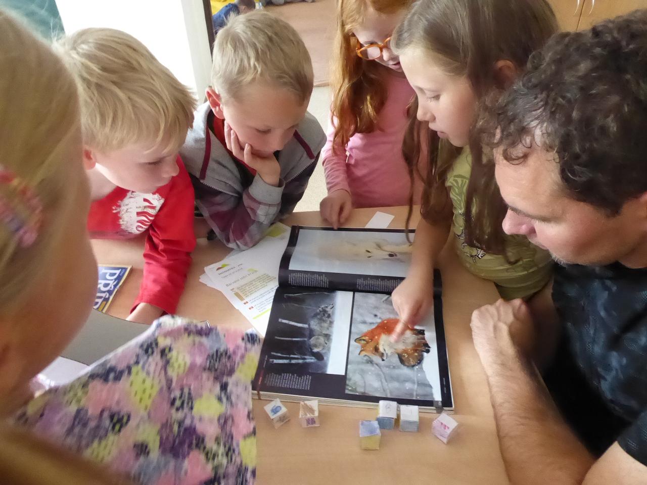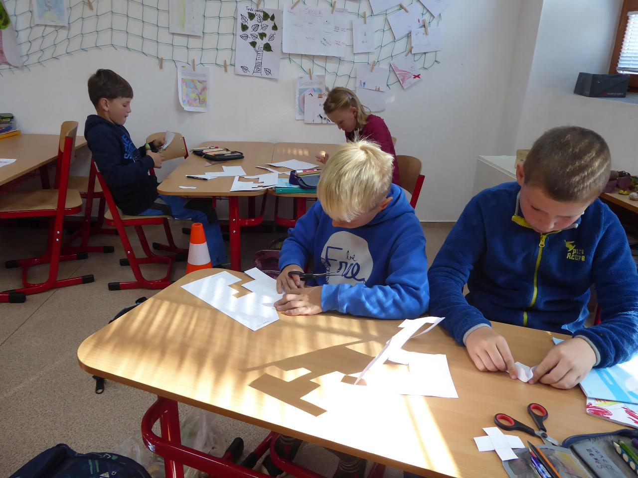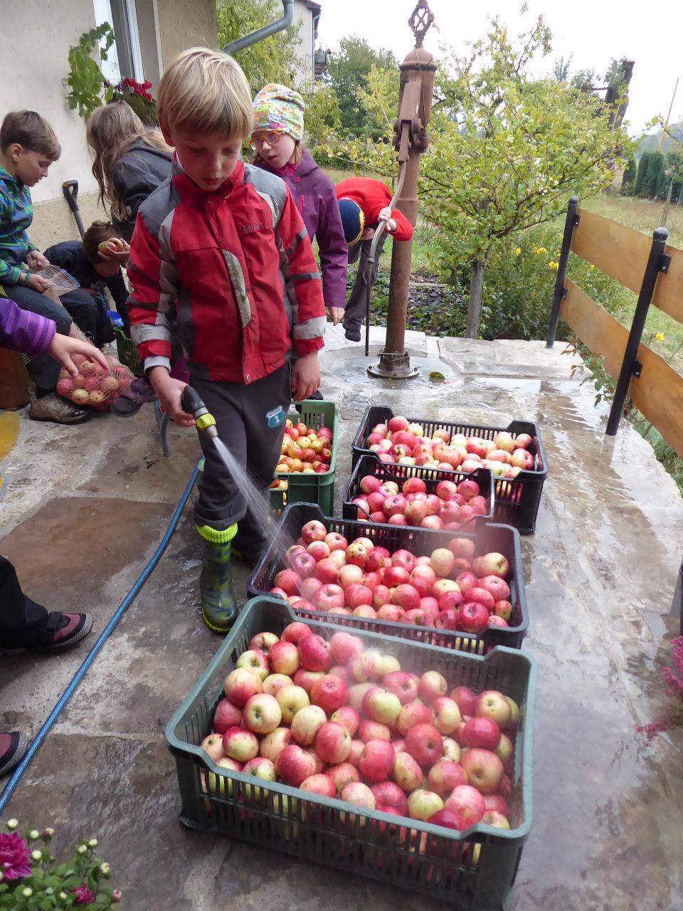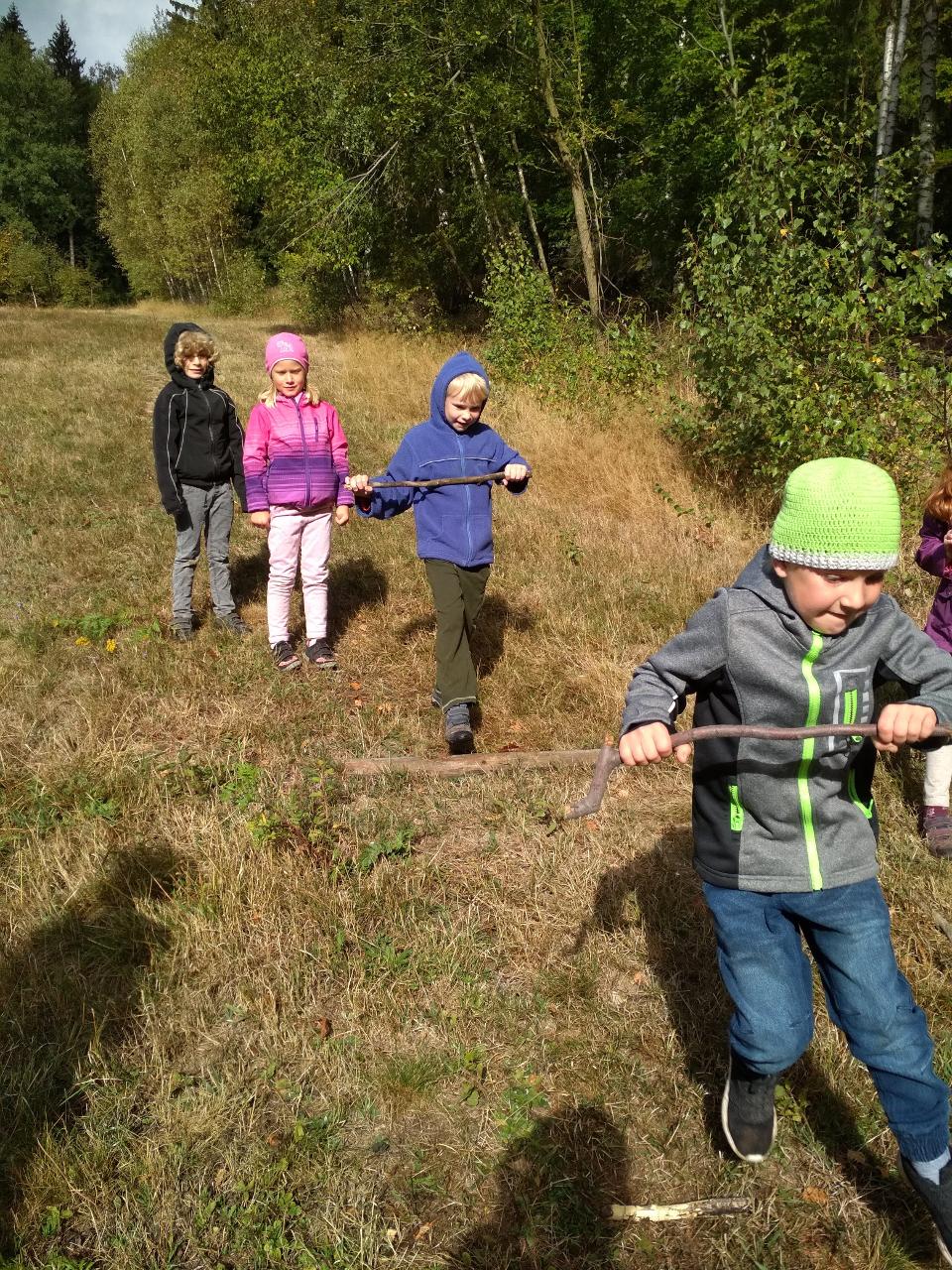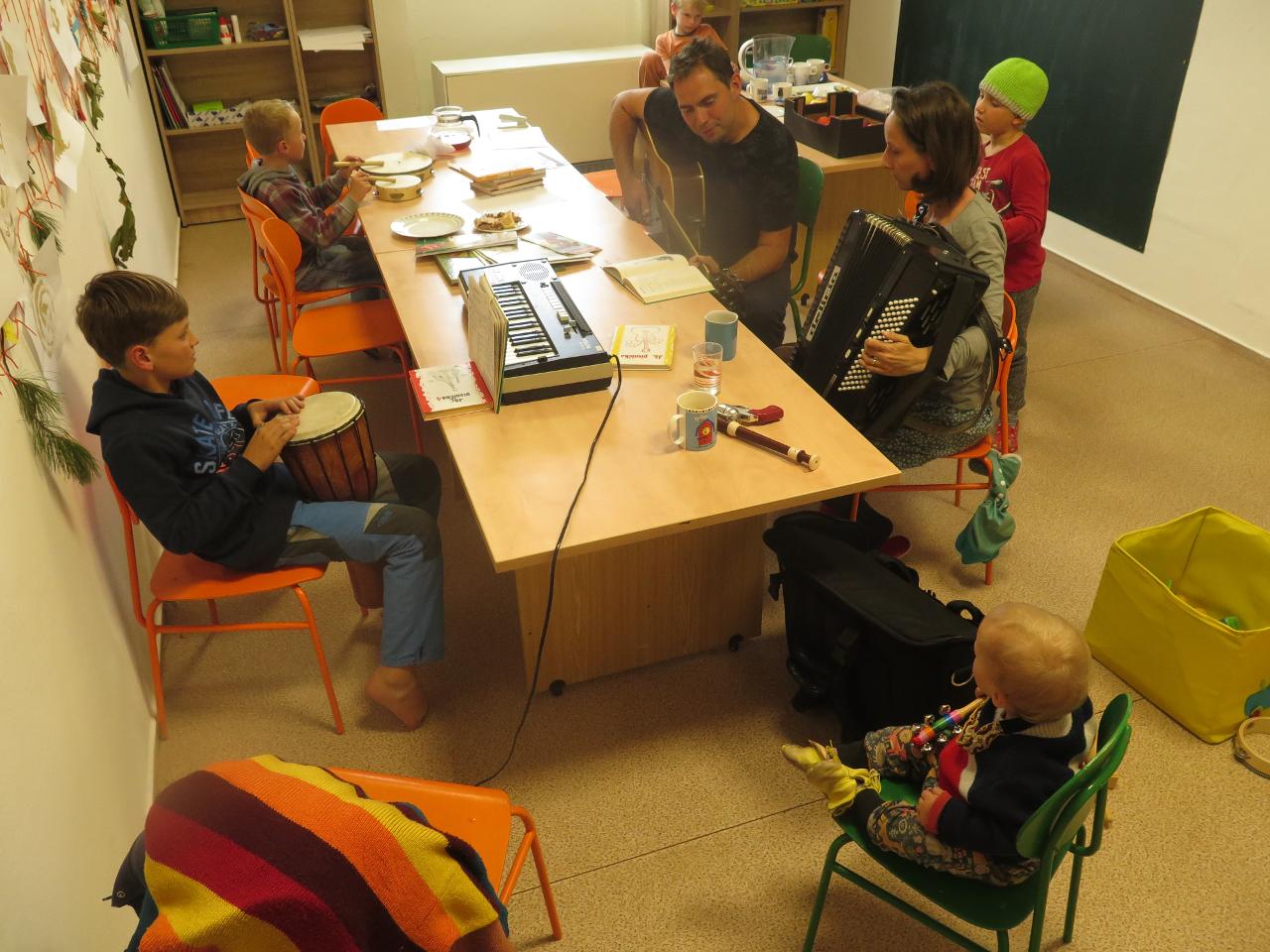 Tento týden jsme děkovali za podzimní úrodu a věnovali se více ovoci a zelenině, která u nás dozrává. Poznávali jsme jednotlivé druhy pomocí hmatu, chuti i očima:) Zaujalo nás i vyprávění maminky Cyrila o původu jabloní, díky kterému jsme se přenesli do Kazachstánu a prohlédli si zajímavé fotky ze života tamějších obyvatel. Ze čtvrtečního venkovního dne jsme si udělali den jablečný:) Ráno jsme nasbírali jablka, napekli štrúdly, pak jsme vyrazili moštovat k tatínkovi Otíka a ve škole jsme ještě malovali podzimními barvami. Celý týden jsme hojně tvořili různá stvoření a bytosti z donesených přírodnin. Nezapomněli jsme také pokročit v češtině, angličtině a matematice. Rádi také zpíváme a hrajeme na hudební nástroje.