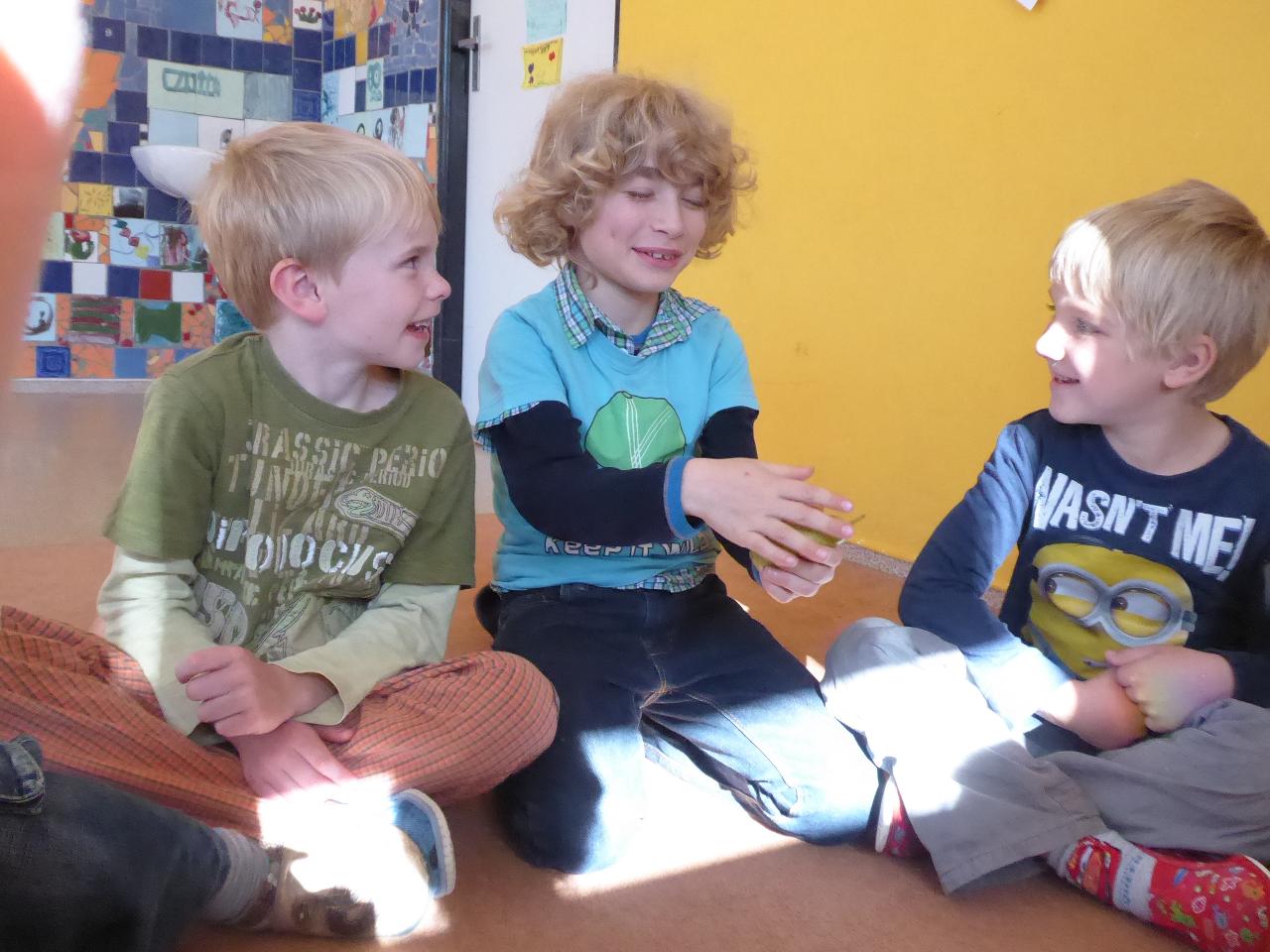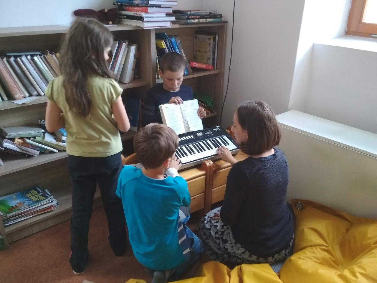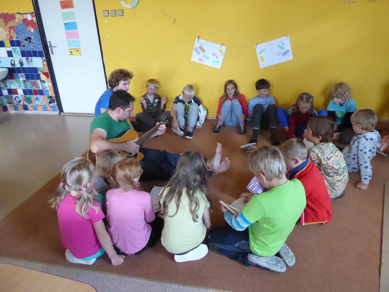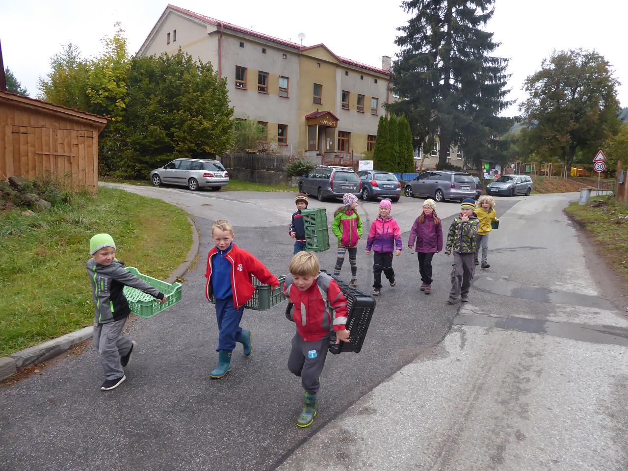 Tento týden jsme děkovali za podzimní úrodu a věnovali se více ovoci a zelenině, která u nás dozrává. Poznávali jsme jednotlivé druhy pomocí hmatu, chuti i očima:) Zaujalo nás i vyprávění maminky Cyrila o původu jabloní, díky kterému jsme se přenesli do Kazachstánu a prohlédli si zajímavé fotky ze života tamějších obyvatel. Ze čtvrtečního venkovního dne jsme si udělali den jablečný:) Ráno jsme nasbírali jablka, napekli štrúdly, pak jsme vyrazili moštovat k tatínkovi Otíka a ve škole jsme ještě malovali podzimními barvami. Celý týden jsme hojně tvořili různá stvoření a bytosti z donesených přírodnin. Nezapomněli jsme také pokročit v češtině, angličtině a matematice. Rádi také zpíváme a hrajeme na hudební nástroje.
