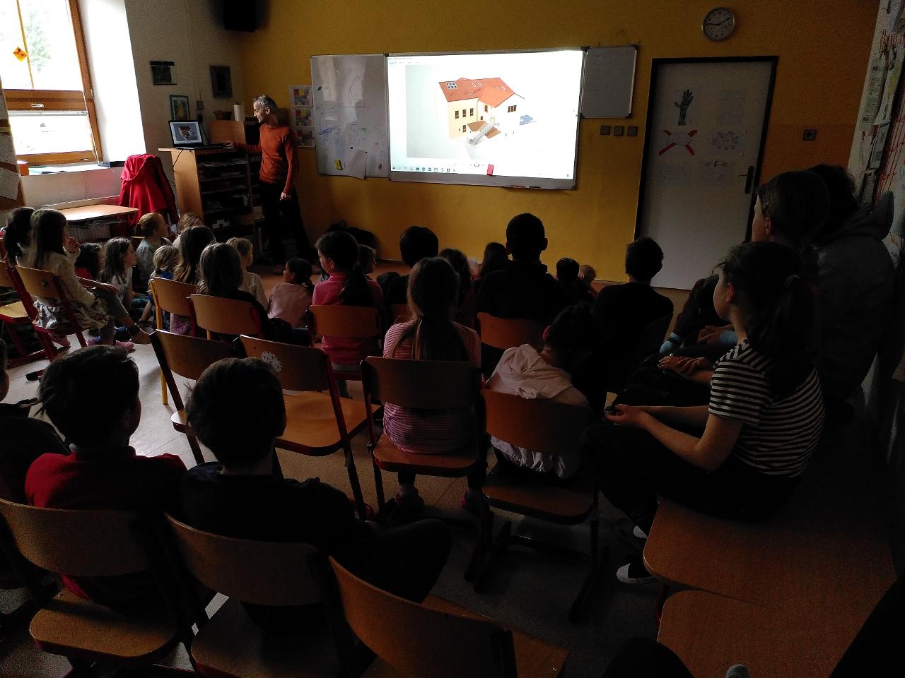 V pátek v rámci projektu "Lidé kolem nás aneb Dospělí dětem" nás navštívil Vojtěch Kopal, tatínek Verunky. Vyprávěl a promítal o tom, jak stavba vypadala dříve, jak se projektuje stavba a co nás čeká na školní půdě.