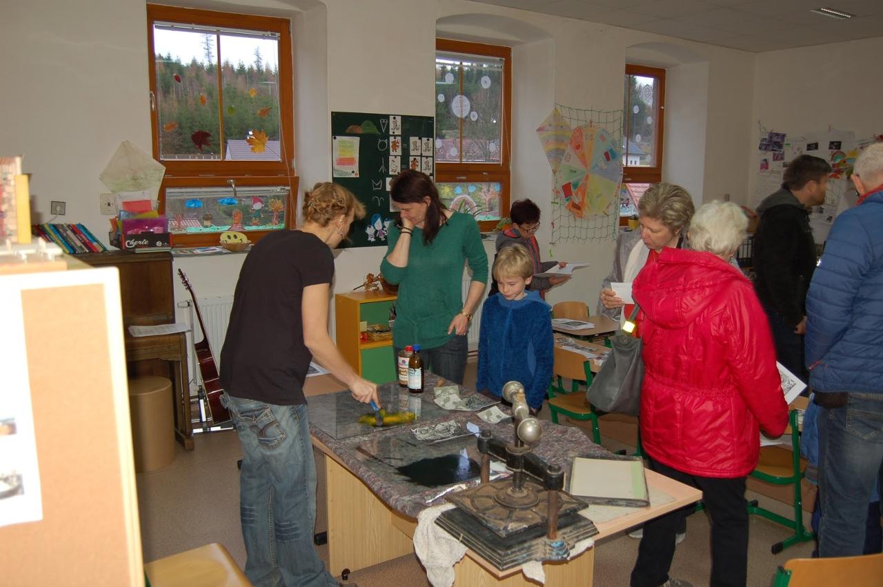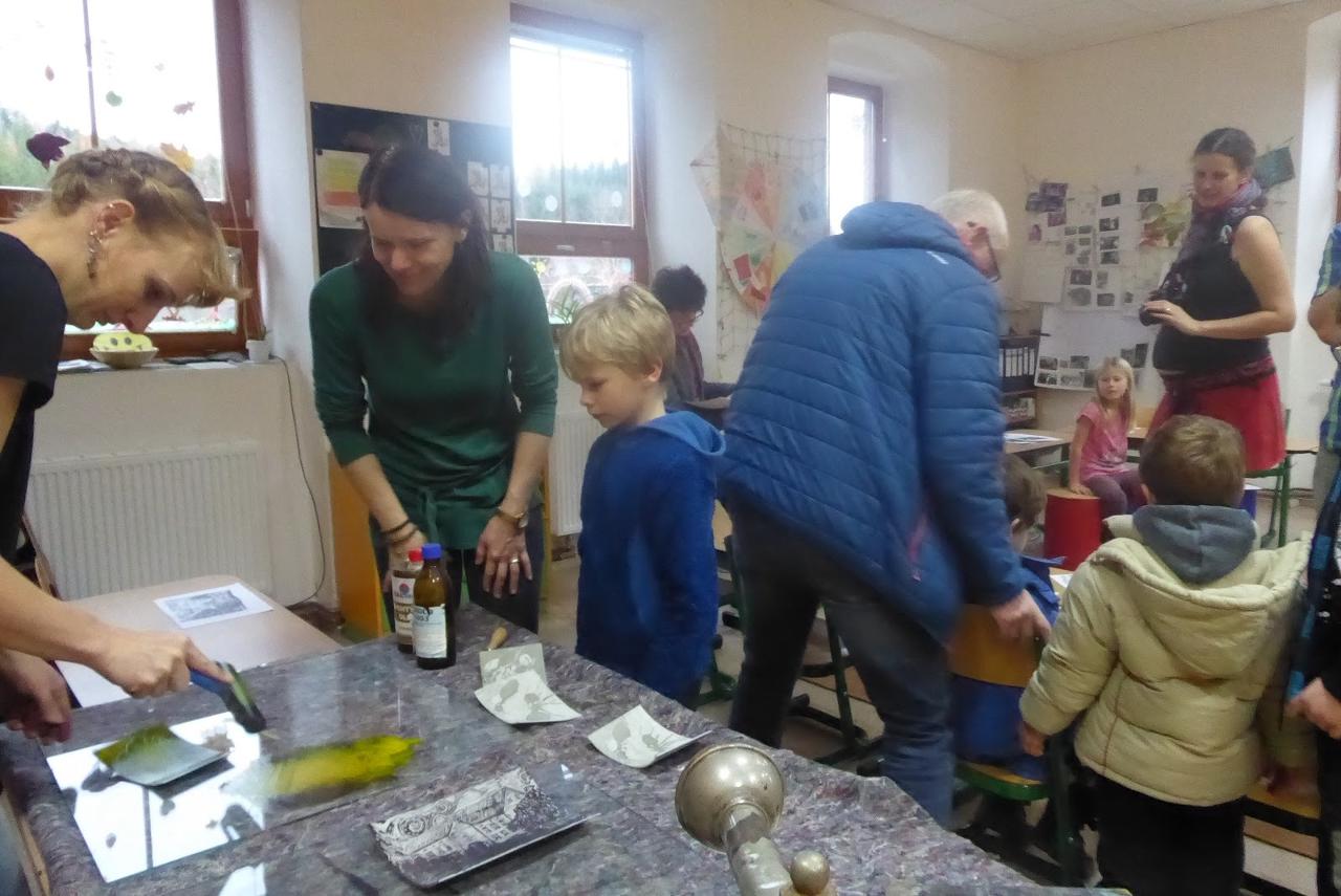 V sobotu 23.11. 2019 proběhl v Mraveništi Den otevřených dveří spojený s oslavou 140 let od otevření současné školní budovy v Markoušovicích (byla vysvěcená 7. září 1879). Při společném zahájení před budouvou zazněly na uvítanou písně zpívané celým Mraveništěm. Během dopoledne si pak návštěvníci mohli prohlédnout všechny komůrky Mraveniště (školku, školu i nově dobudované rodinné centrum a zrekonstruovanou kuchyni), vyrobit si linoryt nebo placku, shlédnout divadélko a projekty dnešních školáků, společně si zazpívat či debatovat o historii markoušovického školství na besedě v jídelně. Školáci představovali mimo jiné své projekty a pomocí mravenčí písničky a fotek i každodenní běh školy. Do Mraveniště se v tento den přijeli podívat i ti, kteří do této budovy chodili jako školáci či učitelé v různých časech 20. století a tak proběhlo mnoho zajímavých rozhovorů a setkání napříč generacemi. Děkujeme všem za inspirativní dopoledne. Velké poděkování patří i všem, kteří nás podporují a pomáhají nám Mraveniště spoluvytvářet - dobrovolníci, rodiny, místní spolky, firmy, obec Velké Svatoňovice a v neposlední řadě Královéhradecký kraj.