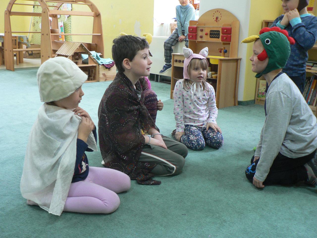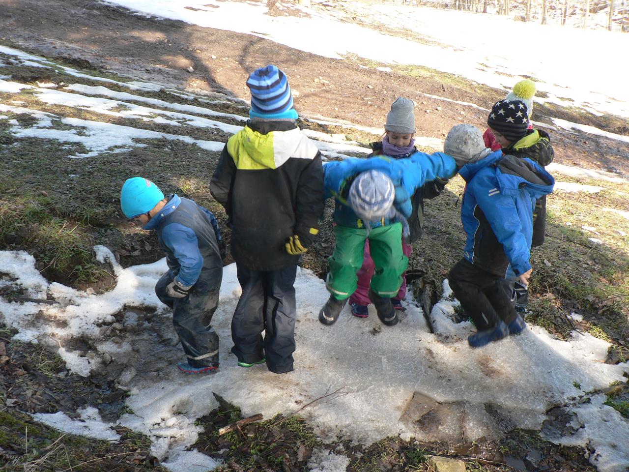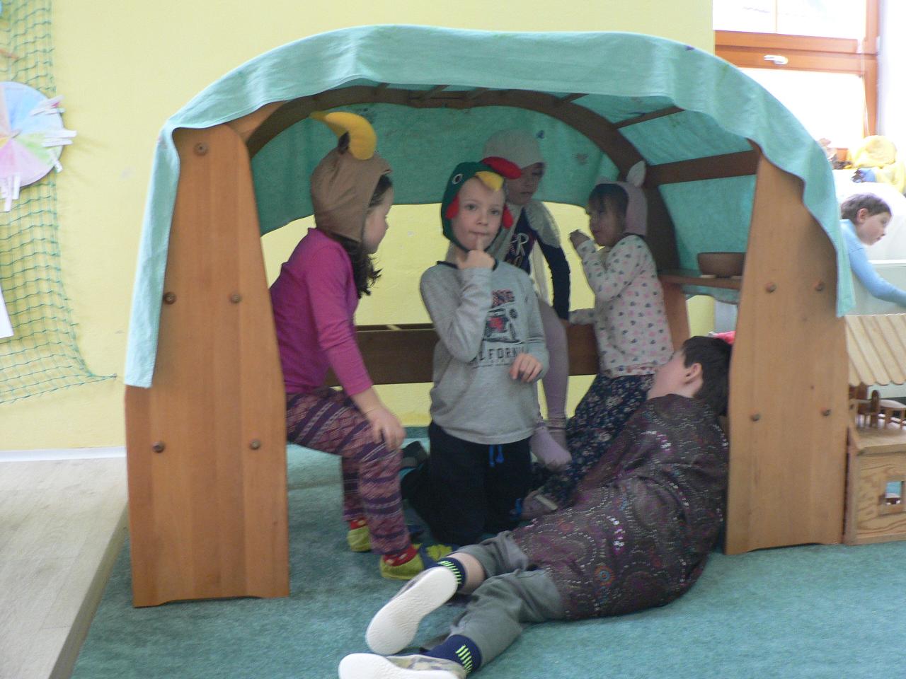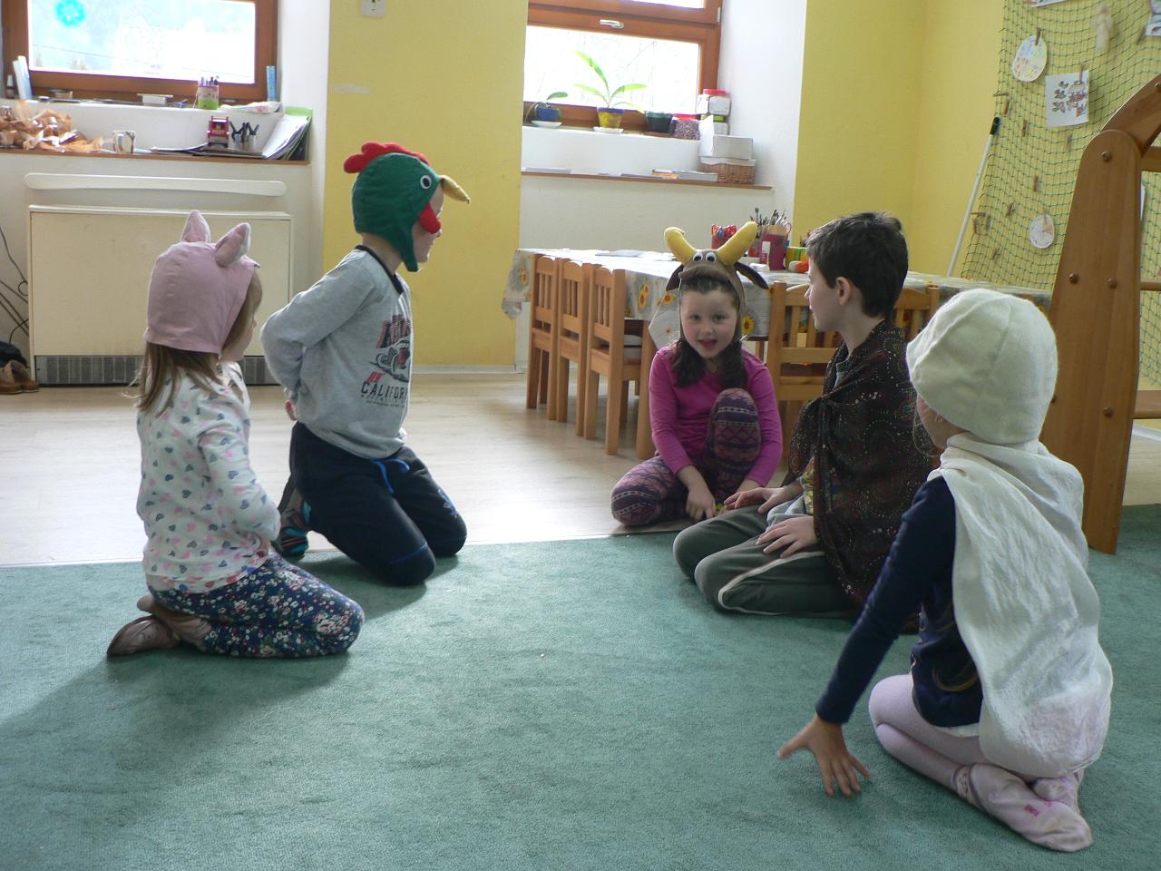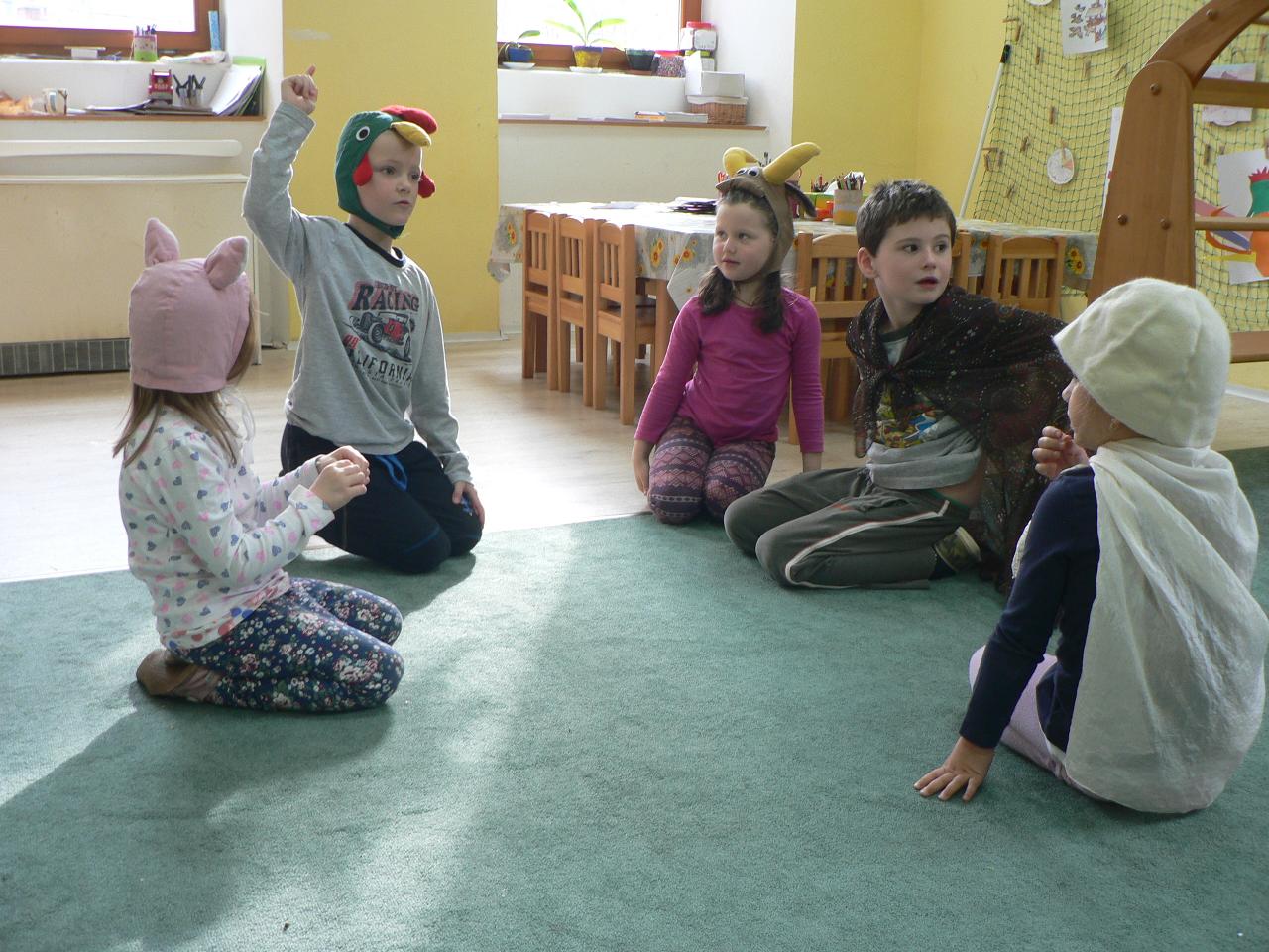 řekl si jednoho dne býček a vydal se na cestu… A o tom, koho cestou potkal, co zažil, jak se mu putovalo, s kým se spřátelil a jakému nebezpečí musela zvířátka čelit, byla naše pohádka. Pohádka o přátelství a také o tom, že když pracujeme společně a táhneme za jeden provaz, dokážeme toho mnohem víc. A stejně jako zvířátka v pohádce i my jsme hledali nové cesty a zkoumali, jestli někde pod sněhem či ledem už přeci jen nevykukuje kousek jara či léta. Počasí bylo ale stále spíše zimní, a tak nás venku čekala spousta zábavy na sněhu i na ledu. Navštívili jsme také kravín, abychom viděli, kde asi mohl býček trávit zimu a povídali jsme si i o tom, kde zimují další zvířátka a jak to mají zvířátka v lese, z čeho mají pelíšky a čím se v zimě živí. Při vyrábění jsme pracovali s kůží a kladívky, skládali jsme z papíru, lepili kohouty a malovali. Ve čtvrtek se děti na zvířátka proměnily a pohádku si s chutí a radostí zahrály. V pátek jsme pak místo ven vyrazili protáhnout těla do tělocvičny a jak se tam dětem líbilo, to už poznáte z připojených fotek.