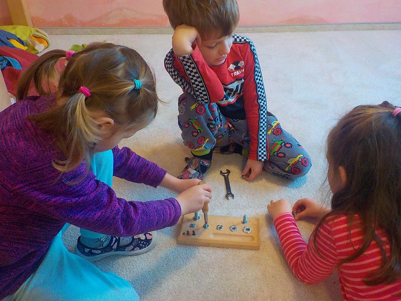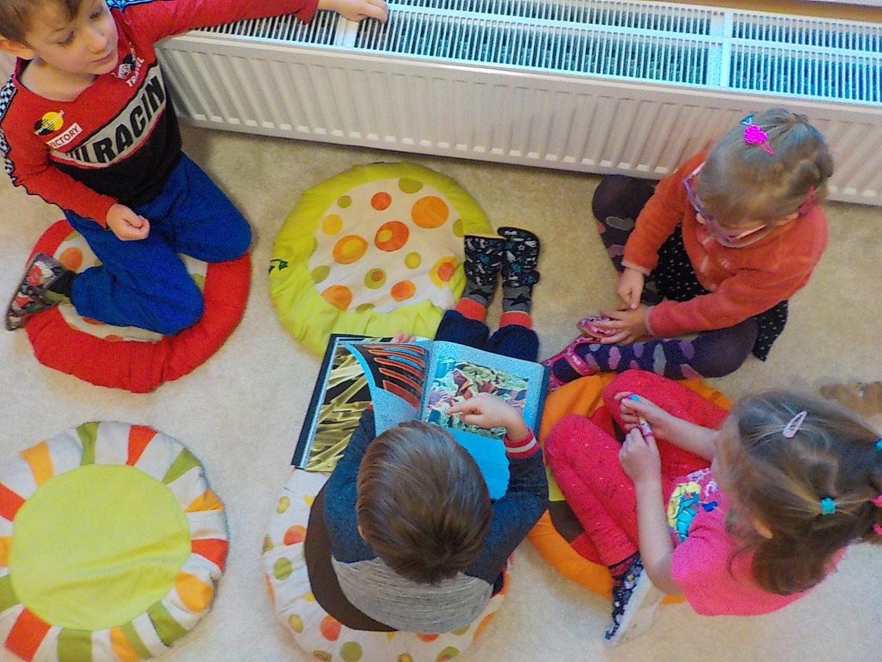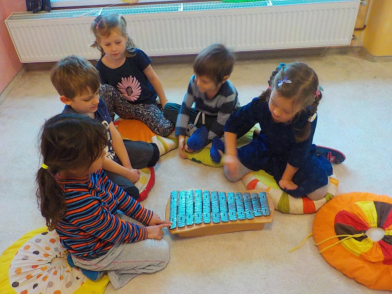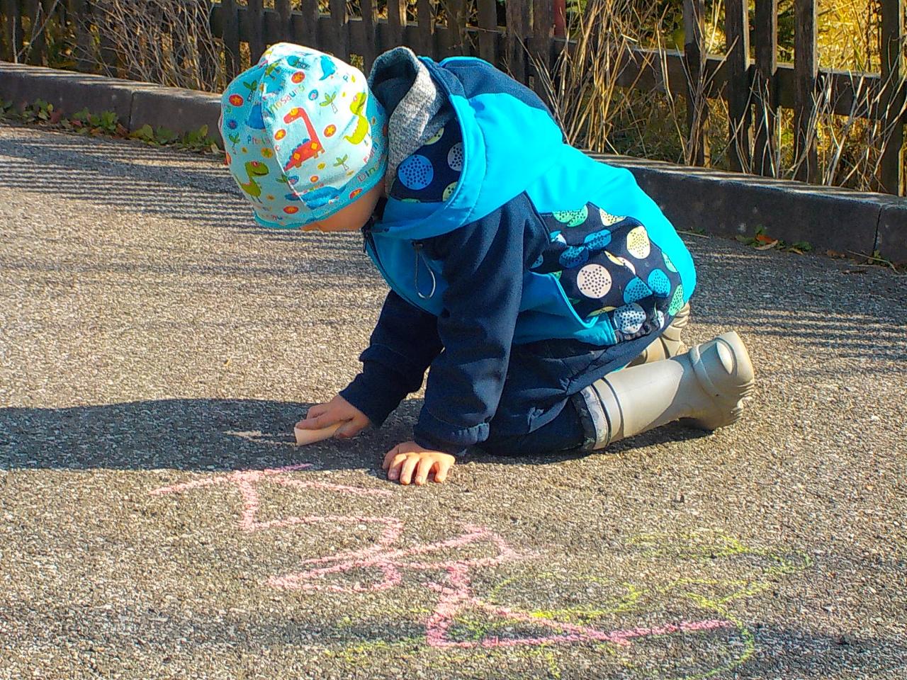 Krásných slunečných dní jsme s radostí využili - malování křídami na cestě, vyhřívání se, hra na schovávanou, hledání barevných lístků, válení sudů v trávě, průzkum potůčku a posílání lodiček z listí. Zato ty mlhavé dny byly jako stvořené pro tvorbu naší lucerničky z řepy - ta pak mohla děti vítat při příchodu po zbytek týdne. O řepě jsme si zahráli pohádku a všichni pečlivě tahali, až vytáhli. Říkanka o dýni nás provázela při výrobě dýniček z kynutého těsta, na kterých jsme si pochutnali a dýniček papírových. K umocnění celé atmosféry přispěla Péťa svým dušičkovým divadýlkem.