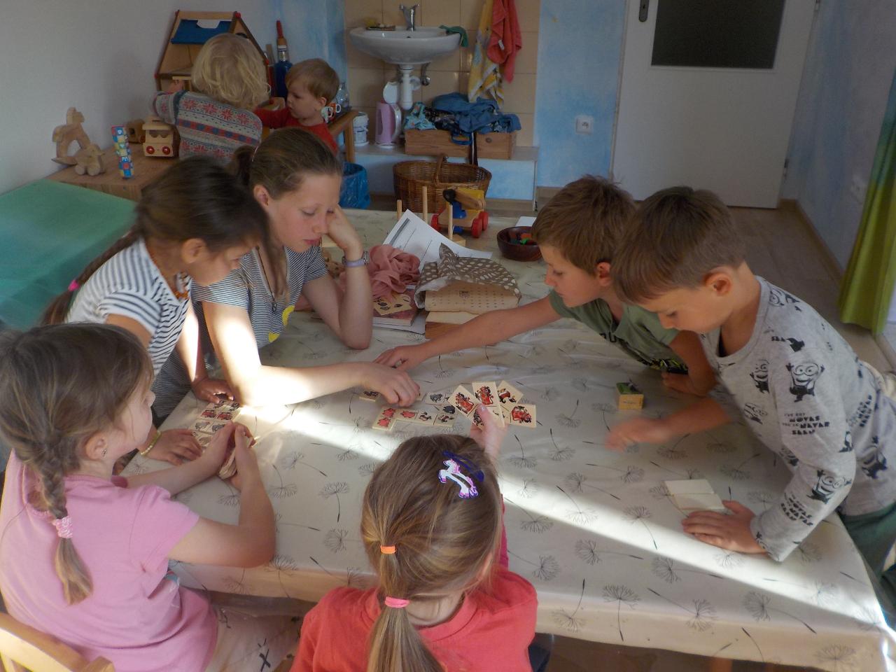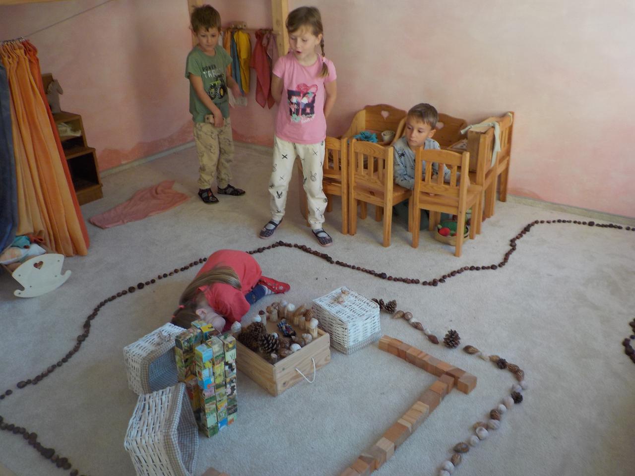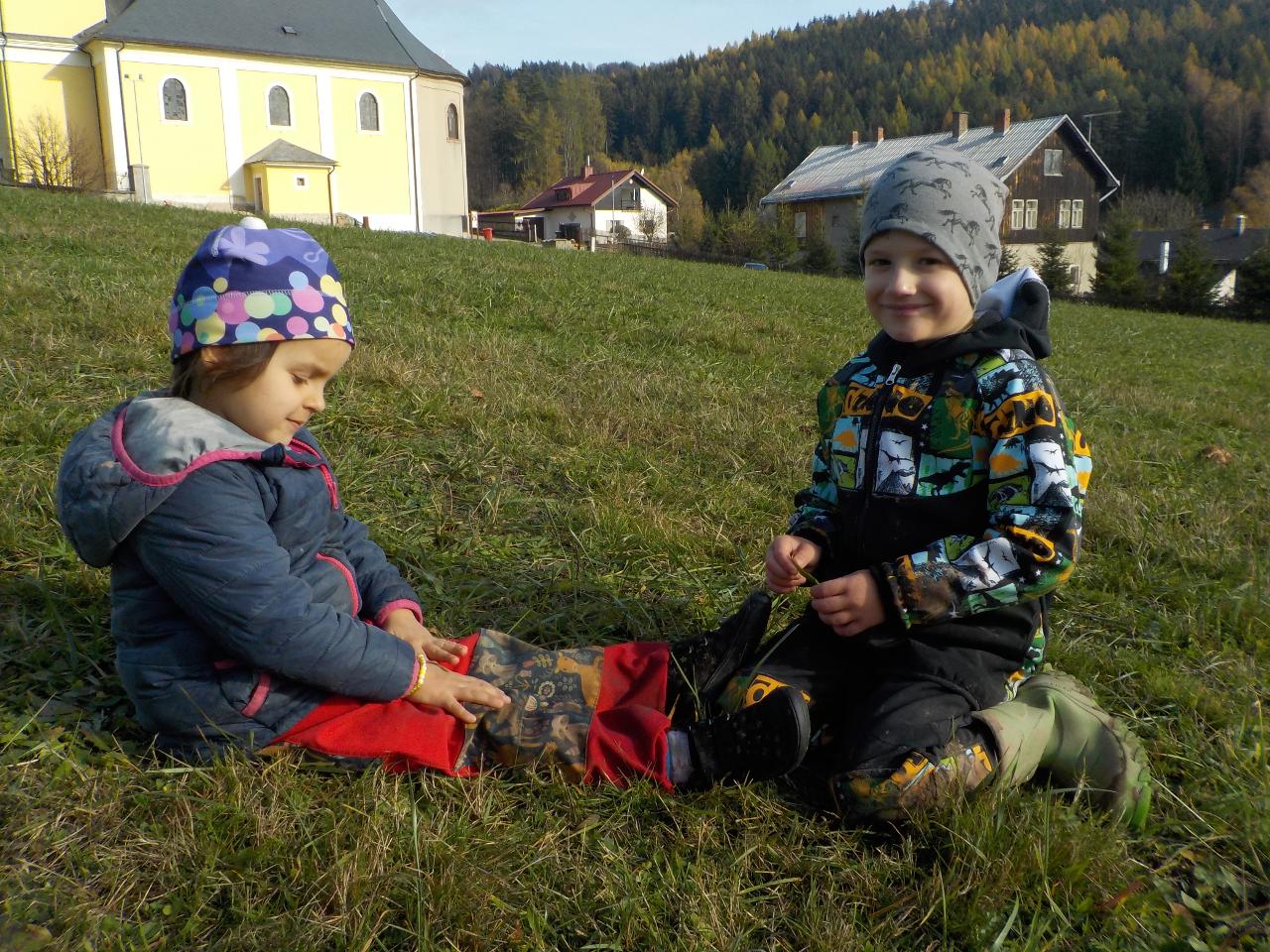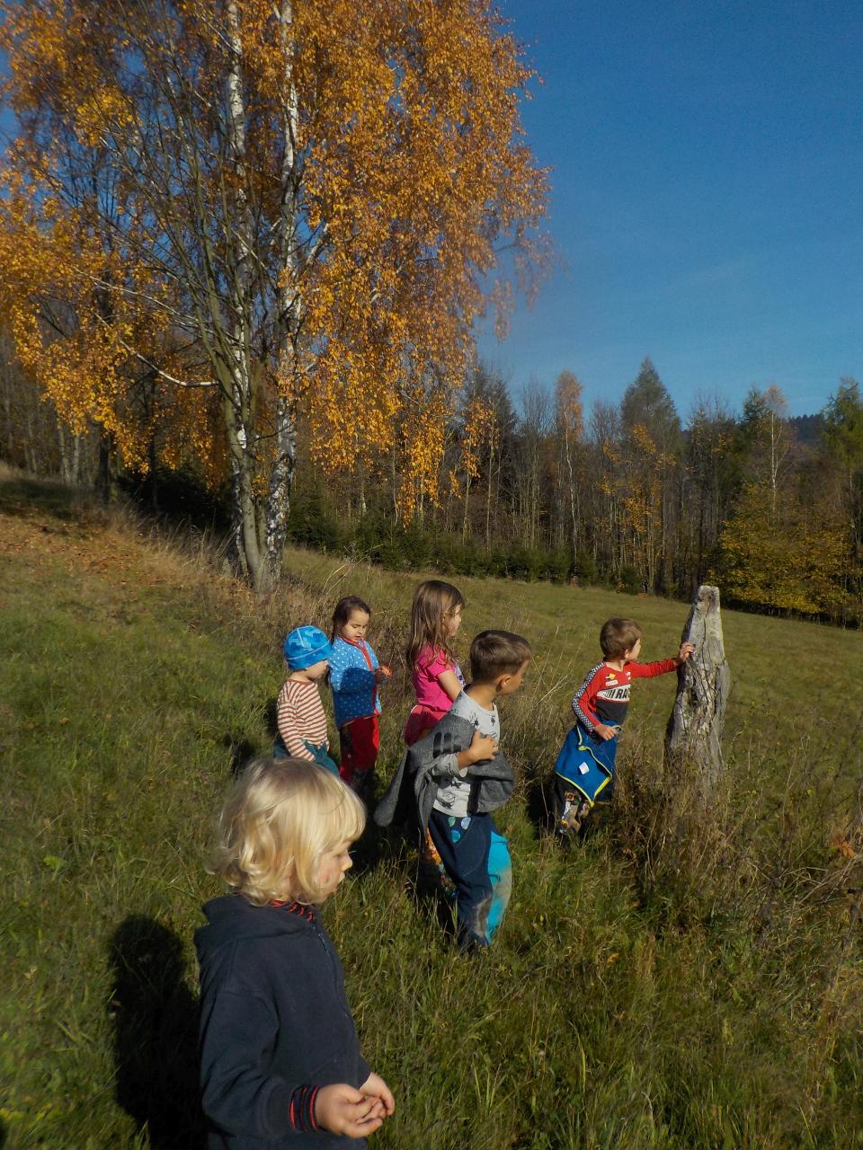 Čas dušičkový, ale počasí babího léta, tak se nám s radostí v přírodě užívalo sluníčka a nikdo z nás ani nechtěl věřit, že je čas dušiček. Přesto jsme dýni jako domeček vydlabali a rozsvítili ji před školkou, aby se každý brouček či skřítek mohl v ní přes noc ohřát. Z dýňového těsta jsme si upekli houstičky jako dýničky. Péťa nám zahrála dušičkové divadýlko. Nechybělo ani cvičení fyzické či předškolácké a hra a hra a hra.
