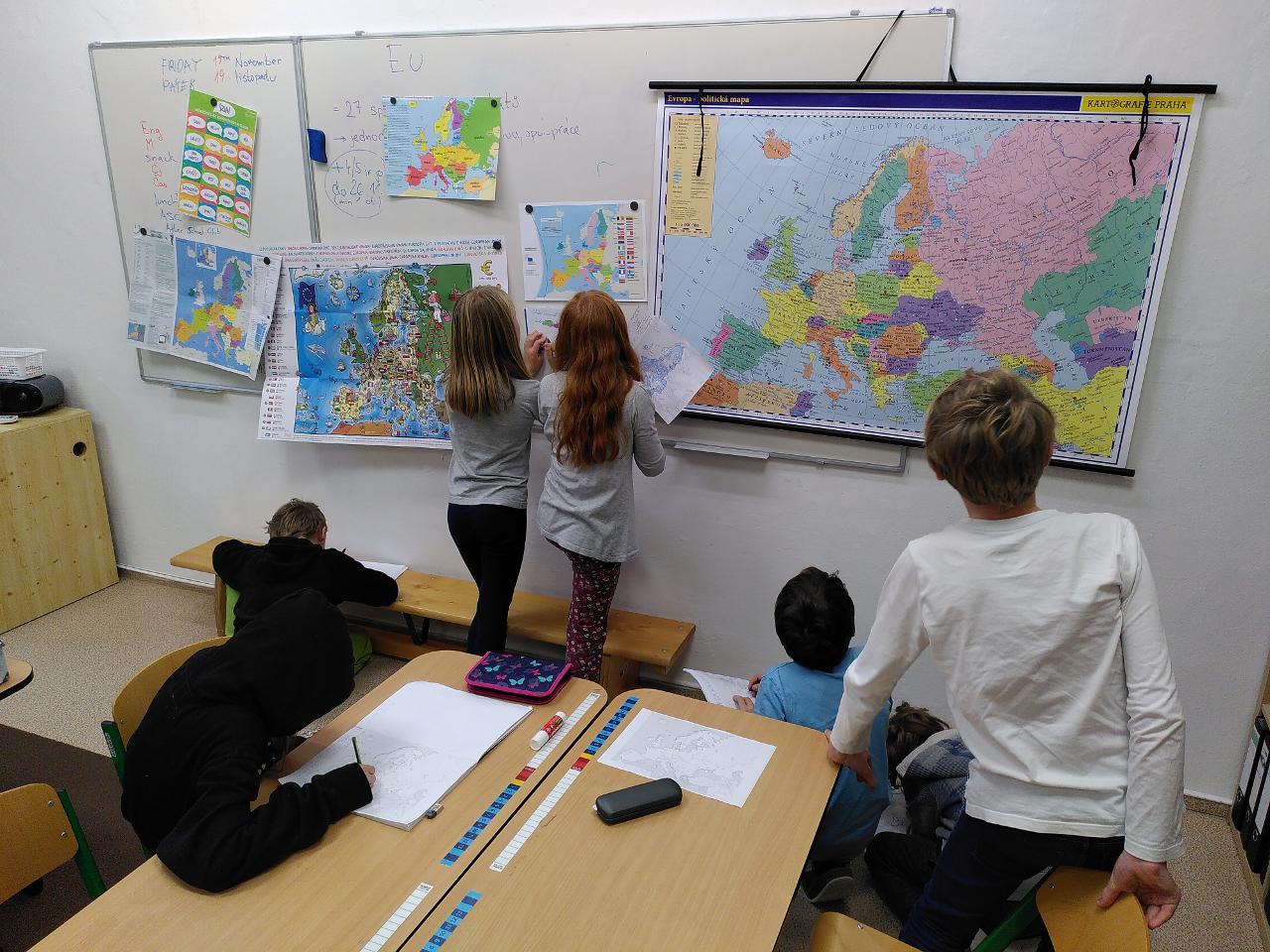 V polovině listopadu, kdy každoročně oslavujeme výročí svobody a demokracie nejen v Česku, jsme se ponořili do poznání Evropské unie. Během týdne a zejména pak ve čtvrtek jsme poznávali jak jednotlivé státy, tak i jejich vlajky, významné památky či tradiční jídla. Školáci také odhalovali jazyky, kterými se v zemích evropské sedmadvacítky mluví. Diskutovali jsme také nad významem EU a přínosem pro náš každodenní život. Mimo hlavní téma se školáci dále věnovali používání slovesa can v angličtině nebo rozvoji komunikačních dovedností v češtině. Tímto týdnem také odstartovalo období podzimních konzultací ve složení učitel-rodič-školák, tak abychom si s každým školákem a jeho rodinou probrali, jak se mu ve škole líbí, na co se těší, z čeho má obavy, co se naučil a co naopak potřebuje ještě posílit. Svůj pohled na otázku vzdělávání můžou říct i rodiče a doptat se na rozmanité otázky.