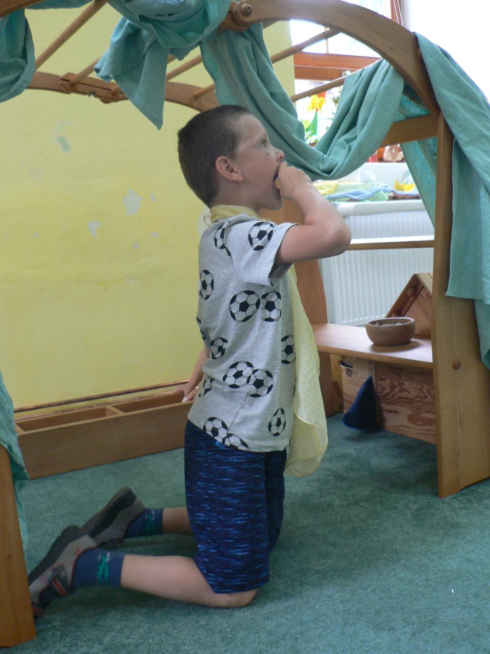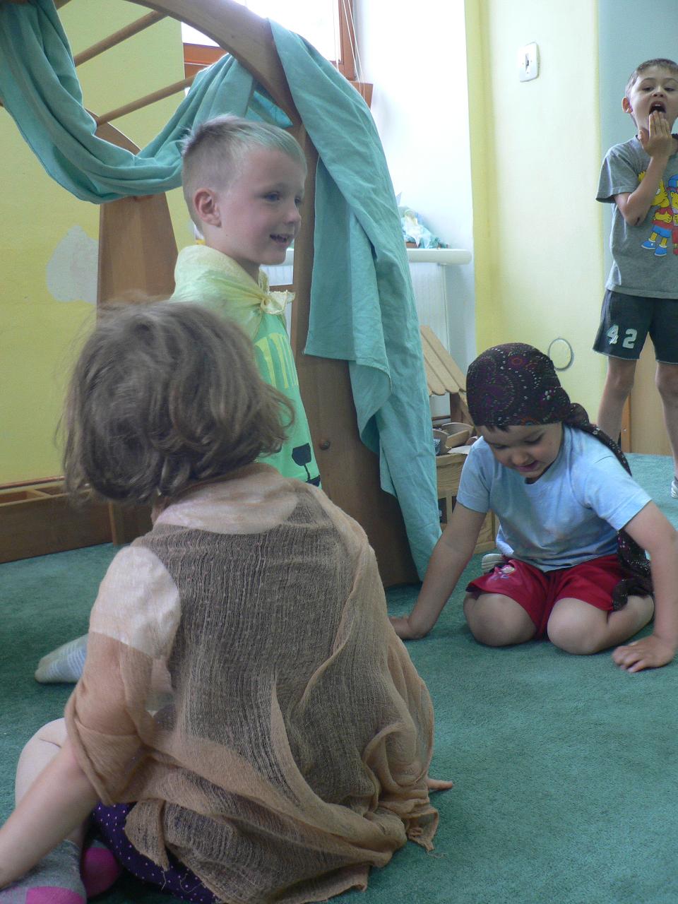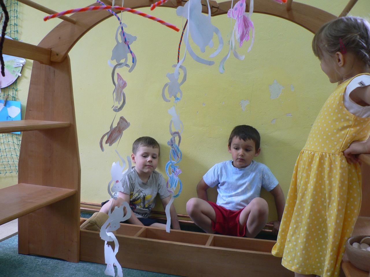 Tento týden jsme si vyprávěli pohádku Tři kamarádi, pohádku z africké savany - příběh o přátelství malého geparda, hada a opice. Prožili jsme s nimi přátelské neshody, hádky i usmíření a stejně jako oni jsme si povídali o tom, jak to chodí mezi skutečnými kamarády. Jak se k sobě kamarádi chovají a co si naopak nedělají. Co pro nás vlastně kamarádství znamená a že je dobré někdy dělat to, co máme rádi my a jindy se zase něco naučit od našich kamarádů. I tento týden jsme hodně tvořili, vystřihovali jsme zavěšovací opice, malovali hadí kůže, vystřihovali a lepili schovávací gepardy a spoustu dalšího. Naučili jsme se také nové pohybové říkanky a s hudebními nástroji jsme zpívali oblíbené písničky. Nechybělo ani čtvrteční divadýlko, při kterém se děti krásně zvládly domluvit a prostřídat v rolích tak, aby si všechny pohádku užily. A protože k nám dorazilo letní počasí, odhodili jsme mikiny a bundy, natáhli si kraťasy a vyrazili hledat ochlazení a osvěžení k blízkému potůčku či do stínu lesa.