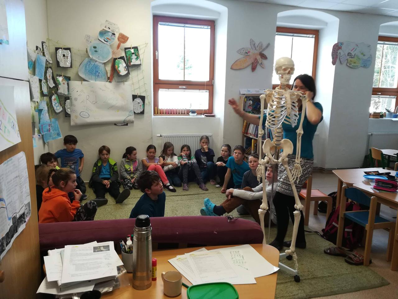 Společně jsme zakončili pololetí a předali si vysvědčení za uplynulých pět měsíců. Dále jsme otevřeli nové téma, lidské zdraví. Věnovali jsme se zdravé stravě, péči o tělo. Prozkoumali jsme též lidskou kostru. Ze sněhu jsme vytvořili části lidské kostry. Hodně jsme se ve slohu věnovali popisu. Každý žák popsal vzhled svého člověka na obrázku, jeho vzhled, výšku, výrazné rysy a oblečení. Podle popisu jsme přiřazovali obrázky.