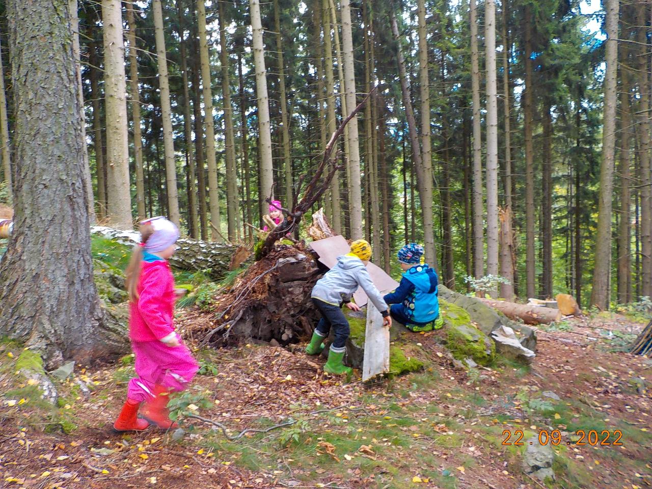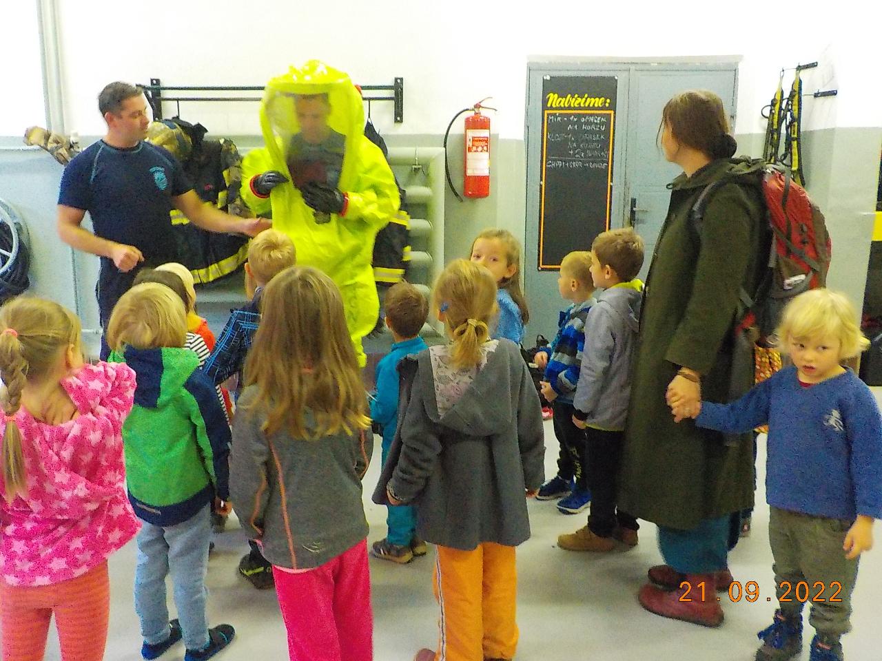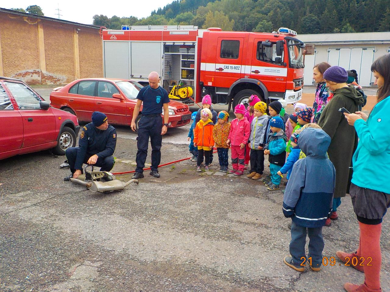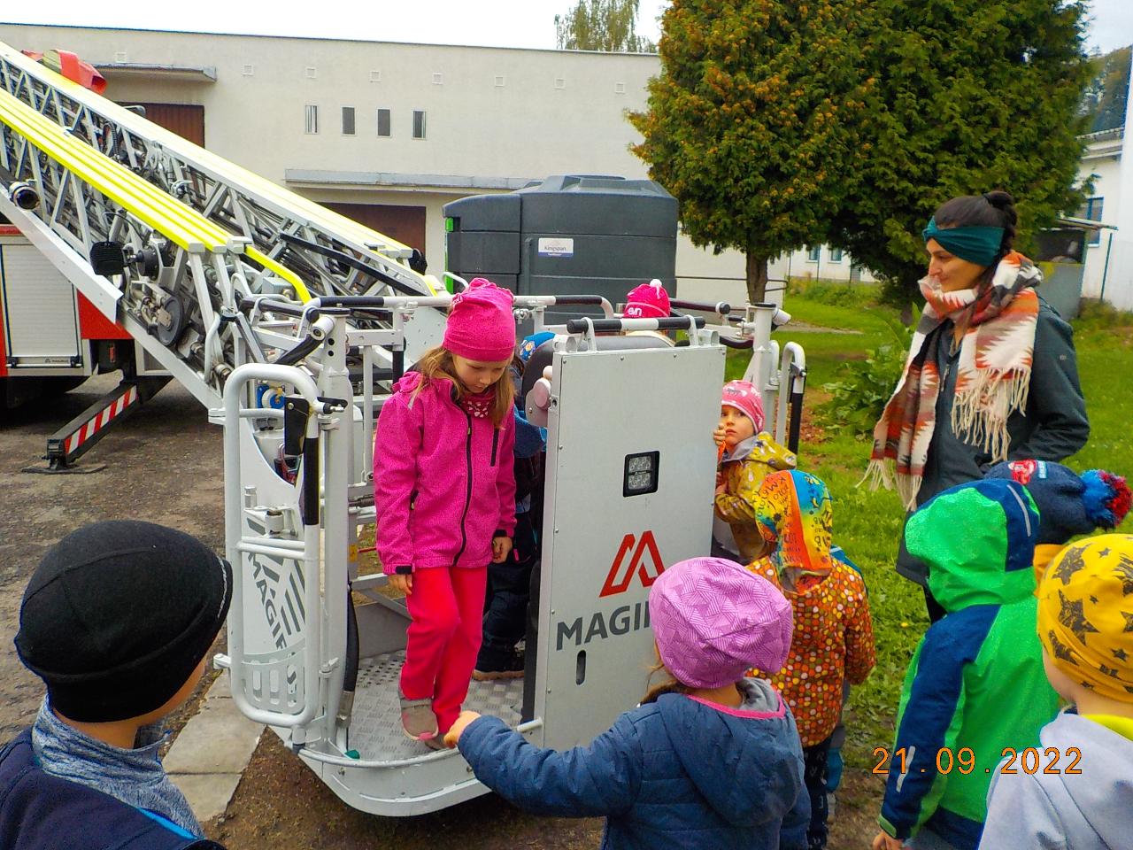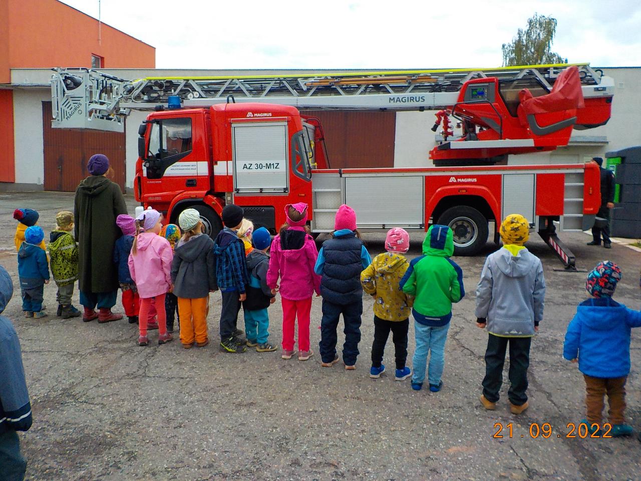 Houbičková pohádka o Kateřině, říkanky, malování, modelování i písničky, pečení i tvoření, nacházení hub na loukách i v lese - to byl houbičkový týden. Počasí nám přálo, ale podzim je už opravdu tu. Našim velkým zážitkem byla návštěva hasičů v Trutnově - bylo to úžasné povídání i prožívání. Všechno jsme si mohli vyzkoušet, na vlastní oči okouknout. Být hasičem je velké dobrodružství a velká zodpovědnost. Bavilo to malé i velké.