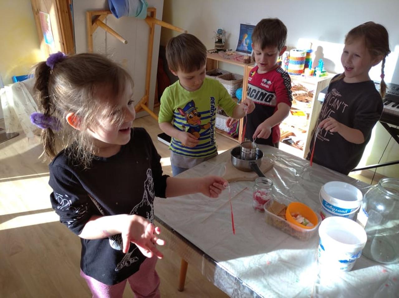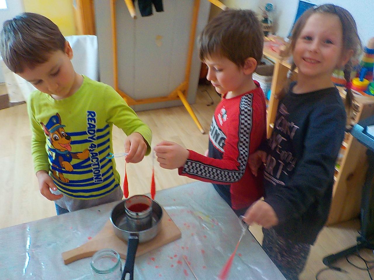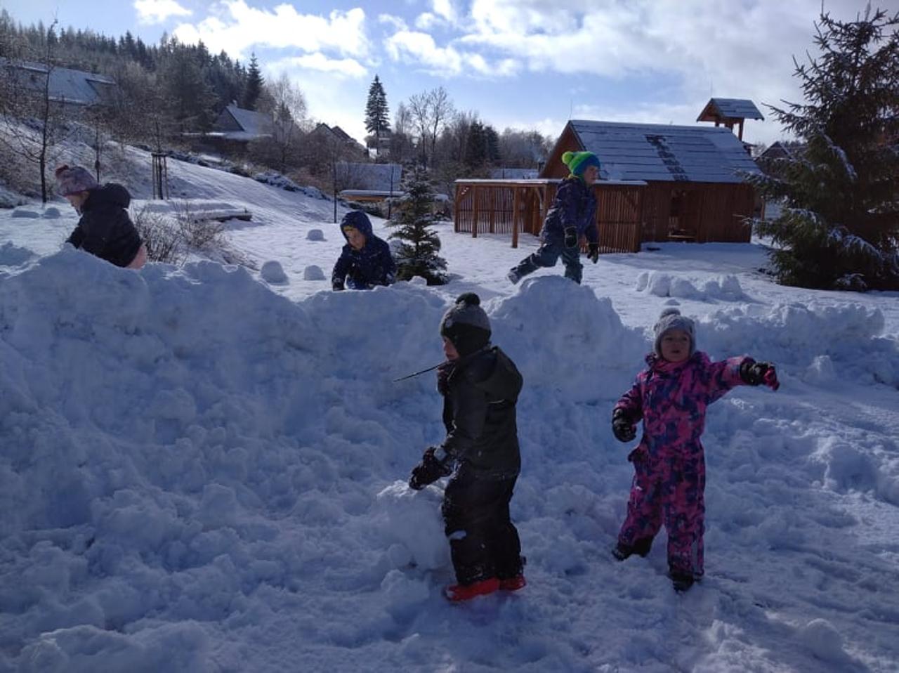 Zimy polovice, ale sněhu všude, snad nejvíce. Patřičně si ho užíváme, vyvalujeme se s radostí v ohromných hromadách sněhu okolo cest, přelézáme je, skáčeme do nich, sluníčko nás podporuje v řádění. První ptačí hlásky jsou slyšet, všichni to cítí, že jaro není daleko. Celý týden zpíváme hromniční písničky, ty nás provází také pilnou prací - výrobou svíčky hromničky, zpíváme a chodíme okolo stolu, než vosk zaschne. Z malého knůtku se každému tvoří krásná svíčka, kterou si slavnostně odnášíme domů a víme, kdy a jak ji zapálit, aby její kouzlo ochraňovalo dům i vítalo pocestné. Zoušíme modelovat svíčky i ze včelího vosku jen jako dekoraci, a k svačině si tentokrát vyrábíme dobré placičky.