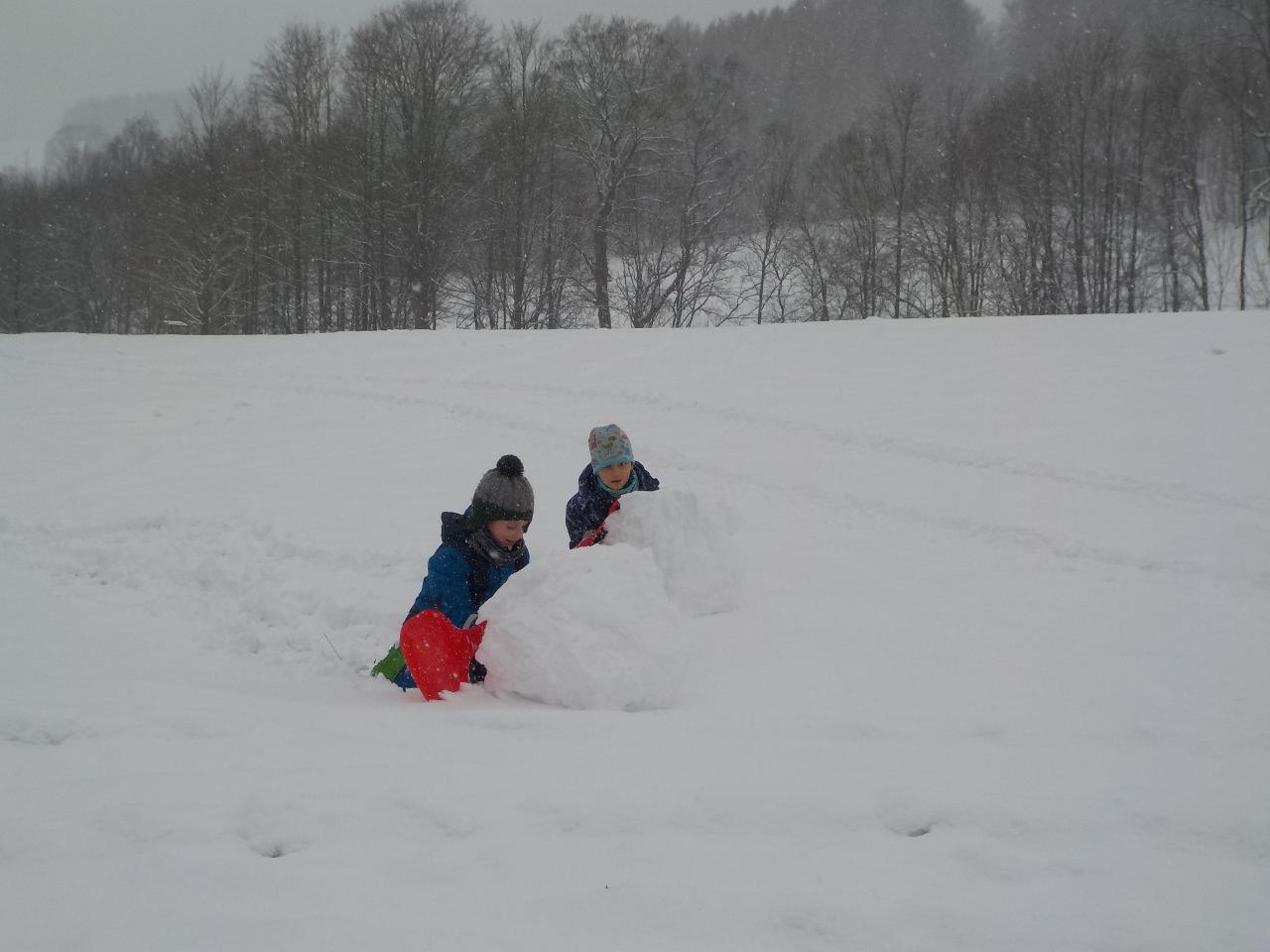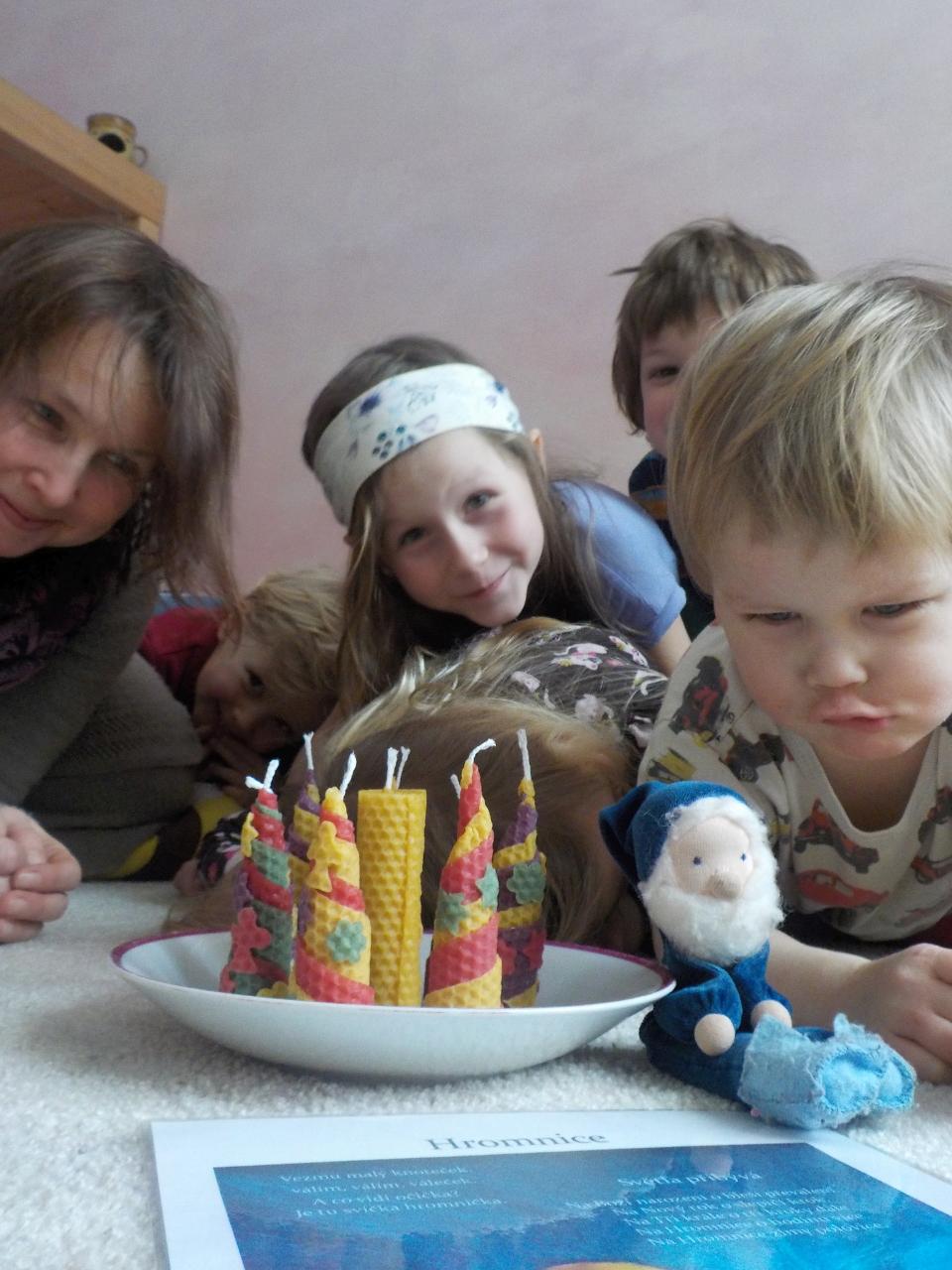 Na Hromnice - o hodinu více, na Hromnice - zimy polovice. Světla opravdu přibývá a přesně na Hromnice opravdu sluníčko vykouklo, aby dalo o sobě vědět, že zimy je polovice a někde hluboko v zemi se už něco dějě. Ale tady nahoře to zatím tak moc nevypadá. Tento týden byla opravdová sněhová nadílka. Naše pracovní četa vyhrnovačů a ulamovačů ledu ihned nastoupila "do směny" a radost ze sněhu trvala celý týden a ještě déle. Každý den byl plný radosti z nového objevování a z možností. Klouzání, válení sněhových koulí, stavění sněhových domů. A co se dělo v Mravenečkovi? Letos jsem si opět vyrobili svíčku hromničku, aby nás ochraňovala před hromem a bleskem a ukazovala zbloudilým poutníkům cestu - tentokrát z plátů včelího vosku.