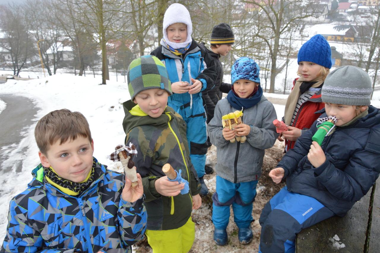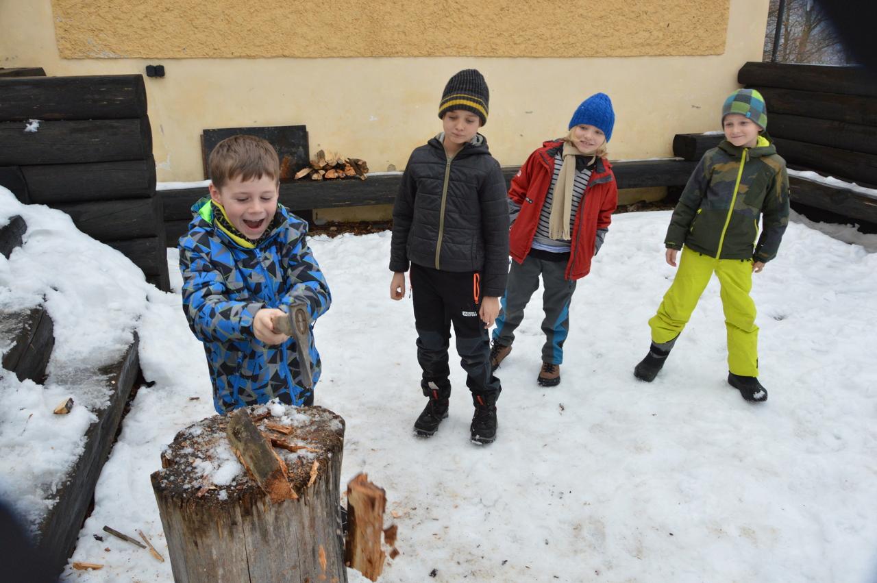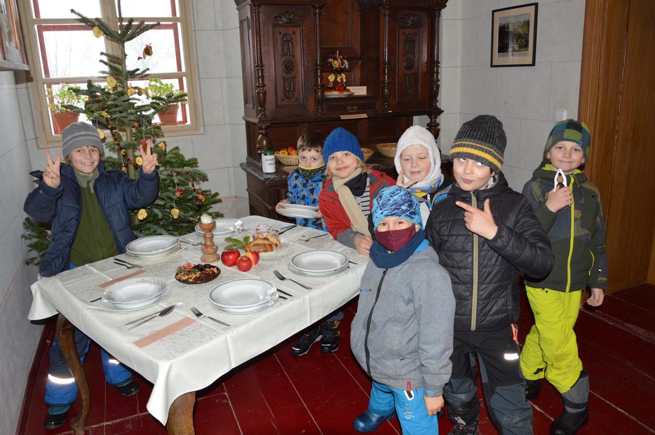 V tomto týdnu jsme s radostí zapálili třetí adventní svíčku a děti otevřely další domeček s dobrůtkami. Celým týdnem nás provázely koledy a muzicírování. Vánoční čas se blíží a nás čekala poslední výprava v roce 2021. Vypravili jsme se do Horního Maršova, společně s prostřední třídou. V Doteku nás přivítala příjemná paní, která nám ukázala podkrovní místnost, ve které jsme měli zázemí. Mohli jsme nahlédnout do deníku malého chlapce, který se jmenoval Josífek Hoffman. Díky jeho deníku se děti dozvěděly, jak probíhaly Vánoce před více než 100 lety. Josífek v deníku psal, jak probíhal jejich Štědrý den a také to, že si od Ježíška moc přál“ŽELÍZKA”. Neměli jsme vůbec tušení, co to mohlo být. Zkusili jsme si, jak probíhal Josífkův Štědrý den. Nejdříve děti šly naštípat dříví. Naše další kroky vedly k nedaleké jabloni, kterou jsme ozdobili obilím. Vděčnost za úrodu jsme vyjádřili písničkou„Stromečku vstávej”. Dalším úkolem bylo postarat se o zvířata. Nakrmili jsme kozičky a ovečky. Bylo třeba dát pozor na seno, aby zvířátkům nezvlhlo. Děti si v dřívějších dobách krátily chvíle čekání na štědrovečerní večeři vymýšlením a hraním pohádek. I na nás čekaly loutky a zkusili jsme si zahrát příběh o Ježíškovi. Stejně jako dnes i dříve lidé chodili do kostela a my jsme si v něm s radostí zazpívali vánoční koledy. Na konci cesty nás čekala světnice, kde bylo krásně prostřeno, nechybělo devatero pokrmů ani vánoční tradice, jako rozkrajování jablka či louskání ořechů. Hlavně jsme se tu ale dozvěděli, co jsou to ta ŽELÍZKA. Želízka byly brusle a Josífek je skutečně dostal. Po obědě jsme se vydali zpátky na vlak a na mravbus, který nás dopravil zpět do Mraveniště.