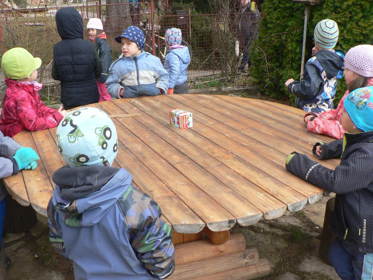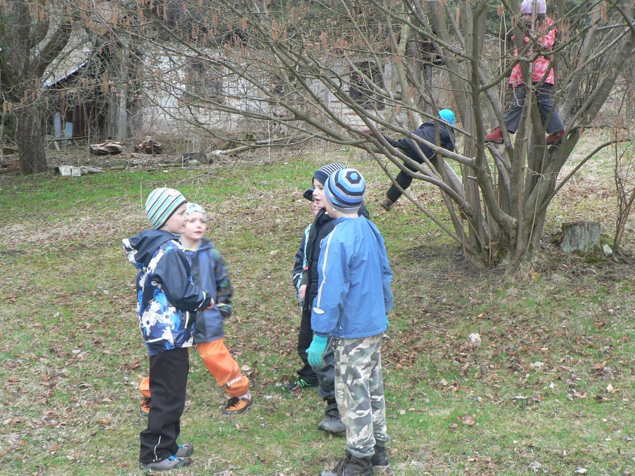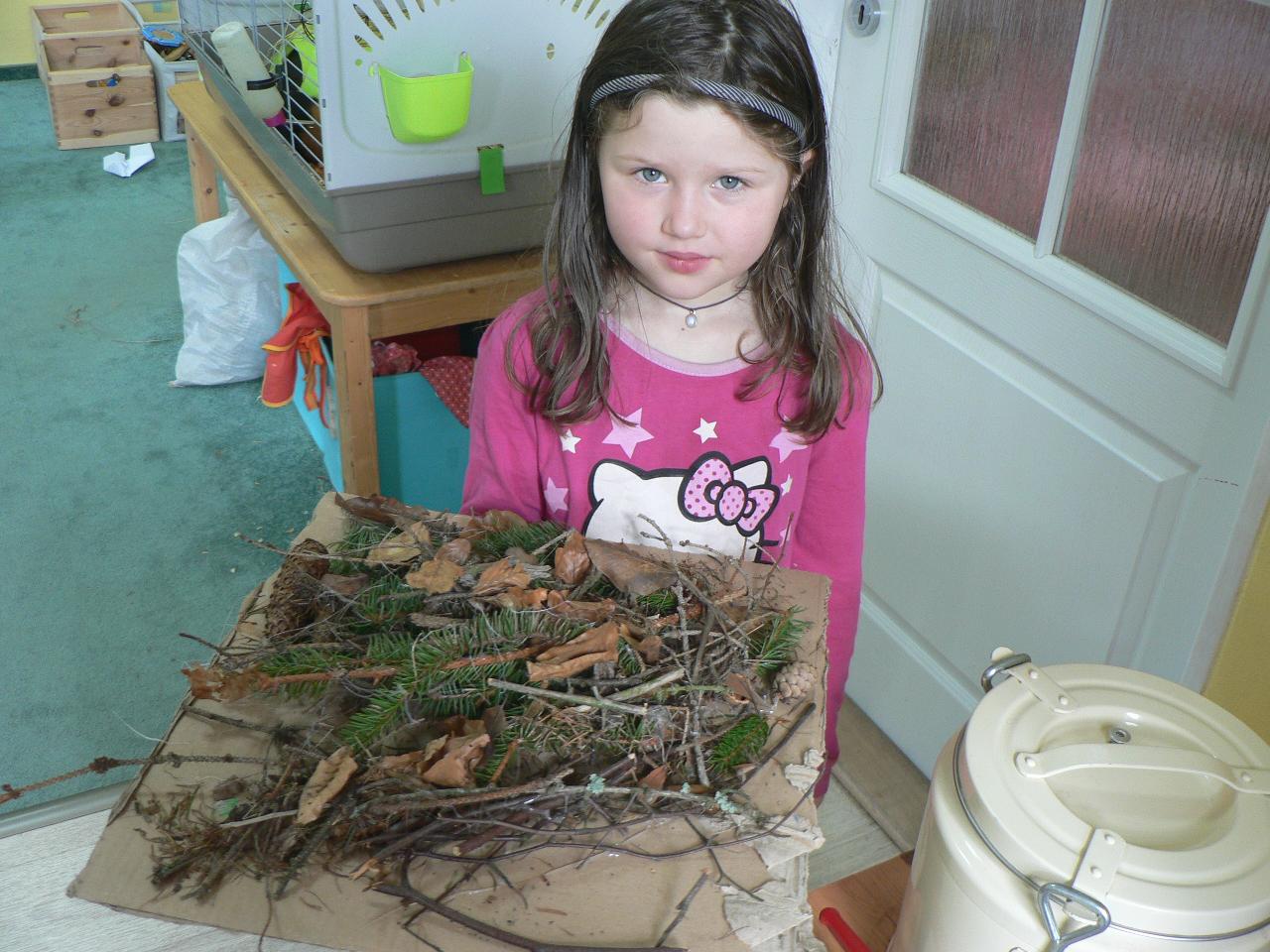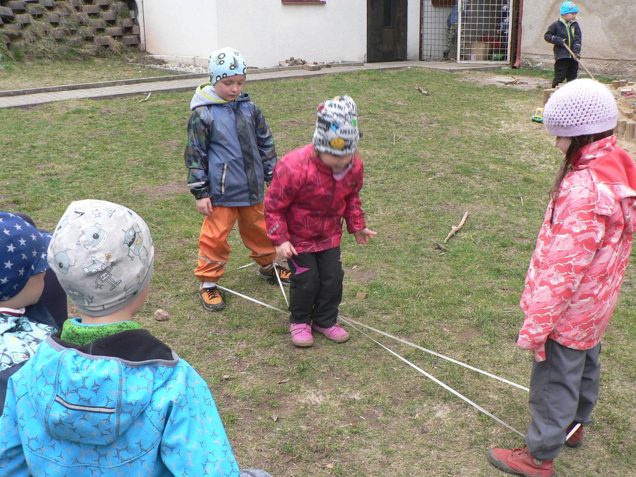 Tento týden jsme si vyprávěli pohádku o velmi zvídavém a pracovitém mravenci Toníkovi. Jak to vypadá, když mraveniště pošimrají první paprsky jarního sluníčka? V kterých chodbičkách se začne probouzet život a proč vlastně mravenečci pořád tolik pracují? A čím to je, že staví stále větší a větší mraveniště? Společně s Toníkem jsme se dozvídali odpovědi nejen na tyto otázky. V lese jsme sbírali různé materiály na stavbu našich vlastních mravenišť a stejně jako on jsme nakonec zjistili, že ne každý materiál se na stavbu hodí a že některé drží při sobě lépe než jiné. S pomocí magnetu jsme také vyráběli pohyblivé mravenečky a malovali jim cestičky a chodbičky na běhání. Tvořili jsme také včelky z olšových šištiček a v bludišti mravenčích chodbiček hledali cestu ke královně. Také jsme se dozvěděli něco o životě v mraveništi i řadu zajímavostí o mravencích. Třeba, kolik toho takový mravenec unese, kde všude mravenci žijí, kolika let se mohou dožít a spoustu dalšího. Venku pak vznikaly velmi rozmanité stavby na pískovišti a někteří z nás se věnovali jarnímu úklidu naší zahrady. Na řadu přišly i hry s míčem, skákání gumy, ale taky skákání v blátivých kalužích, běhání v lese nebo ořezávání klacíků.