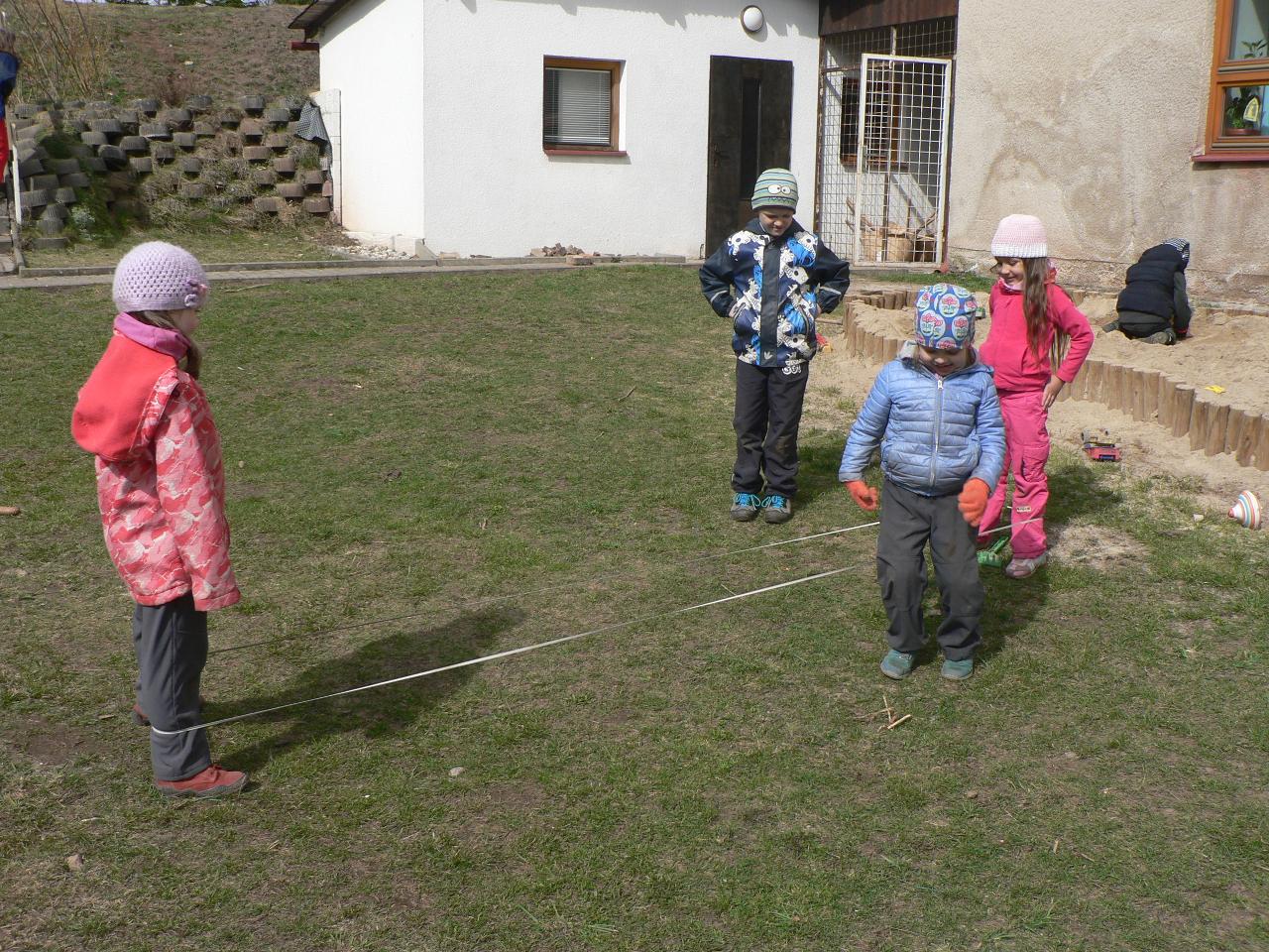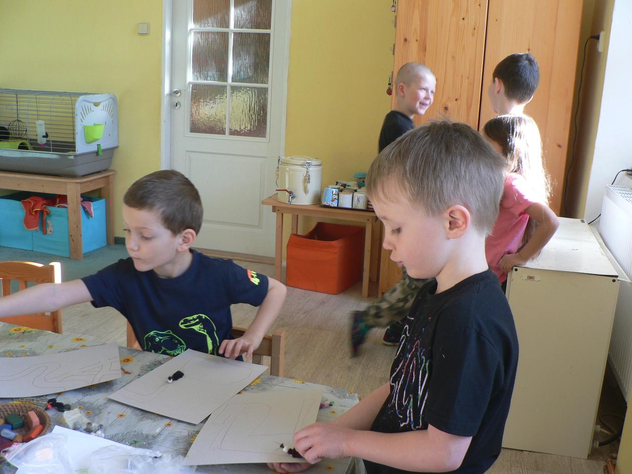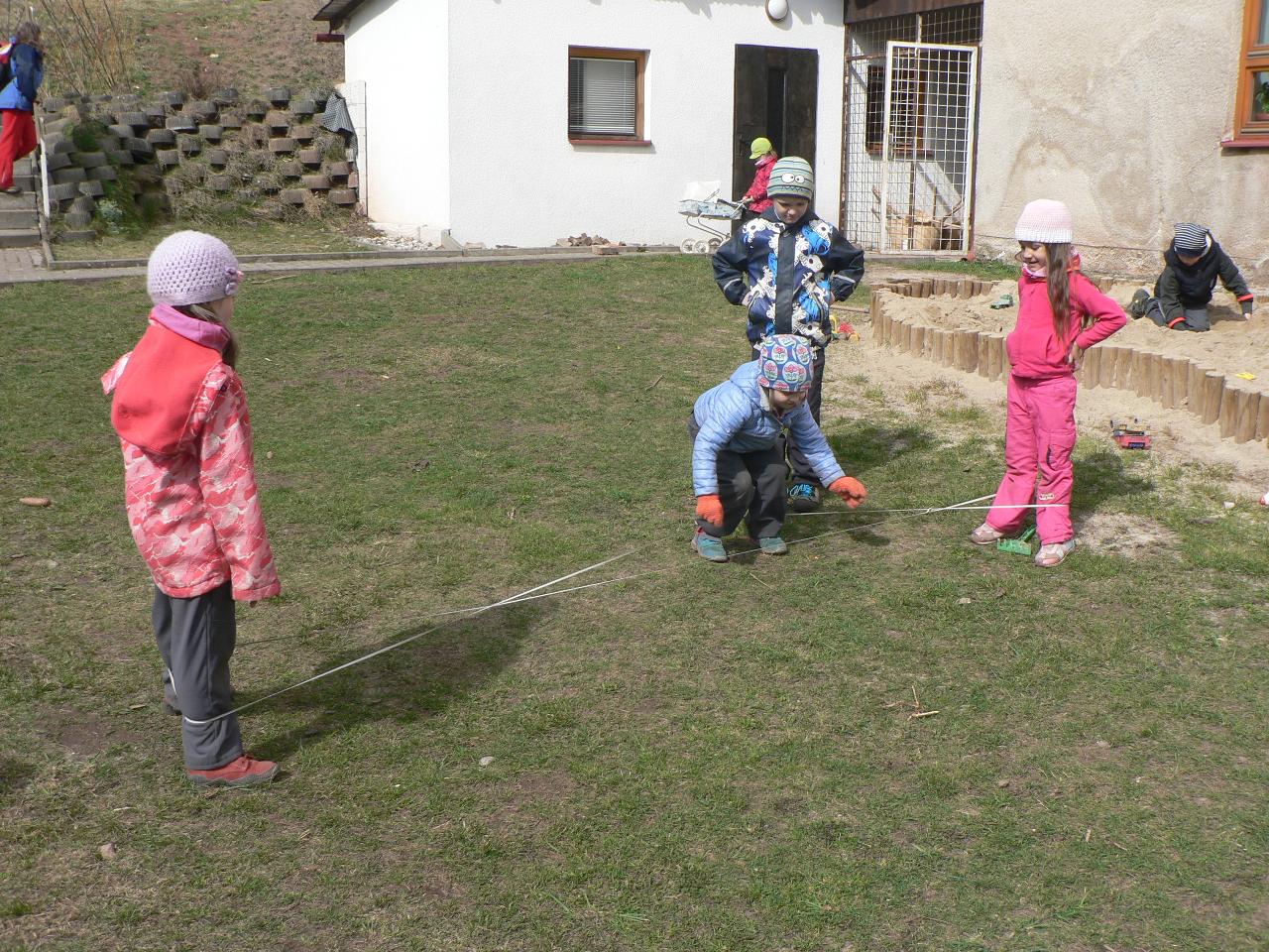 Tento týden jsme si vyprávěli pohádku o velmi zvídavém a pracovitém mravenci Toníkovi. Jak to vypadá, když mraveniště pošimrají první paprsky jarního sluníčka? V kterých chodbičkách se začne probouzet život a proč vlastně mravenečci pořád tolik pracují? A čím to je, že staví stále větší a větší mraveniště? Společně s Toníkem jsme se dozvídali odpovědi nejen na tyto otázky. V lese jsme sbírali různé materiály na stavbu našich vlastních mravenišť a stejně jako on jsme nakonec zjistili, že ne každý materiál se na stavbu hodí a že některé drží při sobě lépe než jiné. S pomocí magnetu jsme také vyráběli pohyblivé mravenečky a malovali jim cestičky a chodbičky na běhání. Tvořili jsme také včelky z olšových šištiček a v bludišti mravenčích chodbiček hledali cestu ke královně. Také jsme se dozvěděli něco o životě v mraveništi i řadu zajímavostí o mravencích. Třeba, kolik toho takový mravenec unese, kde všude mravenci žijí, kolika let se mohou dožít a spoustu dalšího. Venku pak vznikaly velmi rozmanité stavby na pískovišti a někteří z nás se věnovali jarnímu úklidu naší zahrady. Na řadu přišly i hry s míčem, skákání gumy, ale taky skákání v blátivých kalužích, běhání v lese nebo ořezávání klacíků.