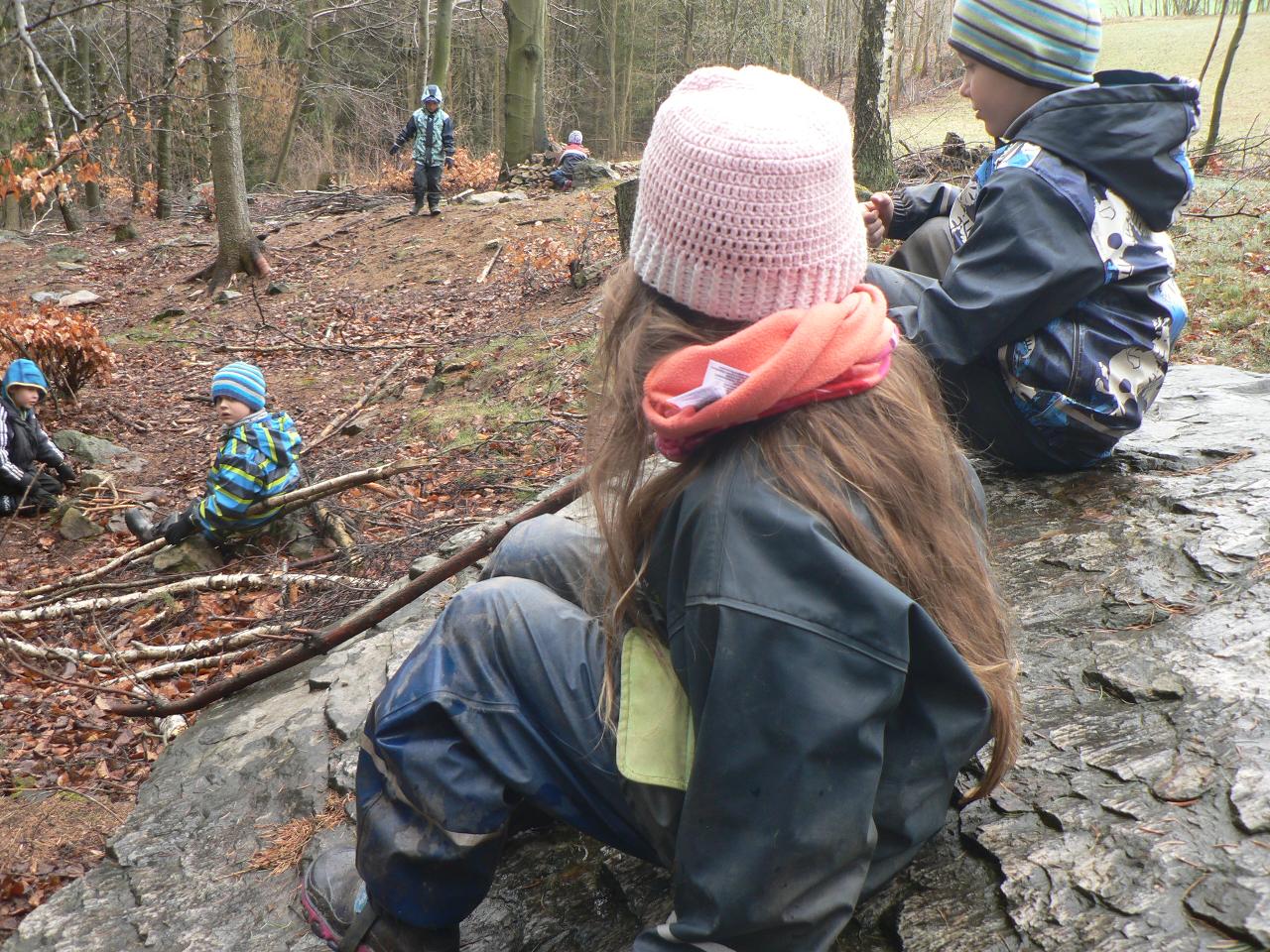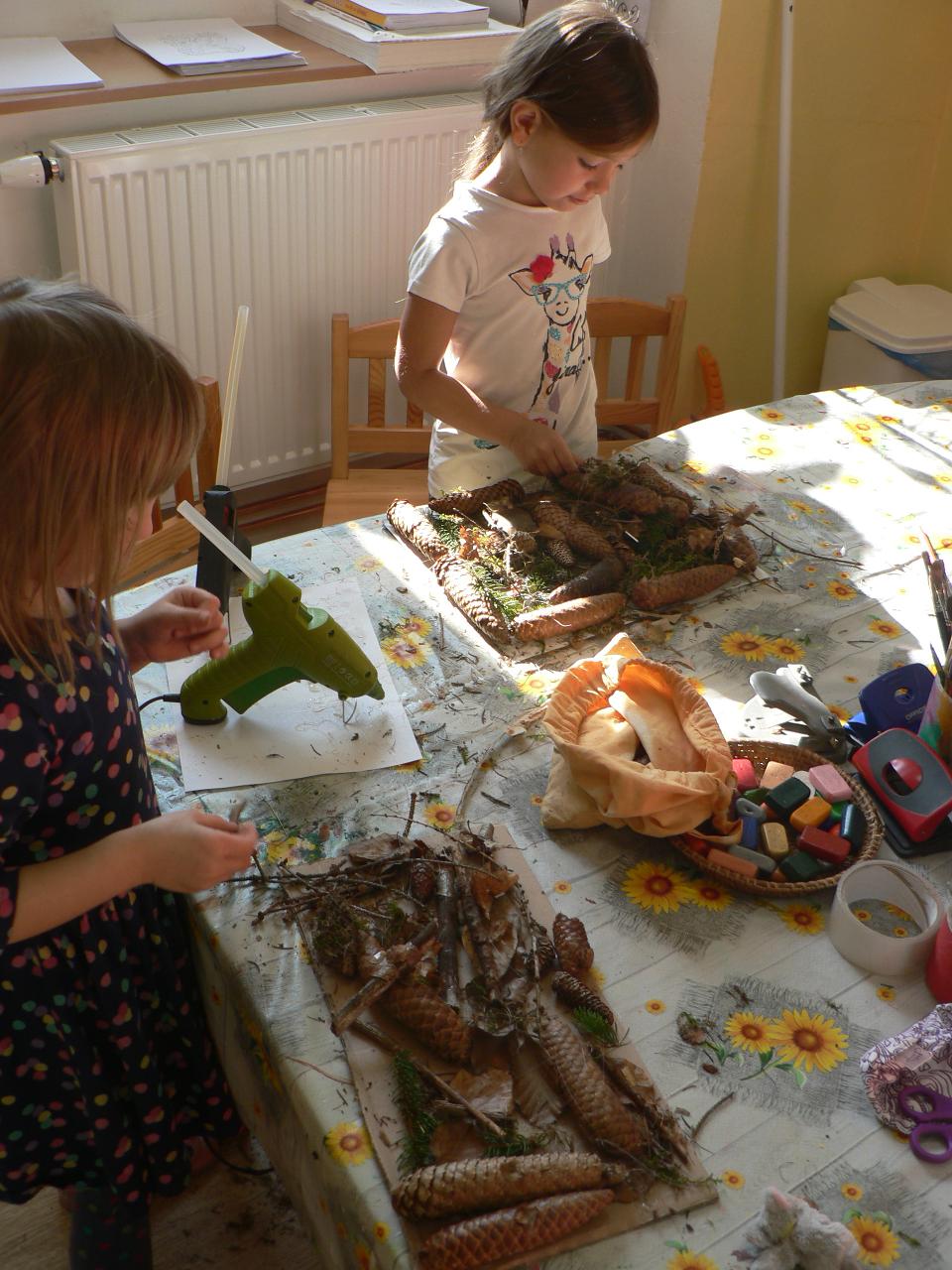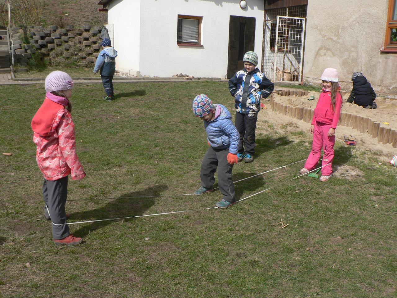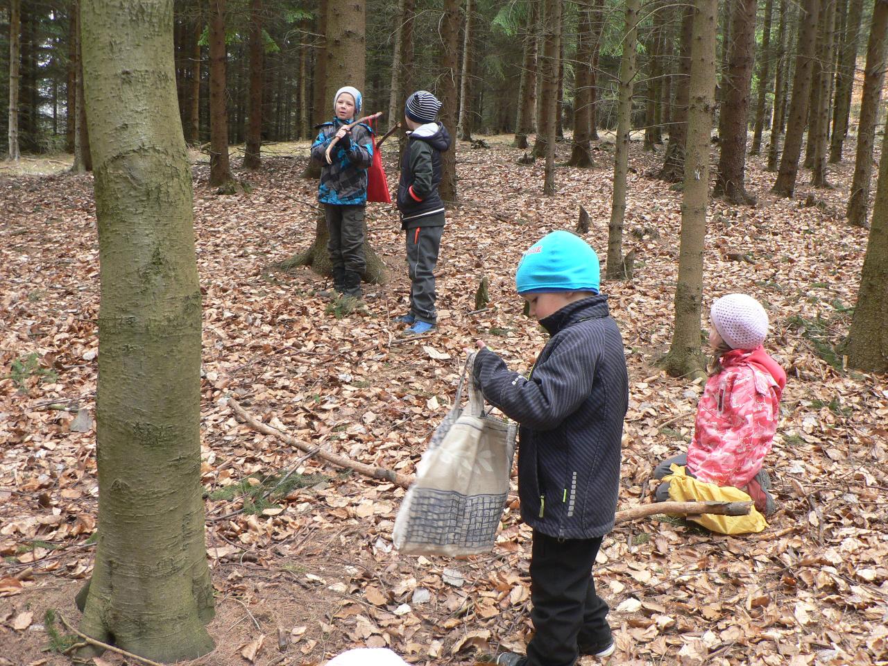 Tento týden jsme si vyprávěli pohádku o velmi zvídavém a pracovitém mravenci Toníkovi. Jak to vypadá, když mraveniště pošimrají první paprsky jarního sluníčka? V kterých chodbičkách se začne probouzet život a proč vlastně mravenečci pořád tolik pracují? A čím to je, že staví stále větší a větší mraveniště? Společně s Toníkem jsme se dozvídali odpovědi nejen na tyto otázky. V lese jsme sbírali různé materiály na stavbu našich vlastních mravenišť a stejně jako on jsme nakonec zjistili, že ne každý materiál se na stavbu hodí a že některé drží při sobě lépe než jiné. S pomocí magnetu jsme také vyráběli pohyblivé mravenečky a malovali jim cestičky a chodbičky na běhání. Tvořili jsme také včelky z olšových šištiček a v bludišti mravenčích chodbiček hledali cestu ke královně. Také jsme se dozvěděli něco o životě v mraveništi i řadu zajímavostí o mravencích. Třeba, kolik toho takový mravenec unese, kde všude mravenci žijí, kolika let se mohou dožít a spoustu dalšího. Venku pak vznikaly velmi rozmanité stavby na pískovišti a někteří z nás se věnovali jarnímu úklidu naší zahrady. Na řadu přišly i hry s míčem, skákání gumy, ale taky skákání v blátivých kalužích, běhání v lese nebo ořezávání klacíků.