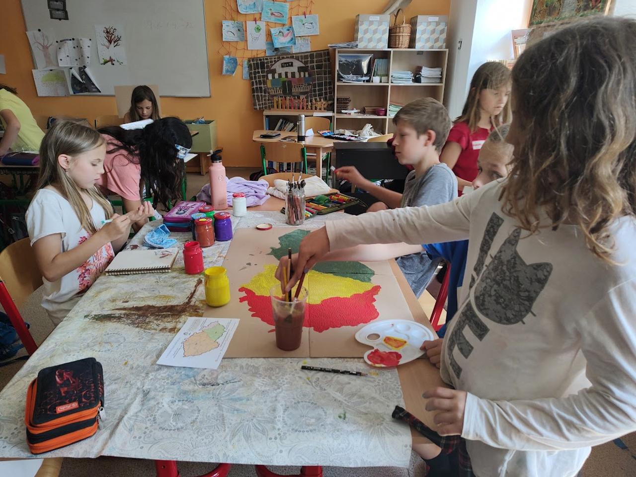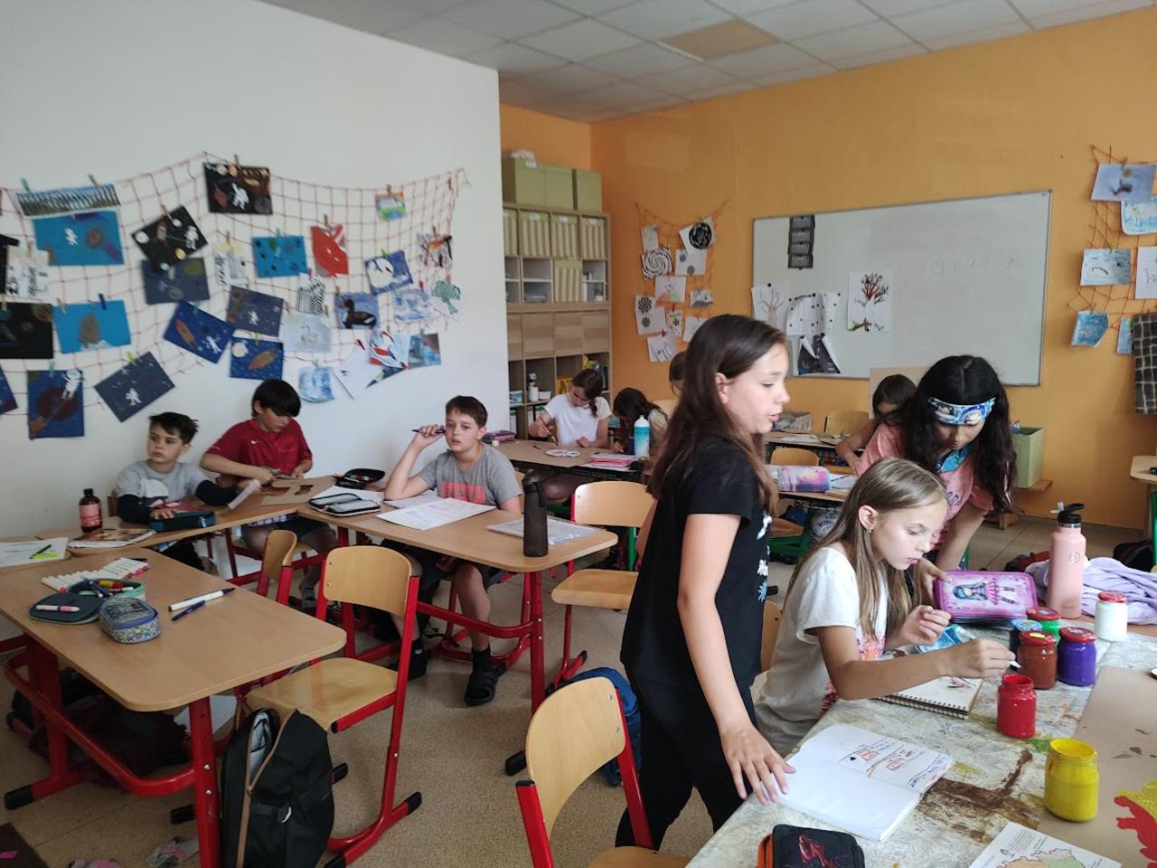 Jak funguje divadlo? Co potřebuje divadlo k tomu, aby fungovalo? Seznámili jsme se s profesemi, které v divadle působí. Vyrobili jsme si kostýmy a kulisy na Zahradní slavnost. V družině jsme měli druhou část keramiky - barvení a také oslavu Dne dětí.